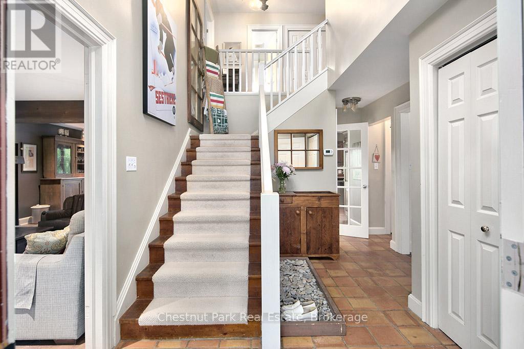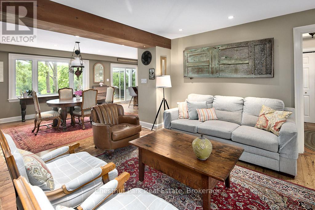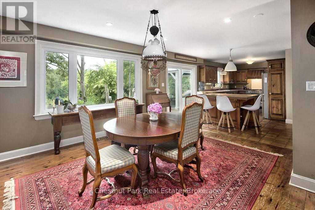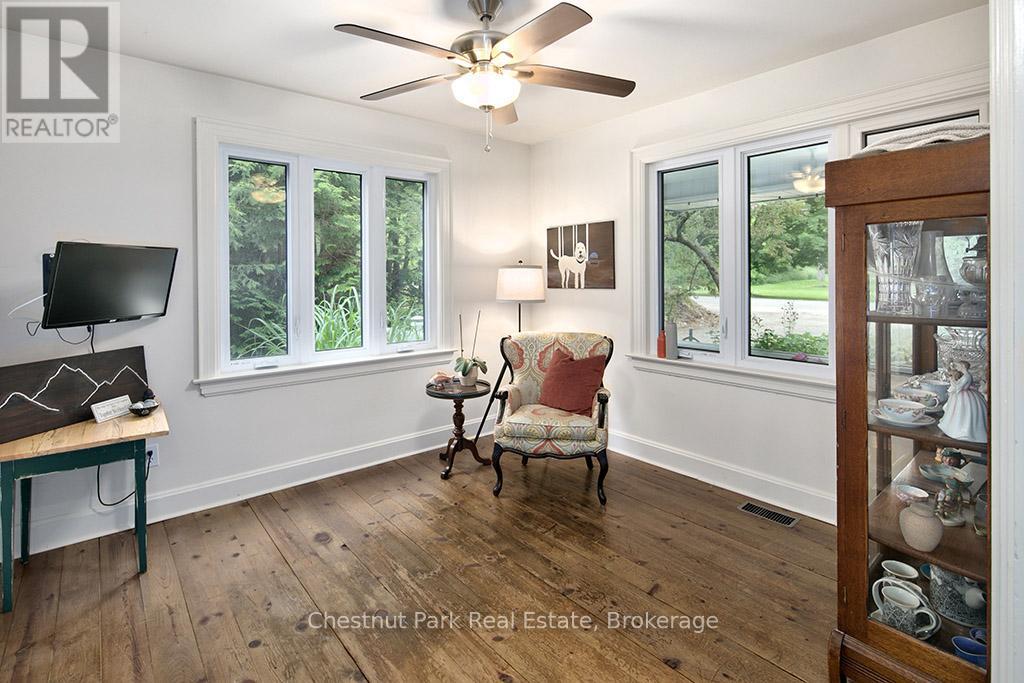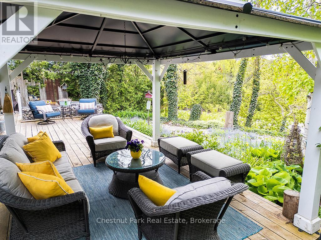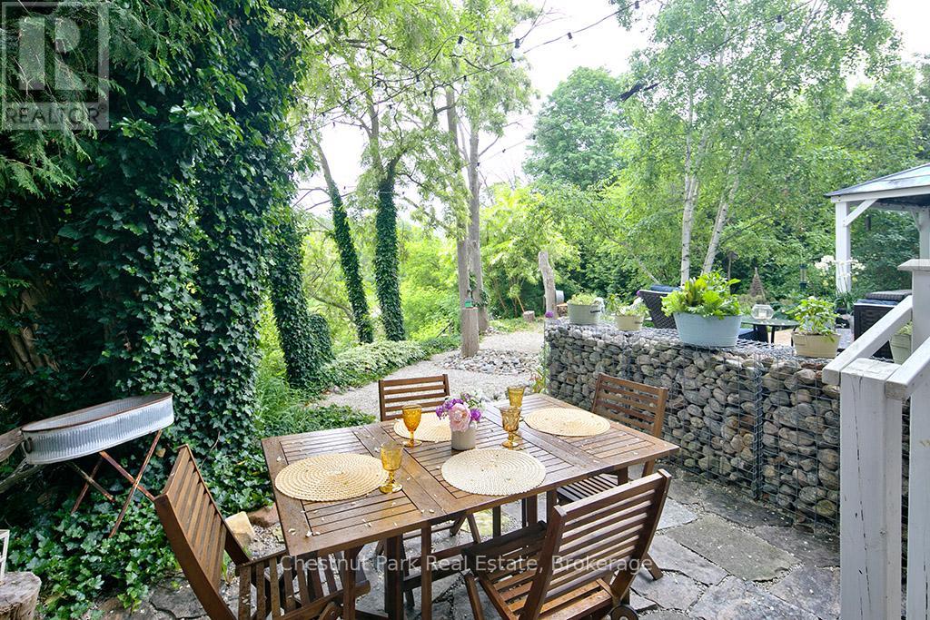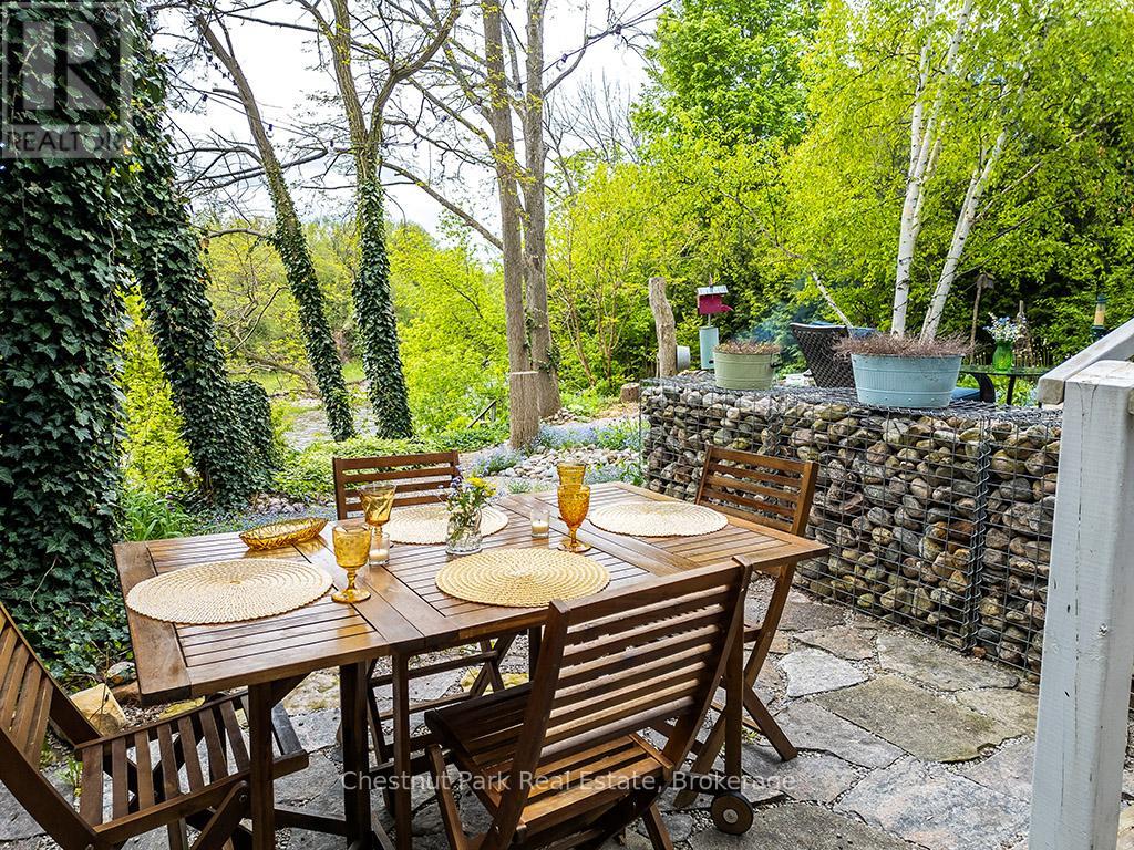 Charming Cape Cod Home on the Beaver River! 114 Clark Street, Clarksburg. Welcome to this idyllic 2658 sq ft 4-bedroom, 3-bathroom Cape Cod-style home perfectly nestled on the banks of the serene Beaver River in the heart of Clarksburg. Set on a beautifully landscaped lot, this property is a true retreat, featuring an enchanting English garden and thoughtfully designed outdoor spaces ideal for alfresco dining under the stars. Step inside to discover a warm and inviting interior where comfort meets character. The main floor offers a spacious open-concept layout with a cozy wood-burning fireplace, ideal for family gatherings or quiet evenings at home. Large windows throughout frame stunning river views, bringing the outdoors in and filling each room with natural light. The country-style, Pinetiques kitchen offers charm and functionality, the adjoining outdoor lounge area offers the perfect setting for enjoying your morning coffee or evening glass of wine, accompanied by the gentle sound of the flowing river. Upstairs, three generous bedrooms provide plenty of space for family and guests, and the two well-appointed bathrooms offer both convenience and privacy. Outside, the magic continues with lush perennial gardens, mature trees, and a private outdoor dining area overlooking the river an entertainers dream. Paddleboards, kayaks, and nature await just steps from your backyard. Located within walking distance to Clarksburg's art galleries, shops, the Clendenan Dam trail system, and only minutes from Thornbury's amenities and Georgian Bay, this property offers a rare blend of peaceful living and vibrant community access. Don't miss the opportunity to make this riverfront gem your forever home. (id:64974)