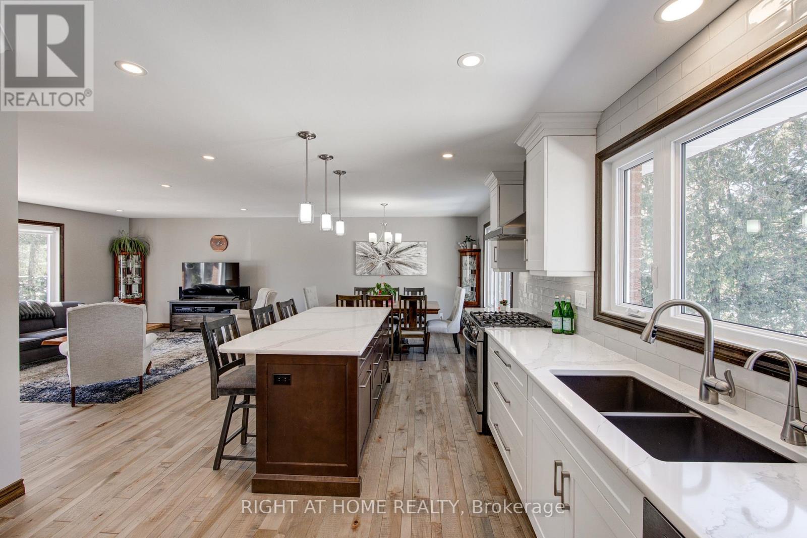 Nestled on a quiet, child-friendly cul-de-sac in the highly desirable Lockwood Park, this beautifully updated four-bedroom family home offers the perfect blend of comfort, style, and functionality. Set on a mature, treed lot with a concrete laneway and inviting covered front porch, the property delivers exceptional curb appeal and family-friendly living. The private backyard is an entertainer's dream, featuring an above-ground pool with solar heating, interlock patio, spacious decking with BBQ gas hookup, and a shed complete with 15-amp electrical service. Inside, thoughtful updates and quality finishes impress. In 2022, the home underwent significant renovations including a stunning new kitchen with quartz countertops, high-end cabinetry with dovetailed drawers, and updated appliances. That same year, most windows, the back sliding door, and the roof were replaced (excluding the two rear bedrooms and basement windows). Both the main bathroom and ensuite have been renovated this year, offering modern finishes and stylish design. The bright, open-concept main level showcases hardwood flooring and an inviting layout ideal for entertaining and everyday living. The family room features a gas fireplace with brick surround, hardwood flooring, and a walkout to the rear deck. A two-piece powder room and interior access to the oversized double garage add functionality. The garage offers 100-amp electrical service, making future EV charger installation easy. Upstairs you will find four generously sized bedrooms, including a primary suite with a two-piece ensuite. The finished lower level provides versatility with two separate rec rooms-perfect for children, hobbies, crafts, or additional living space-along with built-in cabinetry. The basement also offers a spacious laundry area with cabinetry, abundant storage, and access to a cold cellar. This exceptional home combines location, updates, and outdoor living in one of London's most sought-after neighbourhoods. (id:64974)