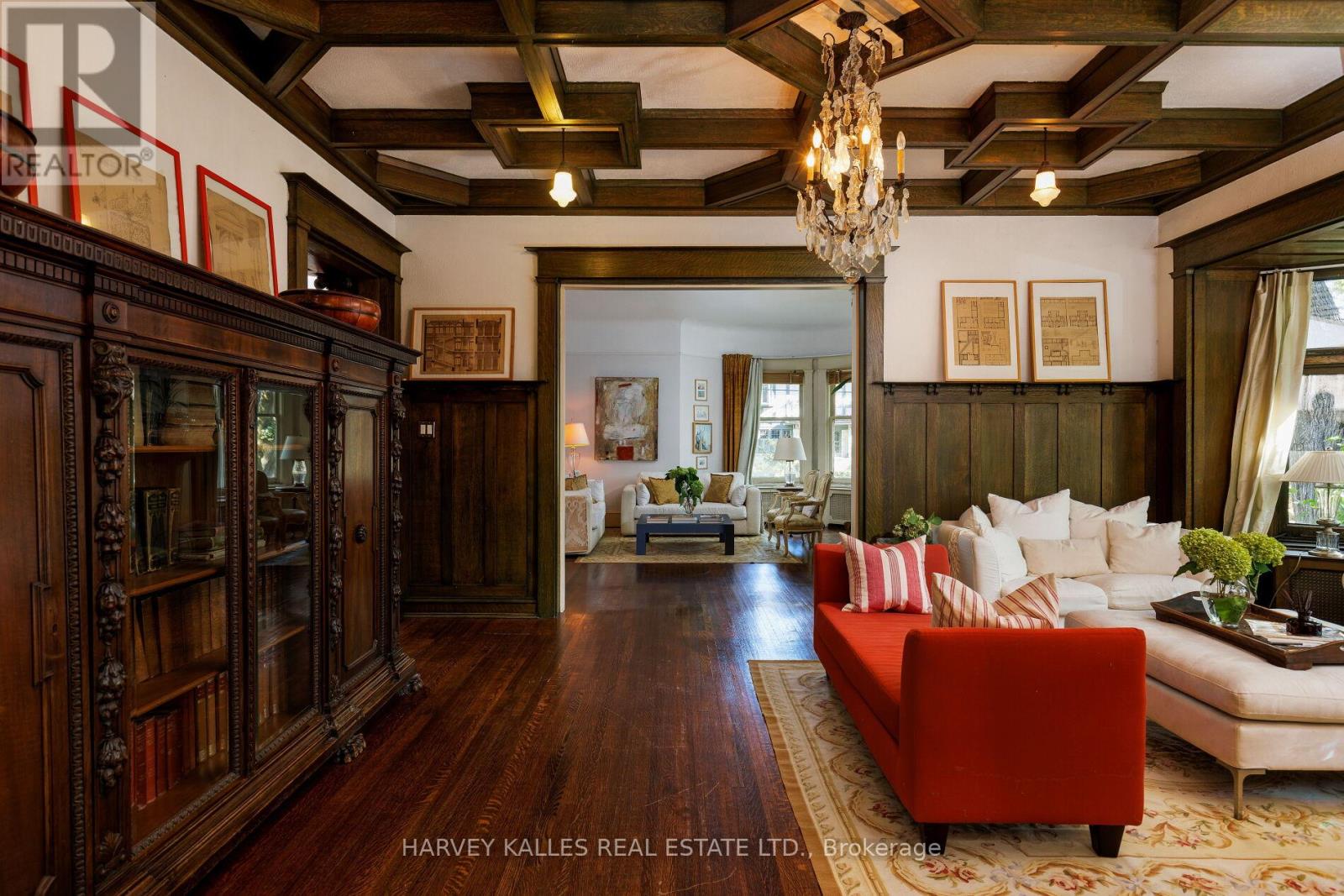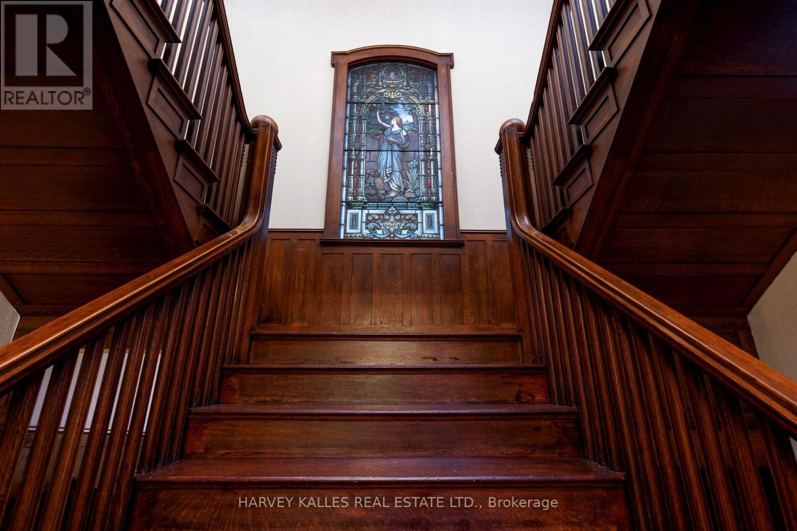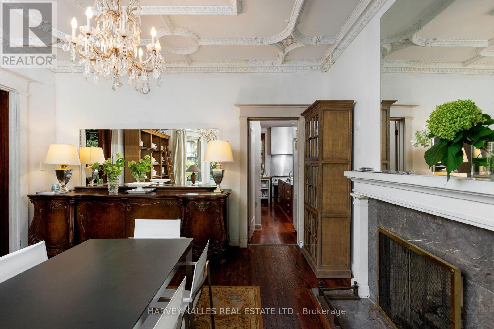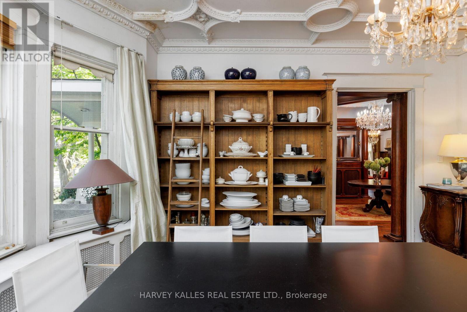 Nestled in Toronto's prestigious Rosedale neighbourhood, this landmark mansion occupies an expansive 100' x 122' estate-sized lot and offers over 7,500 square feet of impeccably designed living spaces. With 7 + 1 generously proportioned bedrooms, 8 bathrooms, and an exceptional third-floor loft, this grand residence seamlessly blends historic architecture with the scale, elegance, and functionality. Originally built circa 1900 for the distinguished Applegate family, the home has been meticulously restored and thoughtfully maintained to preserve it's architectural heritage including a self portrait stain glass window of Mrs. Applegate herself. Drawing inspiration from the classical traditions of Italian Renaissance architect Andrea Palladiio - most notably his iconic Villa Rotunda in Vicenza, Italy - the home reflects timeless design and exceptional craftmanship. A majestic octagonal central hall, framed by twelve lonic columns, creates an unforgettable first impression and sets the tone for the rest of the residence. Throughout the home, rich period details abound: original oak hardwood floors, finely hand-craved oak mouldings and wainscoting, intricate millwork, and 6 fireplaces with decorative tile and brick hearths. The soaring 10-foot ceilings are adorned with ornate plaster crown mouldings, ceiling medallions, and oak-beamed details that speak to the home's historical significance. Expansive bow windows and beautifully preserved stained glass flood the interior with natural light and highlight the warm, elegant atmosphere. Outside, the property is a private oasis, surrounded by mature trees, lush landscaping, and tranquil gardens that offer rare serenity in the heart of the city. A detached two-car garage and additional parking for three vehicles provide added convenience. This is a once-in-a-generation opportunity to own a truly iconic Rosedale residence - an architectural treasure steeped in history and timeless charm. (id:64974)
