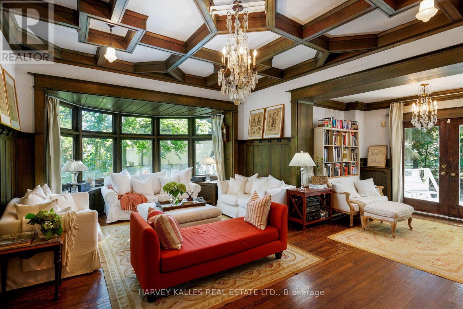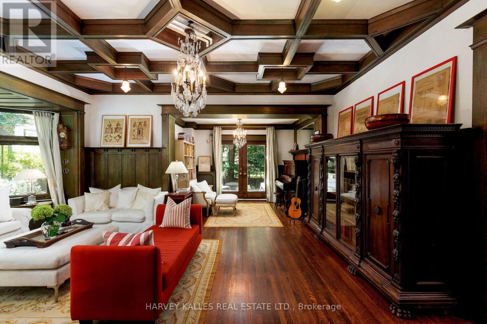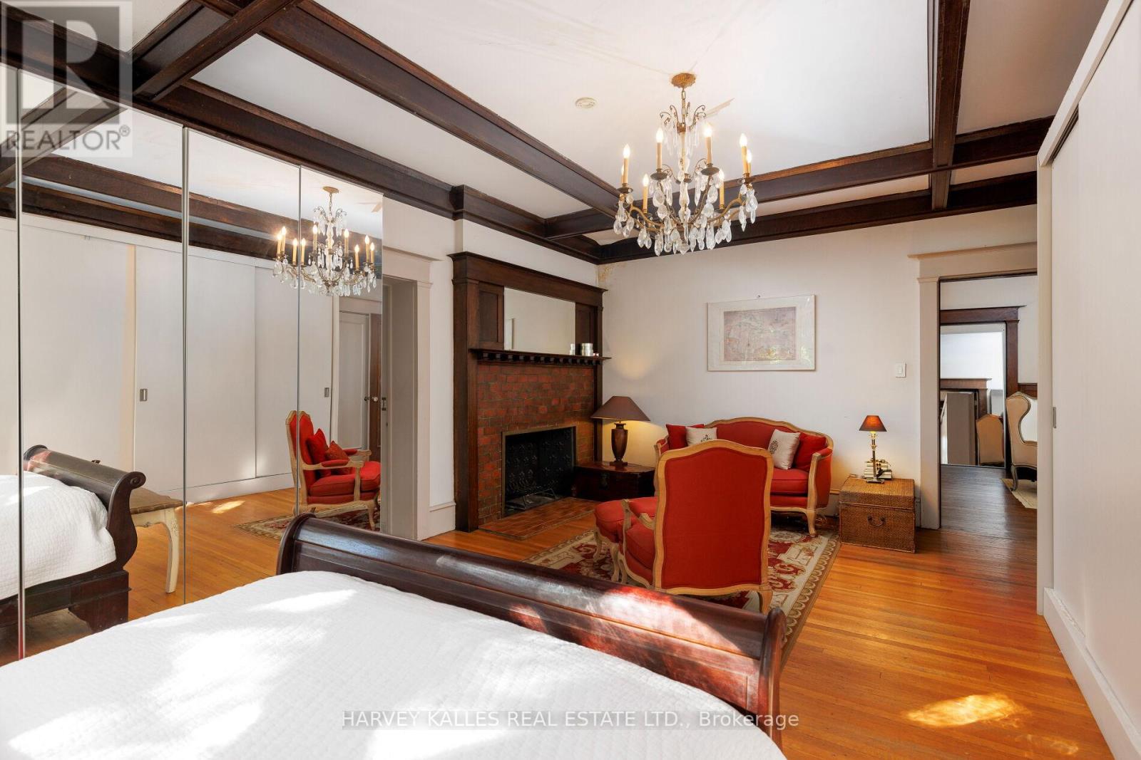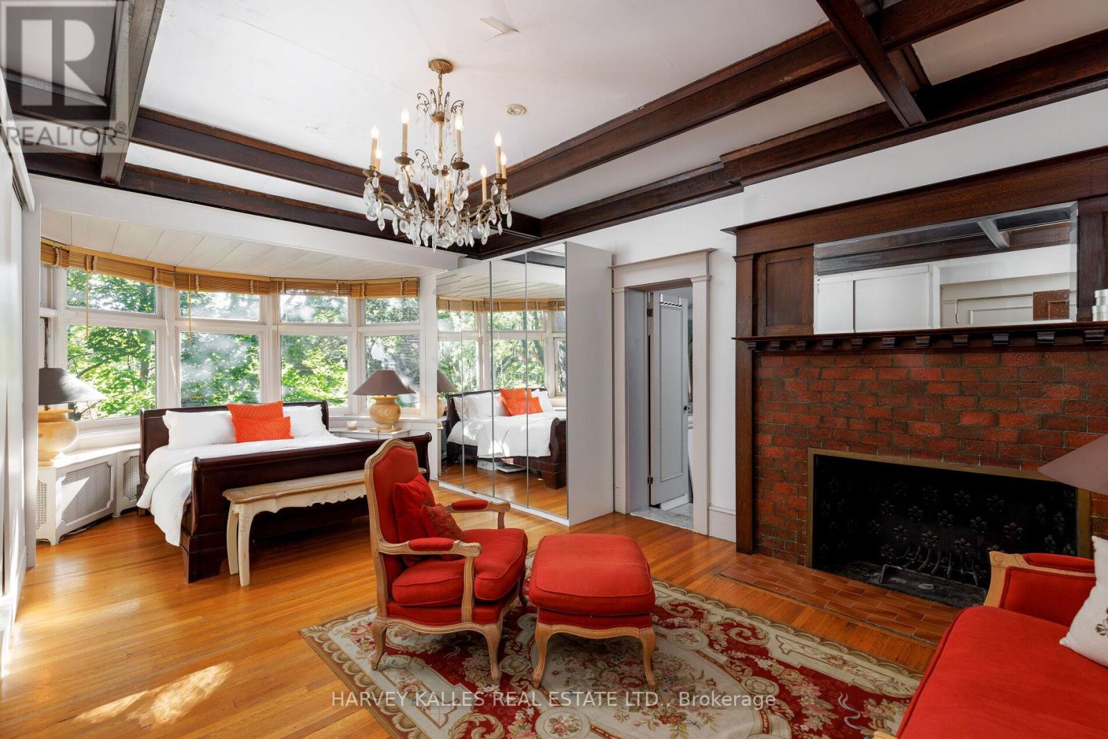 Nestled in Toronto's prestigious Rosedale neighbourhood, this landmark mansion occupies an expansive 100' x 122' estate-sized lot and offers over 7,500 square feet of impeccably designed living spaces. With 7 + 1 generously proportioned bedrooms, 8 bathrooms, and an exceptional third-floor loft, this grand residence seamlessly blends historic architecture with the scale, elegance, and functionality. Originally built circa 1900 for the distinguished Applegate family, the home has been meticulously restored and thoughtfully maintained to preserve it's architectural heritage including a self portrait stain glass window of Mrs. Applegate herself. Drawing inspiration from the classical traditions of Italian Renaissance architect Andrea Palladiio - most notably his iconic Villa Rotunda in Vicenza, Italy - the home reflects timeless design and exceptional craftmanship. A majestic octagonal central hall, framed by twelve lonic columns, creates an unforgettable first impression and sets the tone for the rest of the residence. Throughout the home, rich period details abound: original oak hardwood floors, finely hand-craved oak mouldings and wainscoting, intricate millwork, and 6 fireplaces with decorative tile and brick hearths. The soaring 10-foot ceilings are adorned with ornate plaster crown mouldings, ceiling medallions, and oak-beamed details that speak to the home's historical significance. Expansive bow windows and beautifully preserved stained glass flood the interior with natural light and highlight the warm, elegant atmosphere. Outside, the property is a private oasis, surrounded by mature trees, lush landscaping, and tranquil gardens that offer rare serenity in the heart of the city. A detached two-car garage and additional parking for three vehicles provide added convenience. This is a once-in-a-generation opportunity to own a truly iconic Rosedale residence - an architectural treasure steeped in history and timeless charm. (id:64974)