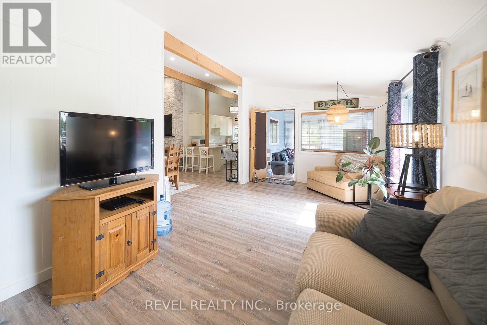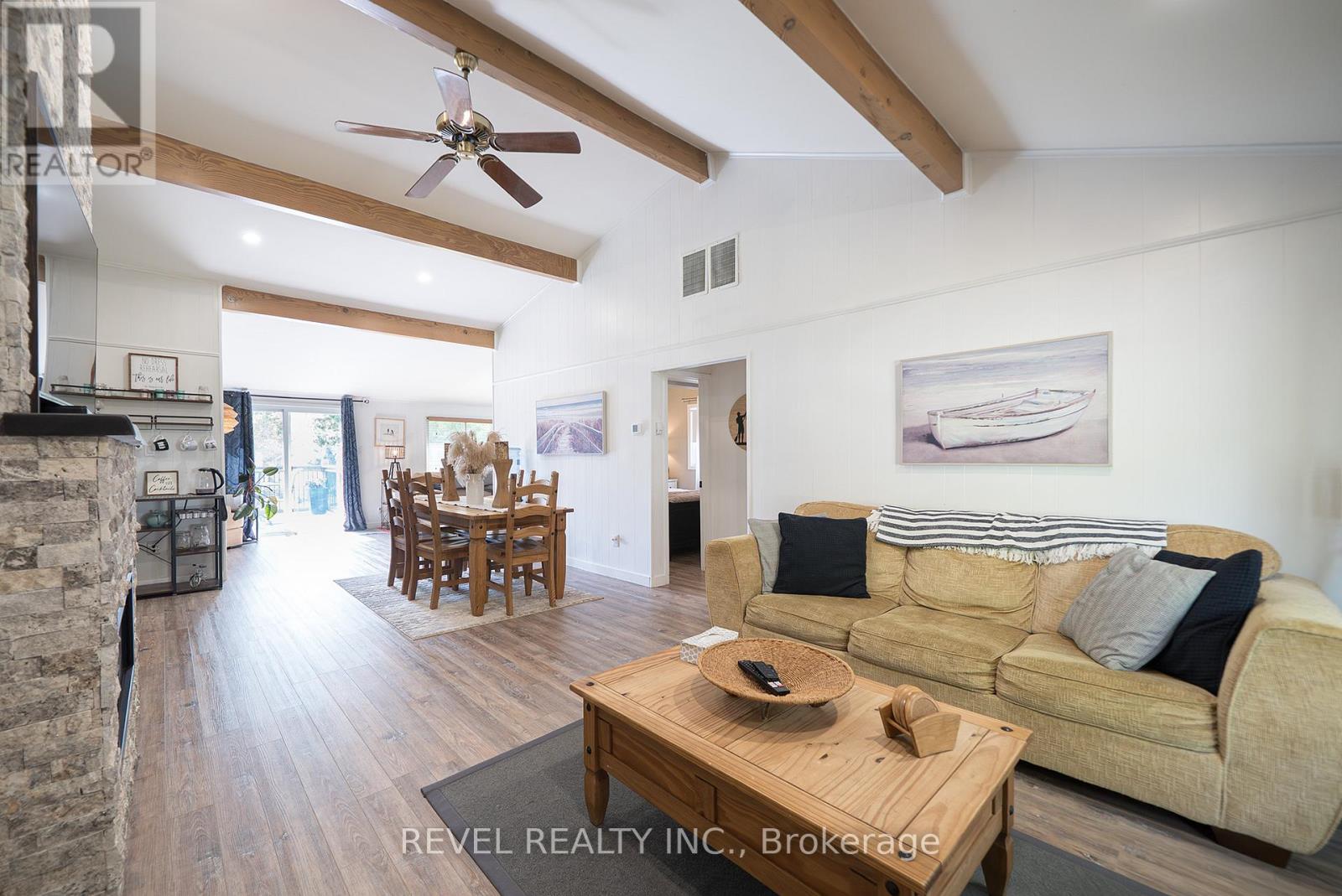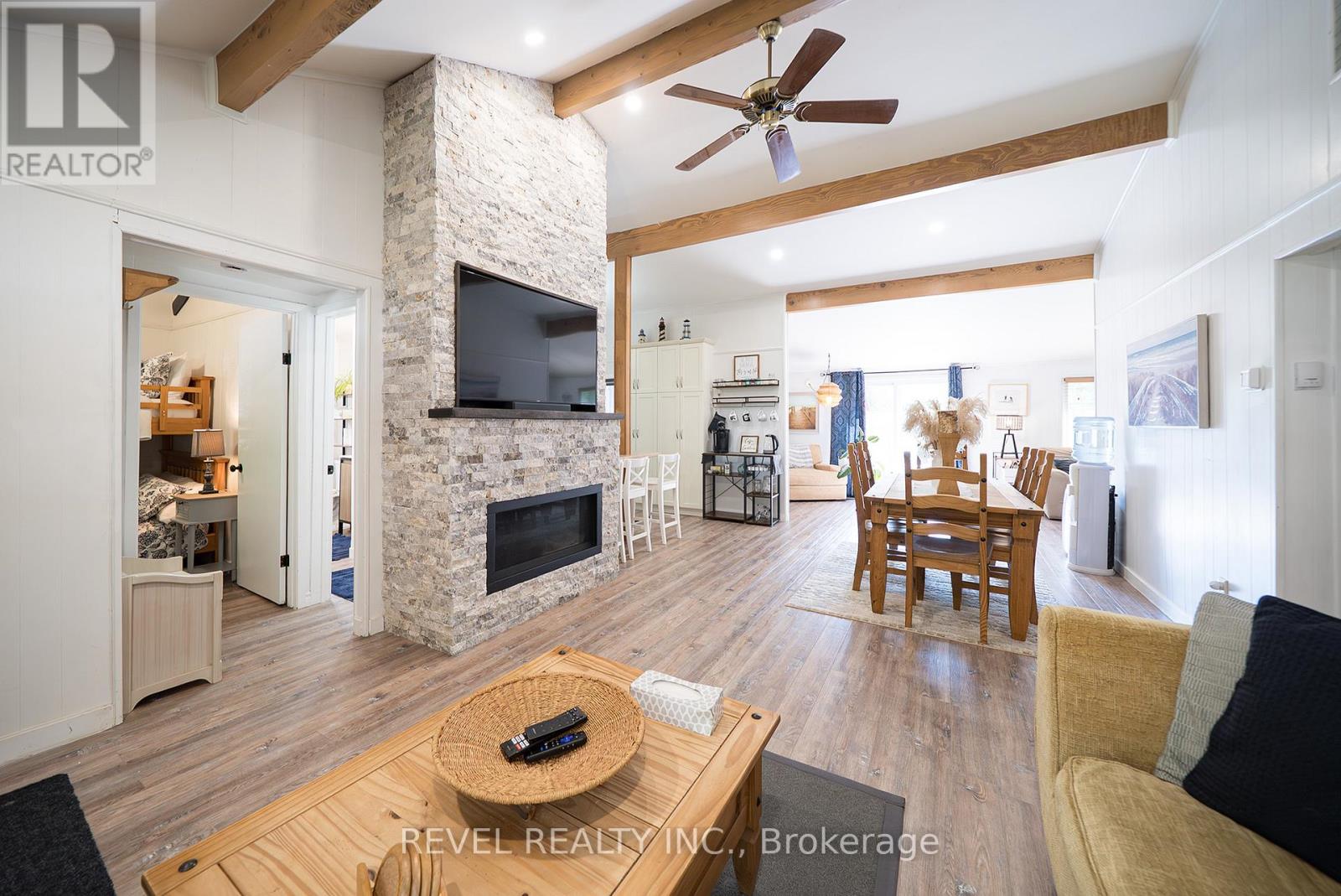 Welcome to 114 Hillview Crescent, a beautifully updated 3-bedroom, 1-bathroom home nestled in the heart of Turkey Point. Privately situated on one of the highest points in the area, this property offers a peaceful setting surrounded by nature, while being just a short stroll to one of the finest sandy beaches in Southwestern Ontario.Inside, the home has been thoughtfully renovated and features a bright, open-concept layout with modern finishes throughout. The inviting living room showcases a cozy propane fireplace with a cultured stone surround and barnwood mantel, seamlessly flowing into the dining area and updated kitchen complete with white cabinetry, crown moulding, ample storage, and upgraded lighting. Durable luxury vinyl flooring runs throughout the main living spaces, while the fully renovated bathroom offers clean, stylish finishes. All three bedrooms are bright and functional, with the primary bedroom featuring a loft space for additional storage. A beautifully finished sunroom extends the living space and provides the perfect spot to relax year-round.Extensive updates have been completed throughout the home, including new siding, eaves, soffit and fascia, updated electrical with 200 amp service, a new furnace and A/C, updated windows and doors, and improvements to the crawlspace with sump pumps, vapor barrier, and insulation . The exterior offers a private setting with a spacious deck, firepit area, mature landscaping, and thoughtful drainage enhancements.Located in a highly sought-after lakeside community, Turkey Point is renowned for its shallow bay and incredible outdoor lifestyle. Enjoy fishing, boating, biking, water sports, and access to scenic conservation areas, all just steps from your door. Whether you're looking for a full-time residence, a weekend retreat, or an investment opportunity, this property offers the perfect blend of comfort, privacy, and lifestyle. (id:64974)