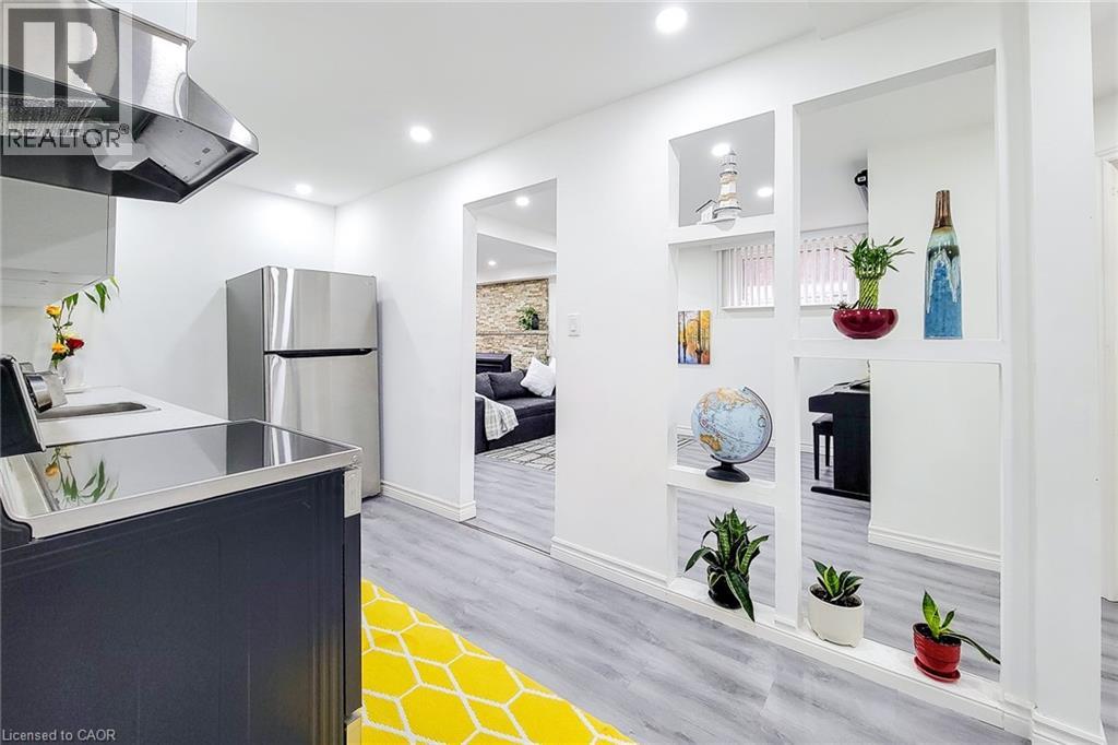 Sharp, well-maintained raised ranch in a highly sought-after West Mountain neighbourhood, situated on a quiet street. This home features a full in-law suite on the lower level with a separate rear entrance—ideal for extended family or potential rental income. A welcoming front entry opens into a bright living and dining area with hardwood floors and an abundance of natural light. The fully finished lower level provides additional comfortable living space. Conveniently located with quick access to the Linc and Hwy 403, and just minutes from Ancaster Meadowlands shopping, Costco, and Mohawk College. Hydro connection is available in the backyard shed. Recent renovations and upgrades include: roof (2021); basement renovation with new kitchen, bathroom, and fridge (2022); new basement fireplace, stove, washer, dryer, and garage door with smart opener (2024); whole-home gutter, fascia, soffit, and insulation upgrades (2025); and a new furnace, patio door, and dishwasher (2026). Water heater is owned. Move in and enjoy this beautiful, turnkey home! (id:64974)