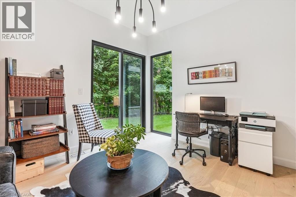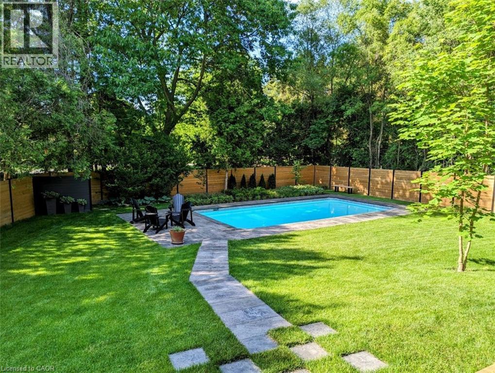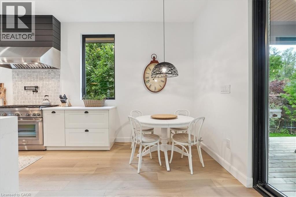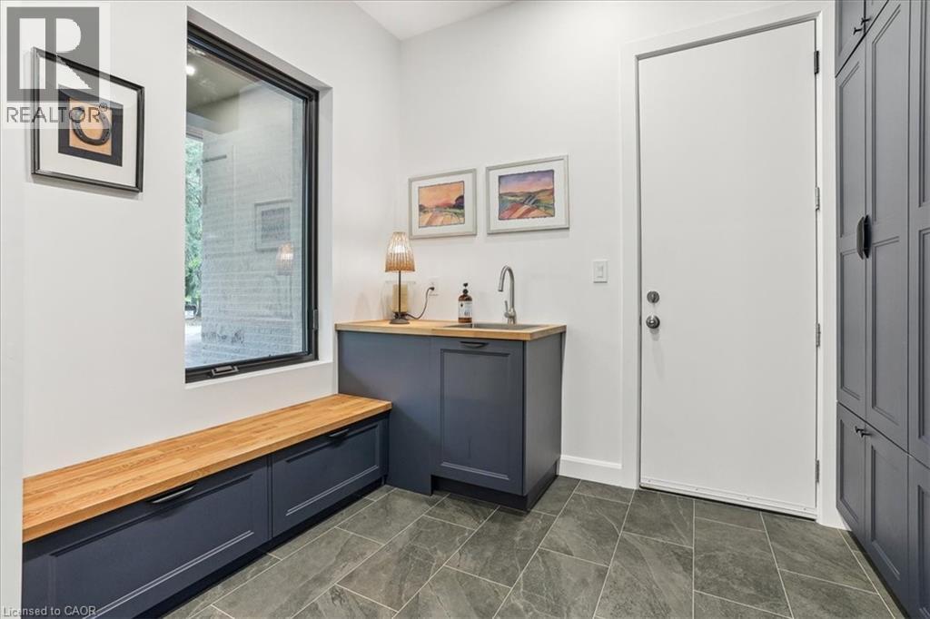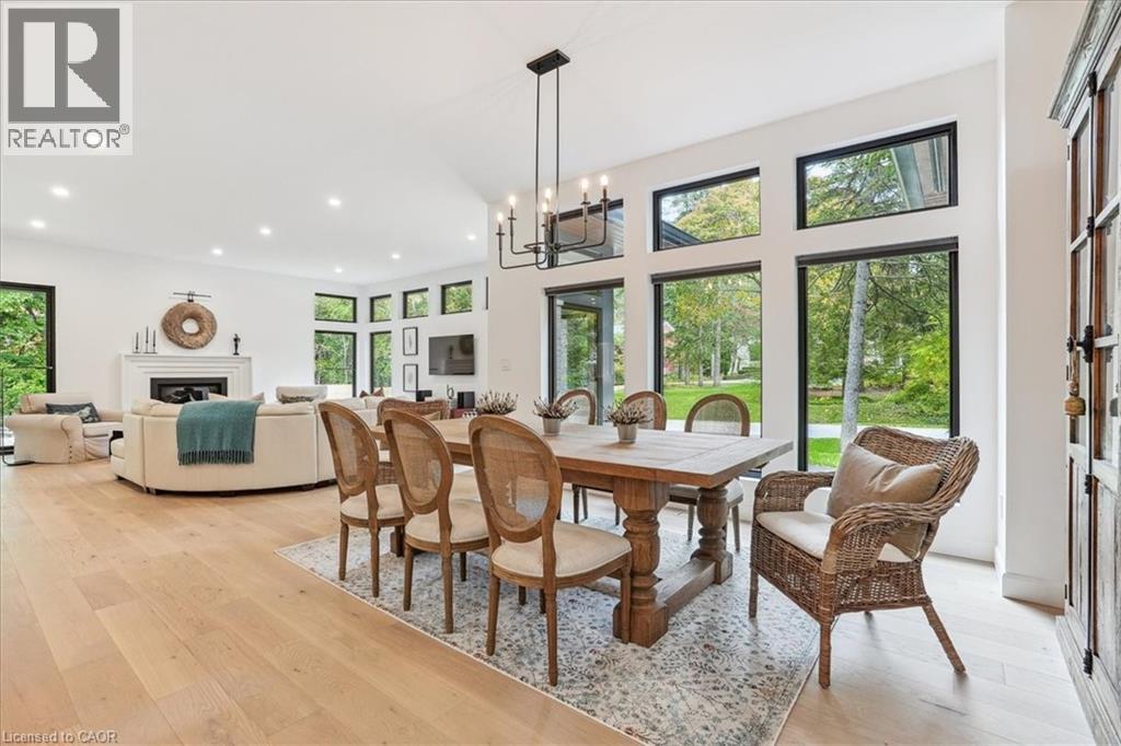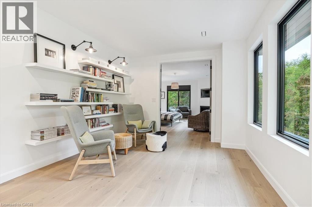 Modern prairie-style architecture in the heart of historic Ancaster. This recently completed two-storey custom house, features 5 bedrooms, 5+1 bathrooms with heated floors, a luxurious primary suite with a walk-through closet, and a main floor guest/in-law suite. Perfect for any culinary enthusiast, the gourmet kitchen includes a spacious waterfall quartz island, high-end appliances, two dishwashers, and a butler's pantry. This contemporary property offers two laundry rooms, three gas fireplaces, a cedar sauna, a heated salt water 32'x16' rectangular pool, and professionally designed gardens backing on Mansfield Park. There are integrated ceiling speakers, alarm system, security cameras, and whole house Cat6 wired network. Electrolux wine cooler in butler's pantry is a convenient luxury, as well as central vacuum, towel warmers and heated floors in all bathrooms. Large expanses of glass and an open floor plan allow for enjoyable circulation and a tranquil connection to nature throughout the house. Walking distance to restaurants, arts centre, scenic Ancaster Mill, Dundas Valley conservation area, and hiking trails, renowned Hamilton Golf and Country Club, all-season tennis courts, library, shopping, schools, and other amenities. Close proximity to McMaster University and major highways. (id:64974)