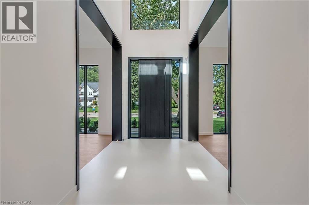 This custom luxury residence is a masterclass in design, proportion, and craftsmanship. Every detail has been thoughtfully curated, creating a true statement of contemporary living. Offering over 6,000 sq ft of high-end living space, this home features 5 bedrooms, 6 bathrooms, a chef-inspired kitchen with bespoke cabinetry, an open-concept main floor designed for entertaining, and a fully finished lower level with theatre, gym, wine wall, and walk-up access to the outdoor living space. Perfectly designed for both family life and entertaining, the interiors combine functionality with elegance in every room. The home is set on a premium 90 x 128 lot in Oakville's coveted Coronation Park neighbourhood. Known for its estate properties, mature trees, and proximity to Lake Ontario, this community offers the best of Oakville living minutes to Bronte Village, Downtown Oakville, and top-rated private and public schools. The exterior is clad in timeless limestone with expansive windows, a wide private drive, and a 2-car garage. Professionally landscaped grounds include a covered outdoor living space with fireplace and grilling area, ideal for year-round entertaining. From the grand foyer to the backyard retreat, every element of this home has been designed to impress. *Some photos have been virtually staged* (id:64974)