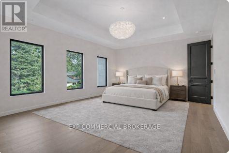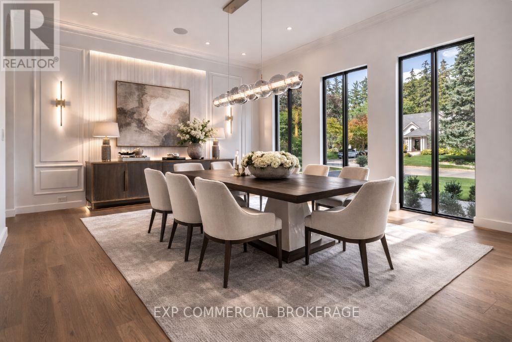 This custom luxury residence is a masterclass in design, proportion, and craftsmanship. Every detail has been thoughtfully curated, creating a true statement of contemporary living. Offering over 6,000 sq ft of high-end living space, this home features 5 bedrooms, 6 bathrooms, a chef-inspired kitchen with bespoke cabinetry, an open-concept main floor designed for entertaining, and a fully finished lower level with theatre, gym, wine wall, and walk-up access to the outdoor living space. Perfectly designed for both family life and entertaining, the interiors combine functionality with elegance in every room. The home is set on a premium 90 x 128 lot in Oakville's coveted Coronation Park neighbourhood. Known for its estate properties, mature trees, and proximity to Lake Ontario, this community offers the best of Oakville living minutes to Bronte Village, Downtown Oakville, and top-rated private and public schools. The exterior is clad in timeless limestone with expansive windows, a wide private drive, and a 2-car garage. Professionally landscaped grounds include a covered outdoor living space with fireplace and grilling area, ideal for year round entertaining. From the grand foyer to the backyard retreat, every element of this home has been designed to impress. Some photos are virtually staged. (id:64974)