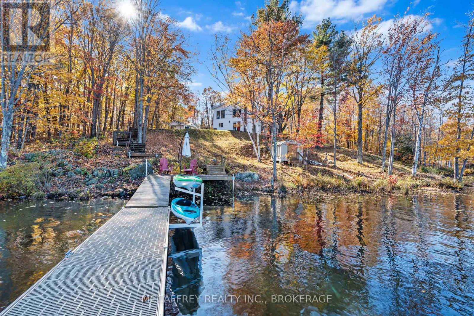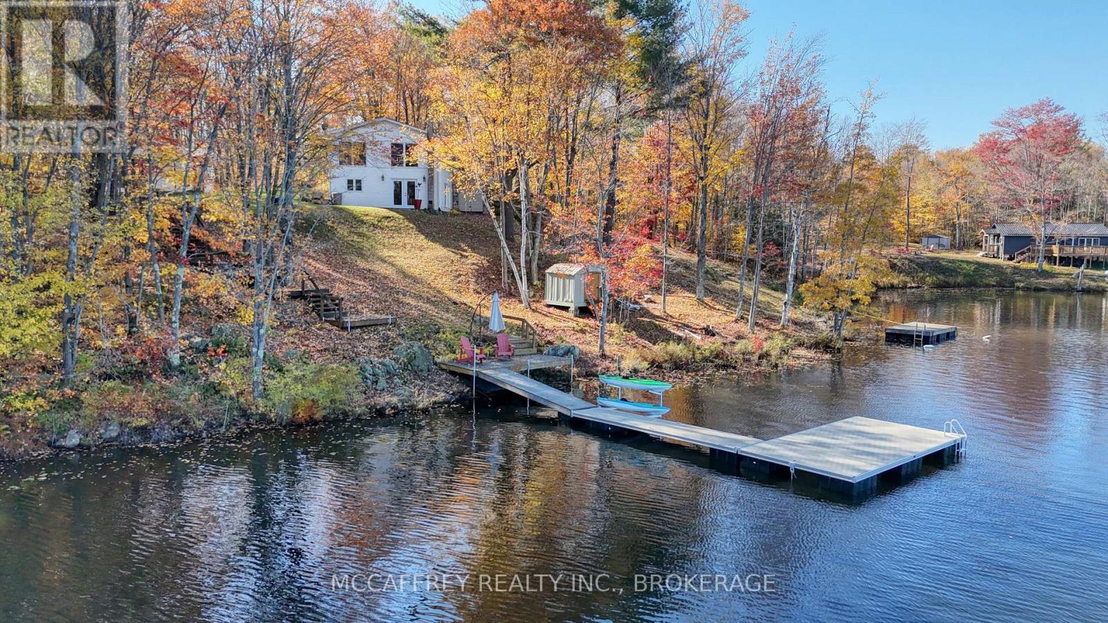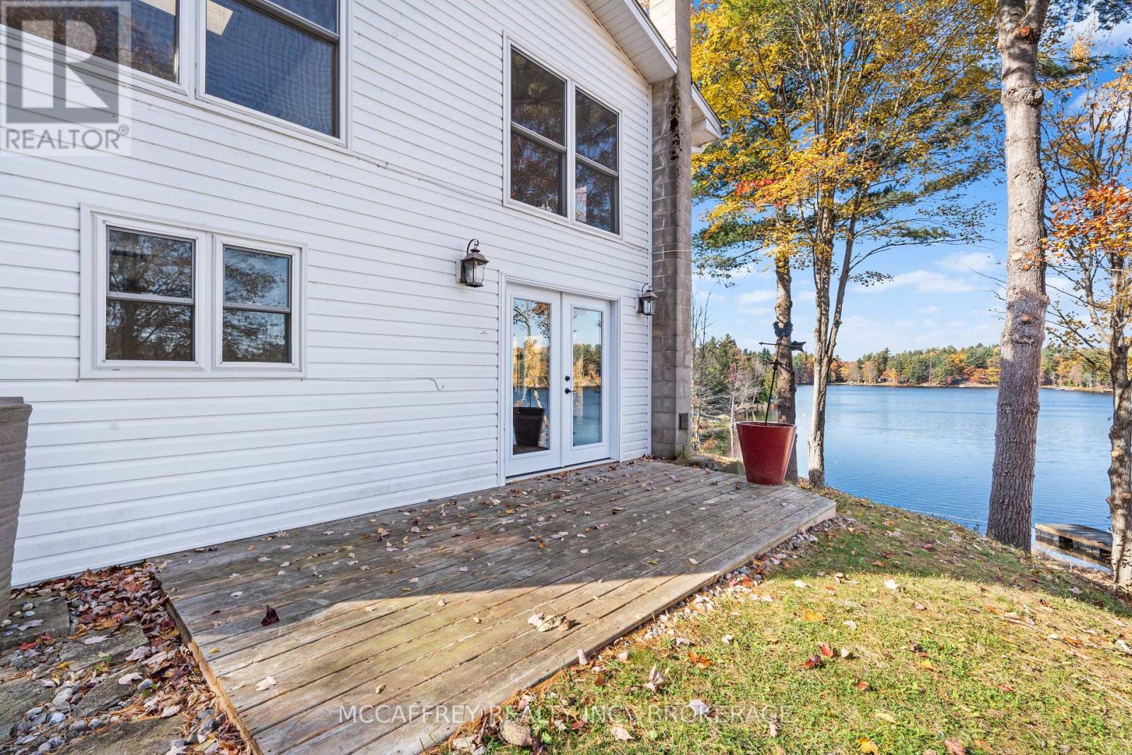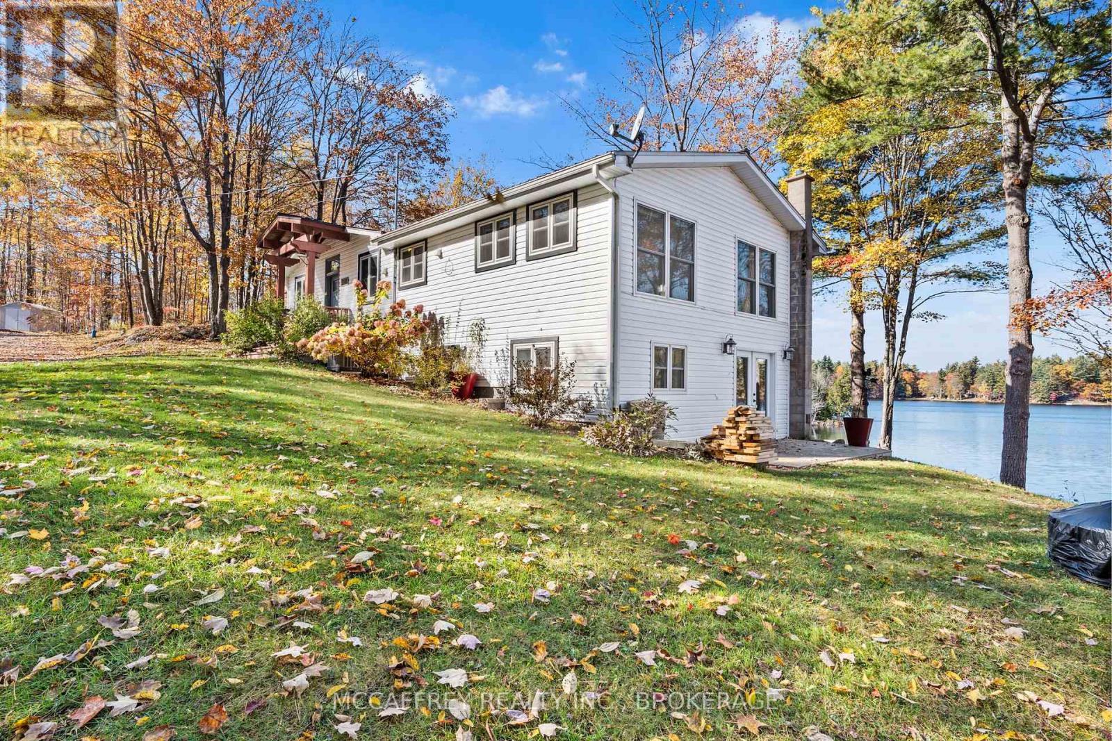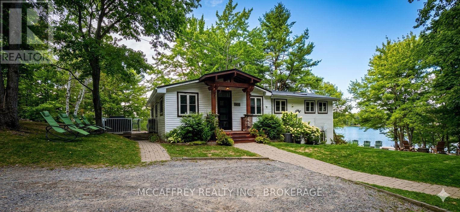 Welcome to your own slice of waterfront paradise on beautiful Elbow Lake. This beautifully updated bungalow sits on just over 140 feet of pristine shoreline, offering peaceful surroundings, mature trees, and stunning water views from nearly every room. Step inside to a gorgeous, fully updated kitchen featuring Quartz countertops, a large island, and ample cupboard space-perfect for entertaining or everyday living. The kitchen flows seamlessly into the spacious three-season sunroom, wrapped in windows that showcase breathtaking views of the lake and filled with natural light. From here, step out onto the deck overlooking the water, an ideal spot for morning coffee or evening sunsets. The main level also offers convenient main floor laundry, a 4-piece bathroom, and comfortable dining and living spaces designed to capture the beauty of the waterfront setting. The primary bedroom is a peaceful retreat, complete with a walk-in closet and private 3-piece ensuite. The fully finished walk-out basement expands the living space with two additional bedrooms, a 2-piece bathroom, and a generous utility room with plenty of storage. Patio doors lead directly outside, making it easy to enjoy the lakefront lifestyle. Outdoors, the property is framed by large mature trees that provide privacy and natural beauty. Enjoy clean, deep water from the brand new dock, perfect for swimming, boating, or simply relaxing by the shore. A convenient bunkie offers additional space for guests, making weekend gatherings and summer visits effortless. Whether you're looking for a year-round home or the perfect waterfront getaway, this exceptional property delivers the ultimate Elbow Lake lifestyle. (id:64974)