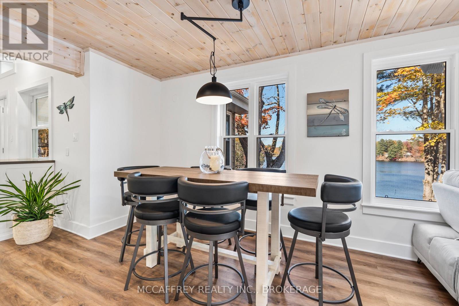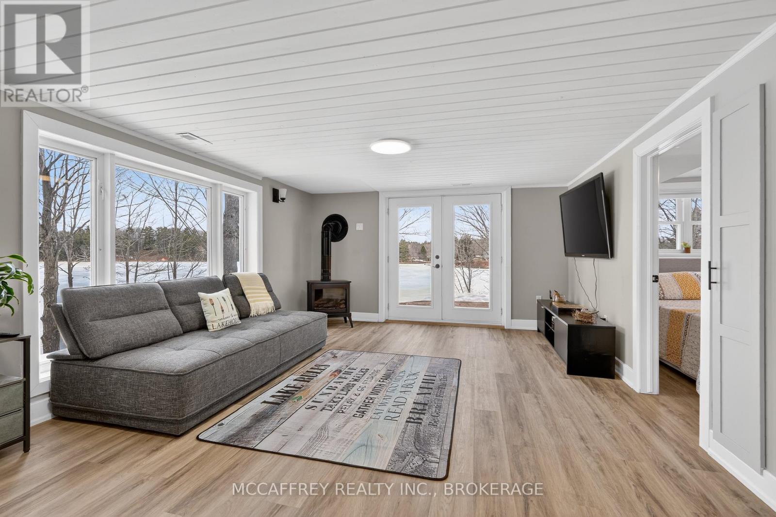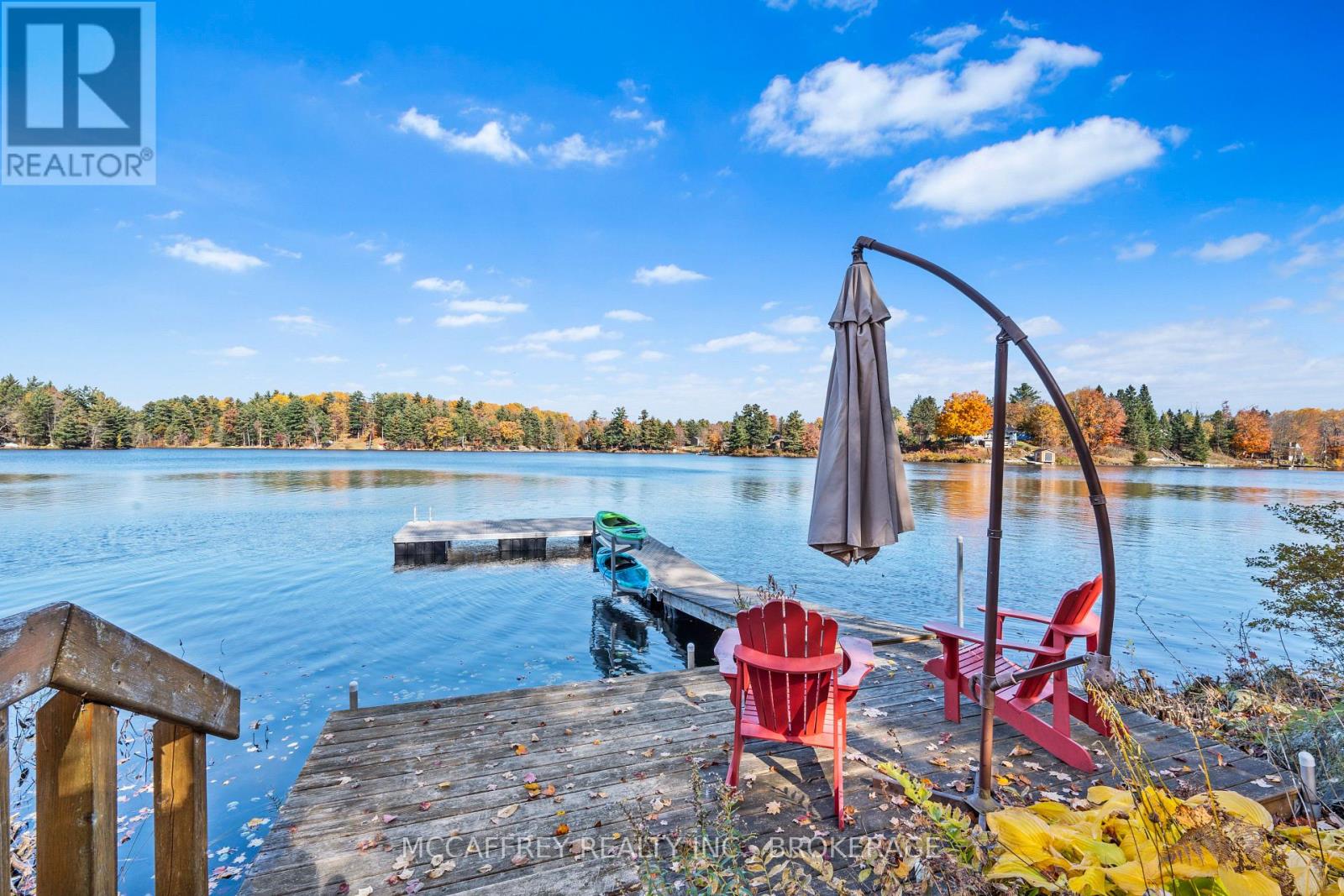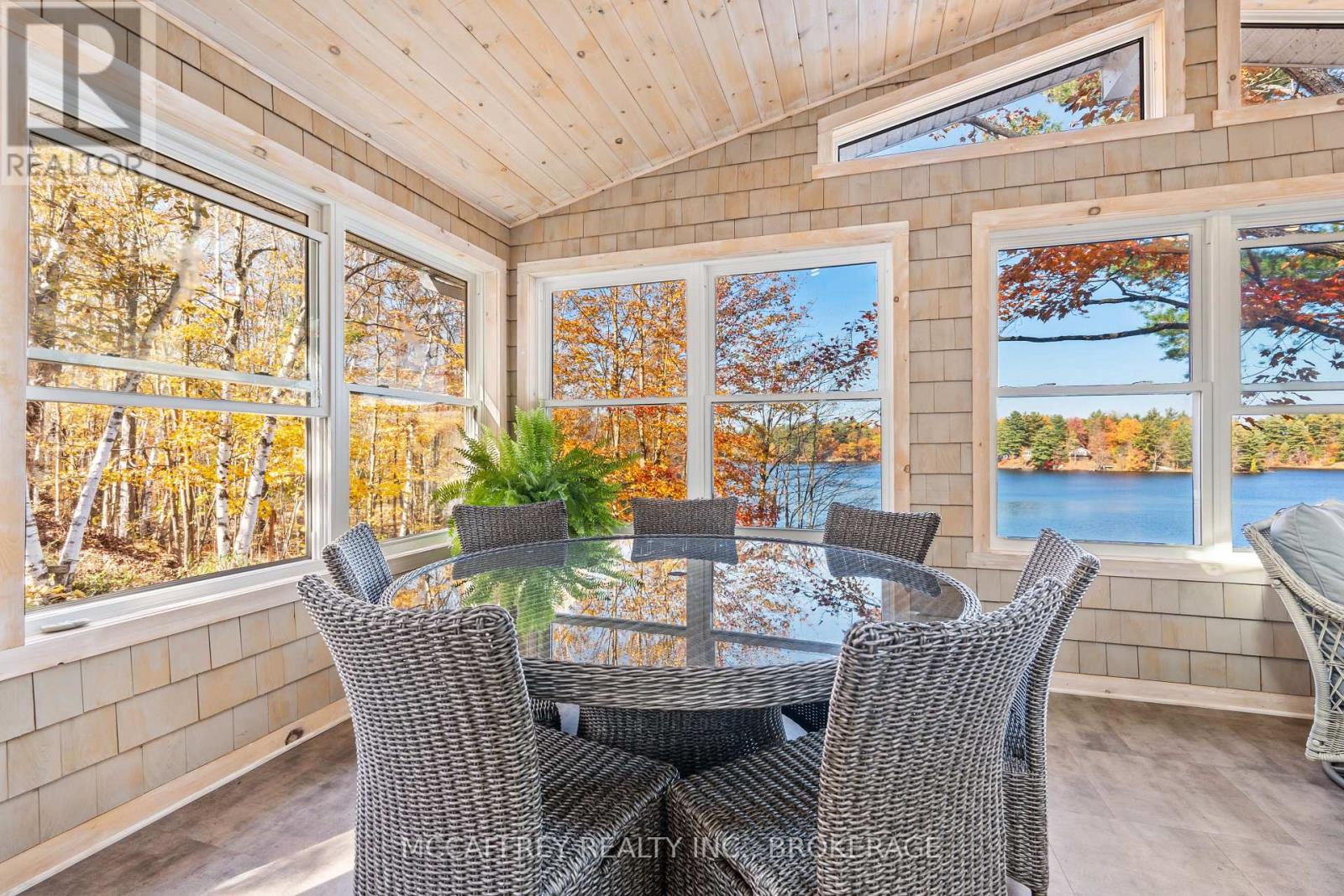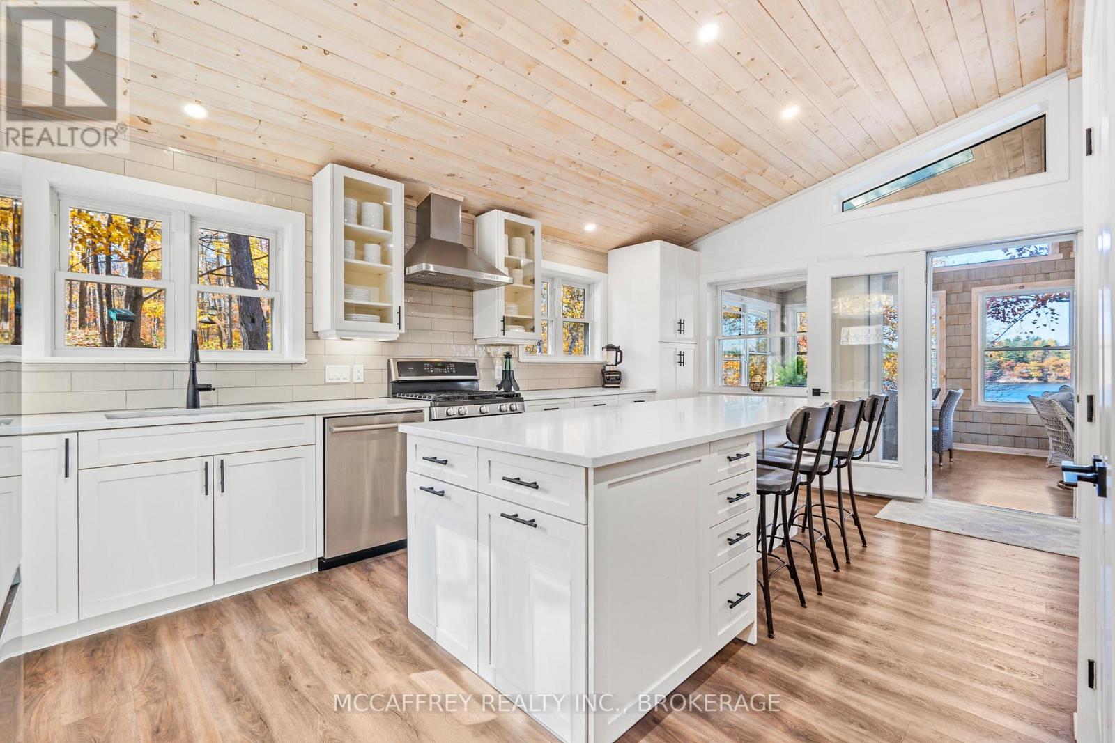 Welcome to your own slice of waterfront paradise on beautiful Elbow Lake. This beautifully updated bungalow sits on just over 140 feet of pristine shoreline, offering peaceful surroundings, mature trees, and stunning water views from nearly every room. Step inside to a gorgeous, fully updated kitchen featuring Quartz countertops, a large island, and ample cupboard space-perfect for entertaining or everyday living. The kitchen flows seamlessly into the spacious three-season sunroom, wrapped in windows that showcase breathtaking views of the lake and filled with natural light. From here, step out onto the deck overlooking the water, an ideal spot for morning coffee or evening sunsets. The main level also offers convenient main floor laundry, a 4-piece bathroom, and comfortable dining and living spaces designed to capture the beauty of the waterfront setting. The primary bedroom is a peaceful retreat, complete with a walk-in closet and private 3-piece ensuite. The fully finished walk-out basement expands the living space with two additional bedrooms, a 2-piece bathroom, and a generous utility room with plenty of storage. Patio doors lead directly outside, making it easy to enjoy the lakefront lifestyle. Outdoors, the property is framed by large mature trees that provide privacy and natural beauty. Enjoy clean, deep water from the brand new dock, perfect for swimming, boating, or simply relaxing by the shore. A convenient bunkie offers additional space for guests, making weekend gatherings and summer visits effortless. Whether you're looking for a year-round home or the perfect waterfront getaway, this exceptional property delivers the ultimate Elbow Lake lifestyle. (id:64974)