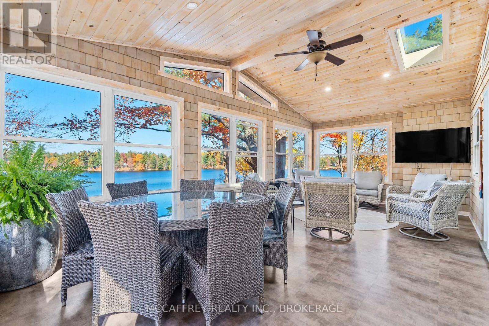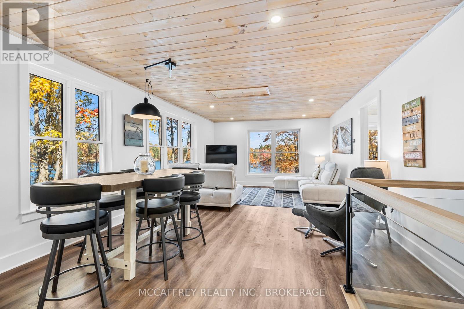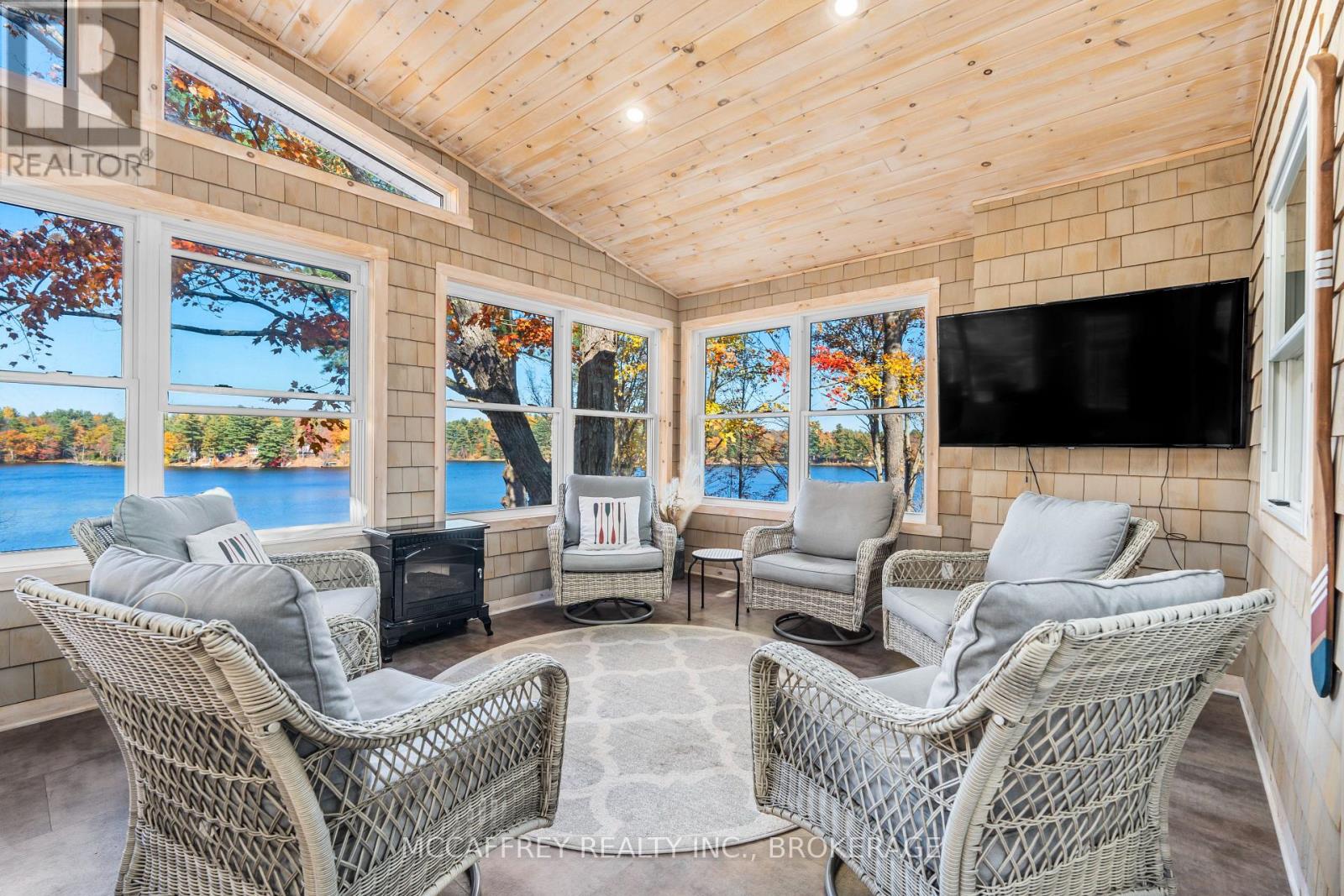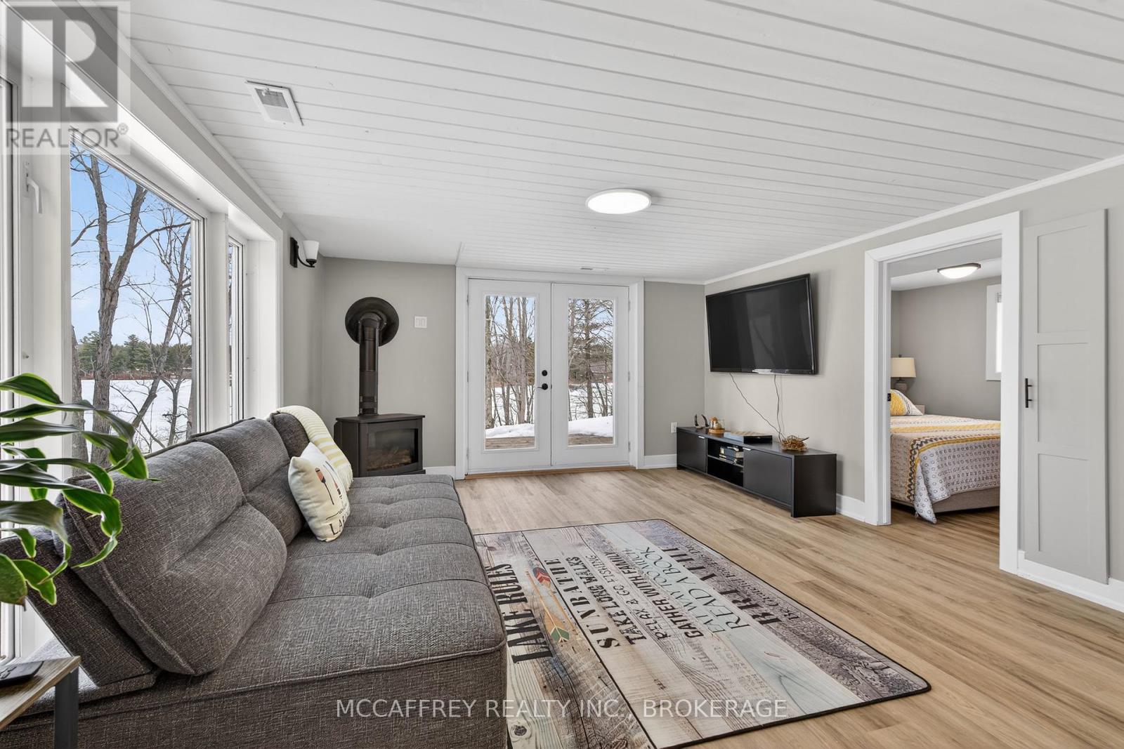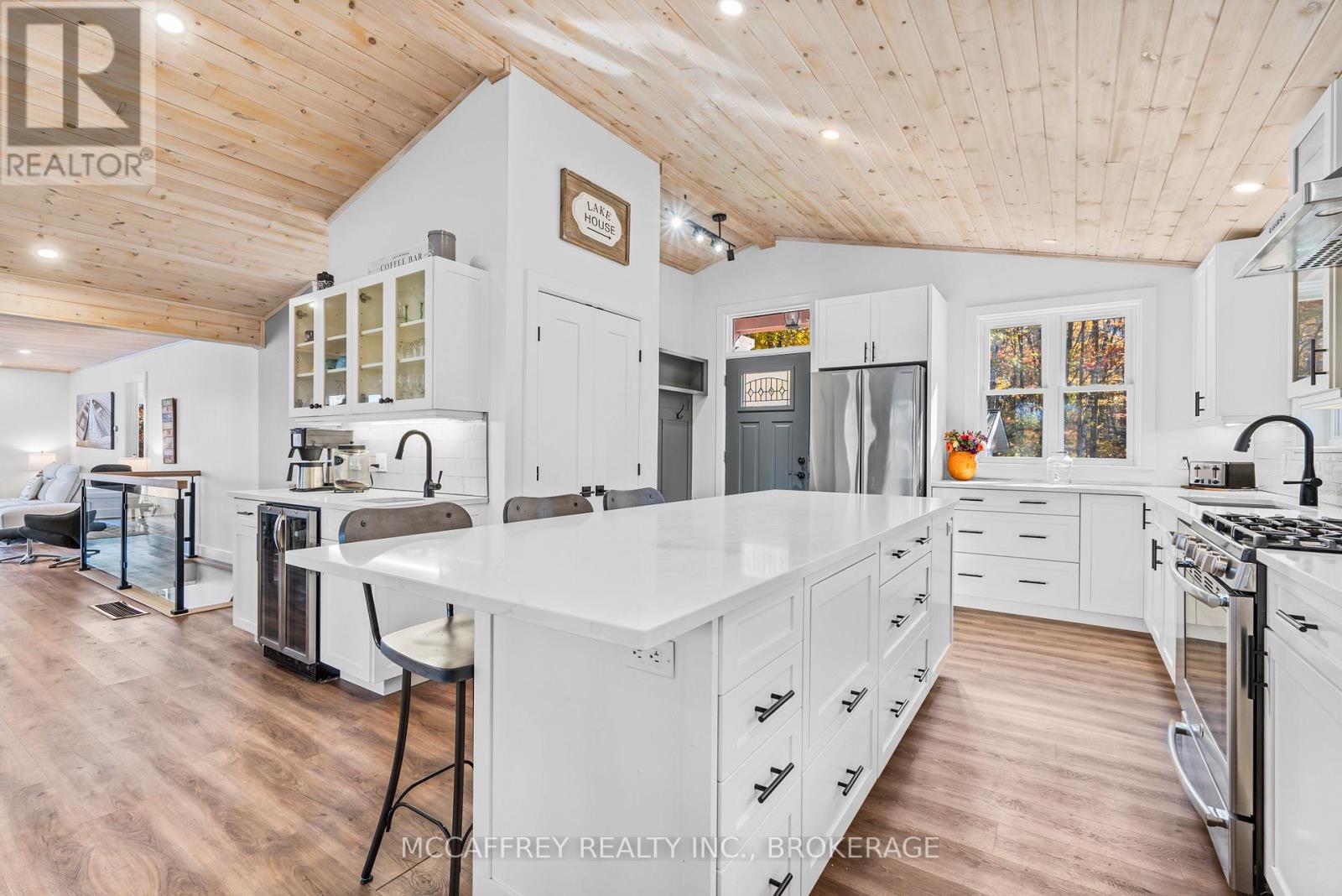 Welcome to your own slice of waterfront paradise on beautiful Elbow Lake. This beautifully updated bungalow sits on just over 140 feet of pristine shoreline, offering peaceful surroundings, mature trees, and stunning water views from nearly every room. Step inside to a gorgeous, fully updated kitchen featuring Quartz countertops, a large island, and ample cupboard space-perfect for entertaining or everyday living. The kitchen flows seamlessly into the spacious three-season sunroom, wrapped in windows that showcase breathtaking views of the lake and filled with natural light. From here, step out onto the deck overlooking the water, an ideal spot for morning coffee or evening sunsets. The main level also offers convenient main floor laundry, a 4-piece bathroom, and comfortable dining and living spaces designed to capture the beauty of the waterfront setting. The primary bedroom is a peaceful retreat, complete with a walk-in closet and private 3-piece ensuite. The fully finished walk-out basement expands the living space with two additional bedrooms, a 2-piece bathroom, and a generous utility room with plenty of storage. Patio doors lead directly outside, making it easy to enjoy the lakefront lifestyle. Outdoors, the property is framed by large mature trees that provide privacy and natural beauty. Enjoy clean, deep water from the brand new dock, perfect for swimming, boating, or simply relaxing by the shore. A convenient bunkie offers additional space for guests, making weekend gatherings and summer visits effortless. Whether you're looking for a year-round home or the perfect waterfront getaway, this exceptional property delivers the ultimate Elbow Lake lifestyle. (id:64974)