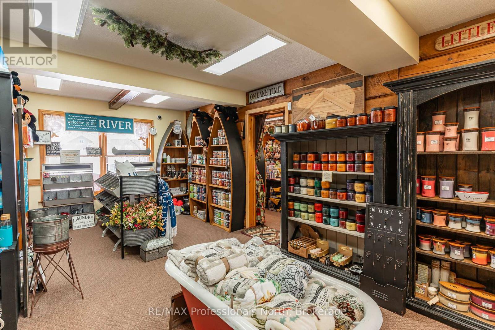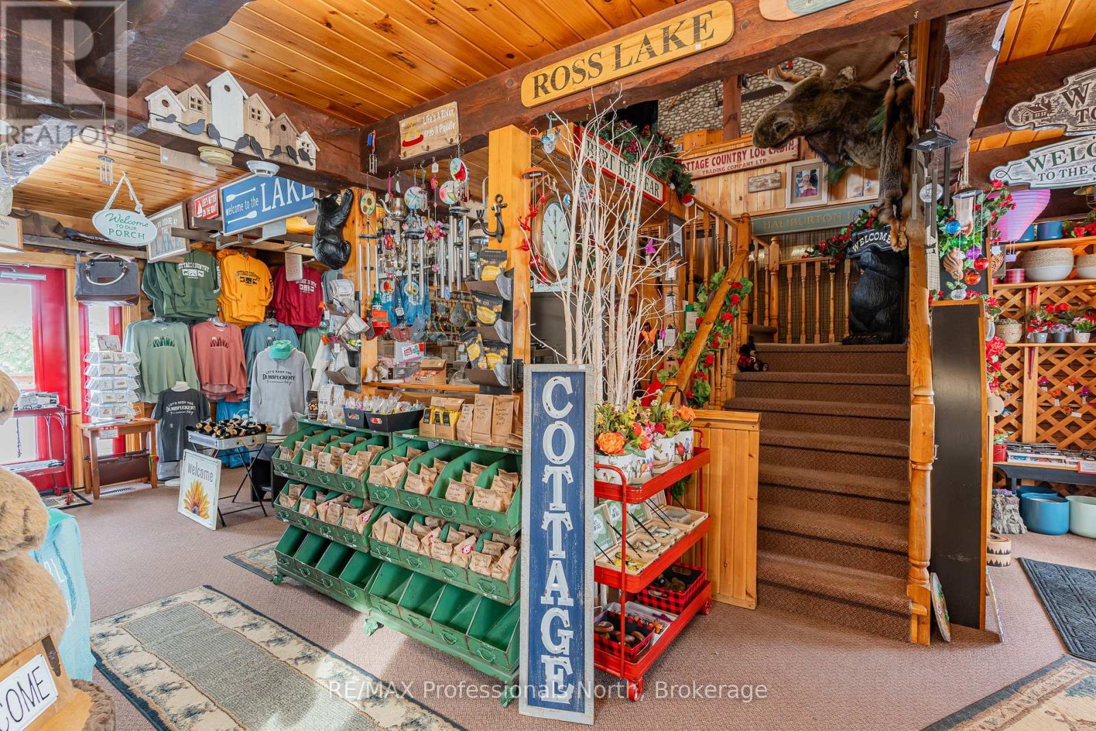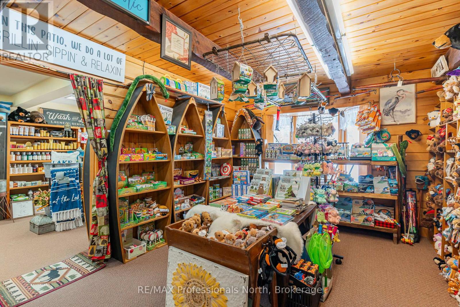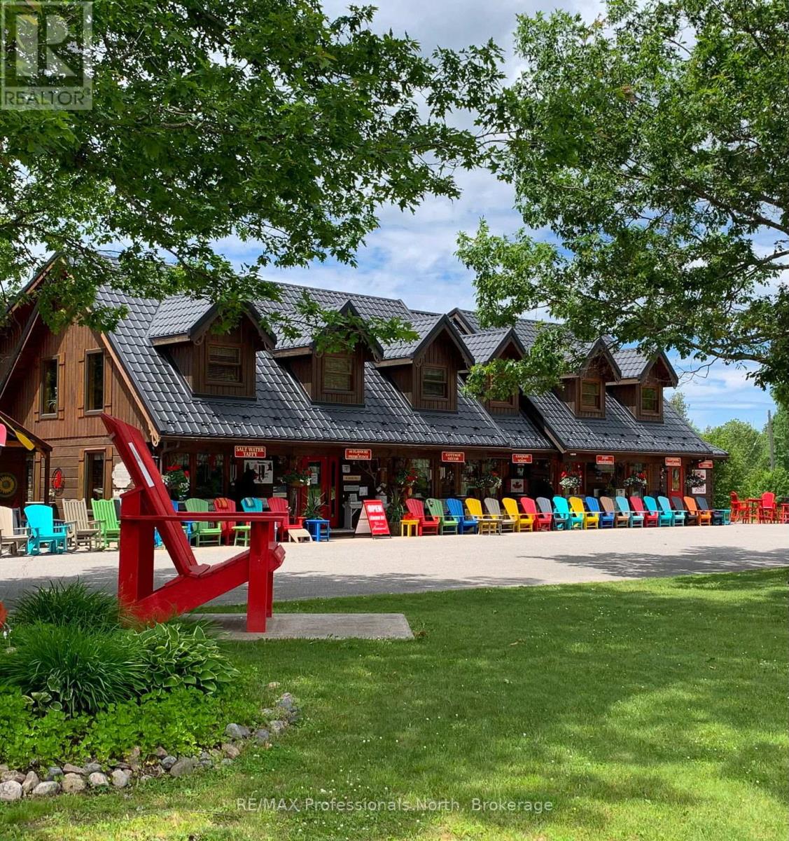 Let your imagination run wild with this iconic building set in the heart of West Guilford - this is the perfect location for your dream business! Visitors and locals alike know this special building with excellent roadside exposure. Zoned CH (Commercial Highway), this property offers a myriad of uses and provides high visibility on a main artery through cottage country. Just a few suggestions for this versatile property - Restaurant, Marine Sales, Landscaping, and more. A beautiful quality log building offers 5,520 sq. ft. split over 3 levels. The main level is currently used as a store with a large living area upstairs that provides 2 bedrooms, full kitchen/eating room, washroom, living area, walkout to a deck, sunroom, additional office or entertainment space, and more. The lower level provides 1,758 sq. ft. of undeveloped space with a walkout to the back parking lot for deliveries. The building has been extremely well maintained with a newer metal roof, a great deck out the back (perfect for that Cafe or Restaurant), full security system, and so much more. A secondary driveway behind the building has a storage area, and gives parking for staff and room for big deliveries. All of this sits on an expansive 1.23 acre lot that is lovingly manicured and offers expansion options. Driving through West Guilford, you cannot miss it, and neither can the thousands of cottagers heading to the cottage and local residents! (id:64974)
