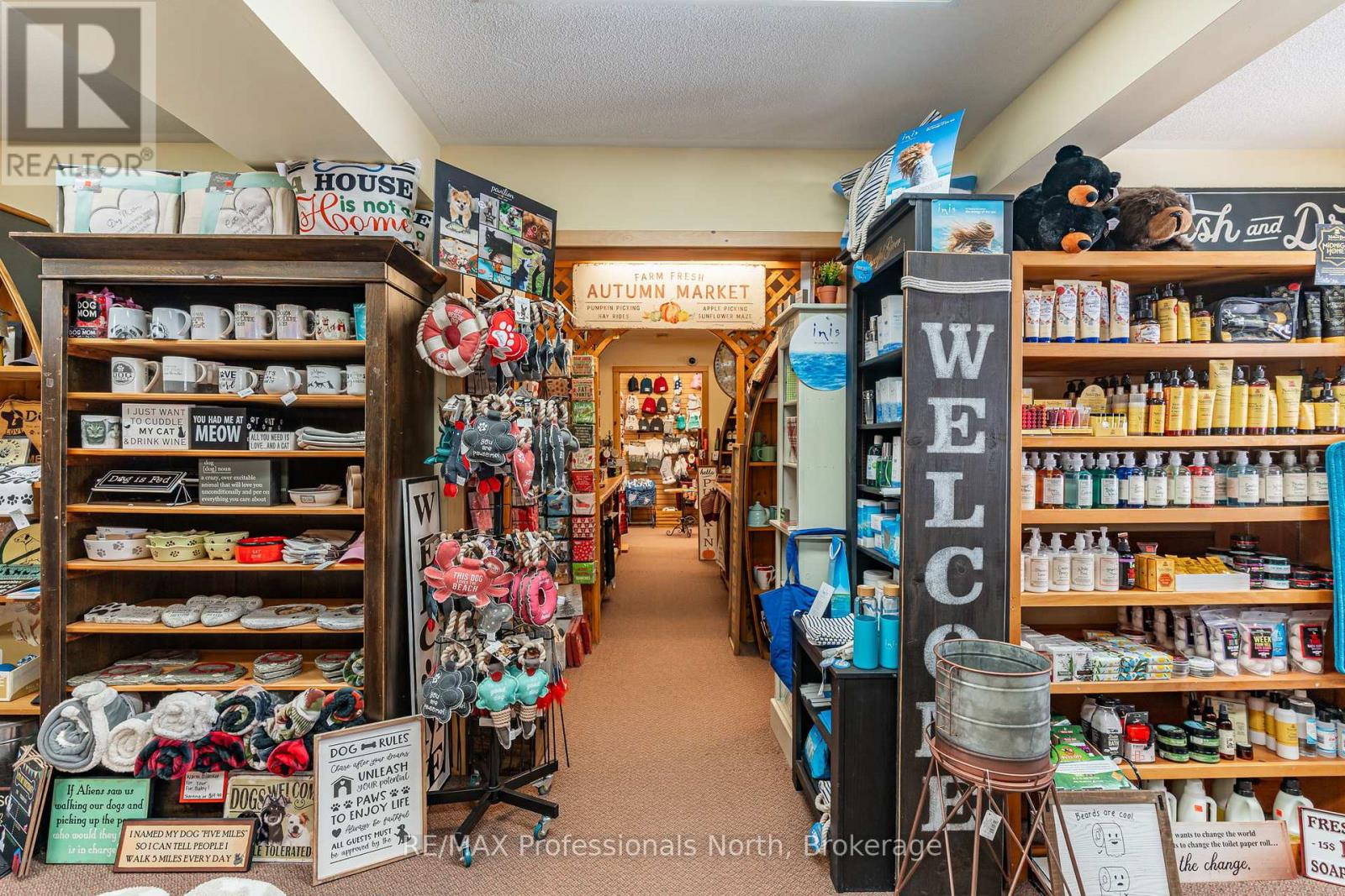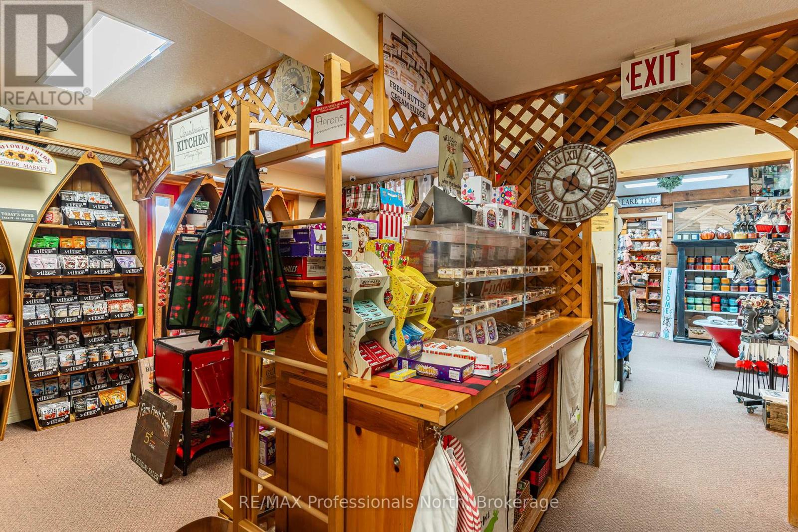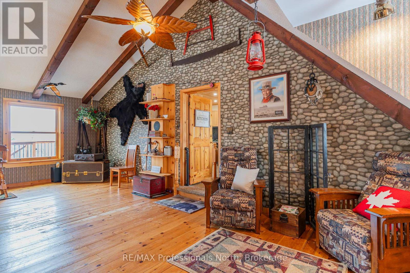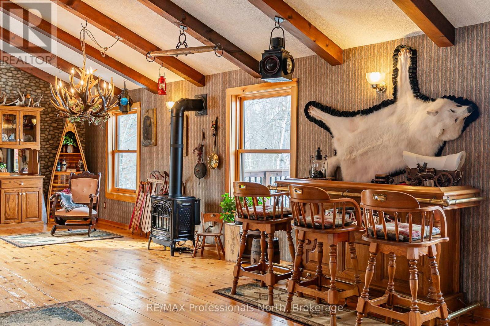 Let your imagination run wild with this iconic building set in the heart of West Guilford - this is the perfect location for your dream business! Visitors and locals alike know this special building with excellent roadside exposure. Zoned CH (Commercial Highway), this property offers a myriad of uses and provides high visibility on a main artery through cottage country. Just a few suggestions for this versatile property - Restaurant, Marine Sales, Landscaping, and more. A beautiful quality log building offers 5,520 sq. ft. split over 3 levels. The main level is currently used as a store with a large living area upstairs that provides 2 bedrooms, full kitchen/eating room, washroom, living area, walkout to a deck, sunroom, additional office or entertainment space, and more. The lower level provides 1,758 sq. ft. of undeveloped space with a walkout to the back parking lot for deliveries. The building has been extremely well maintained with a newer metal roof, a great deck out the back (perfect for that Cafe or Restaurant), full security system, and so much more. A secondary driveway behind the building has a storage area, and gives parking for staff and room for big deliveries. All of this sits on an expansive 1.23 acre lot that is lovingly manicured and offers expansion options. Driving through West Guilford, you cannot miss it, and neither can the thousands of cottagers heading to the cottage and local residents! (id:64974)