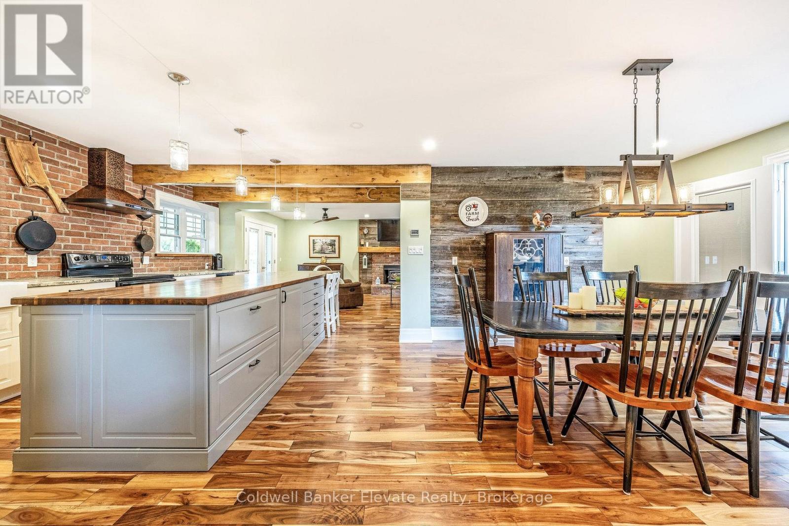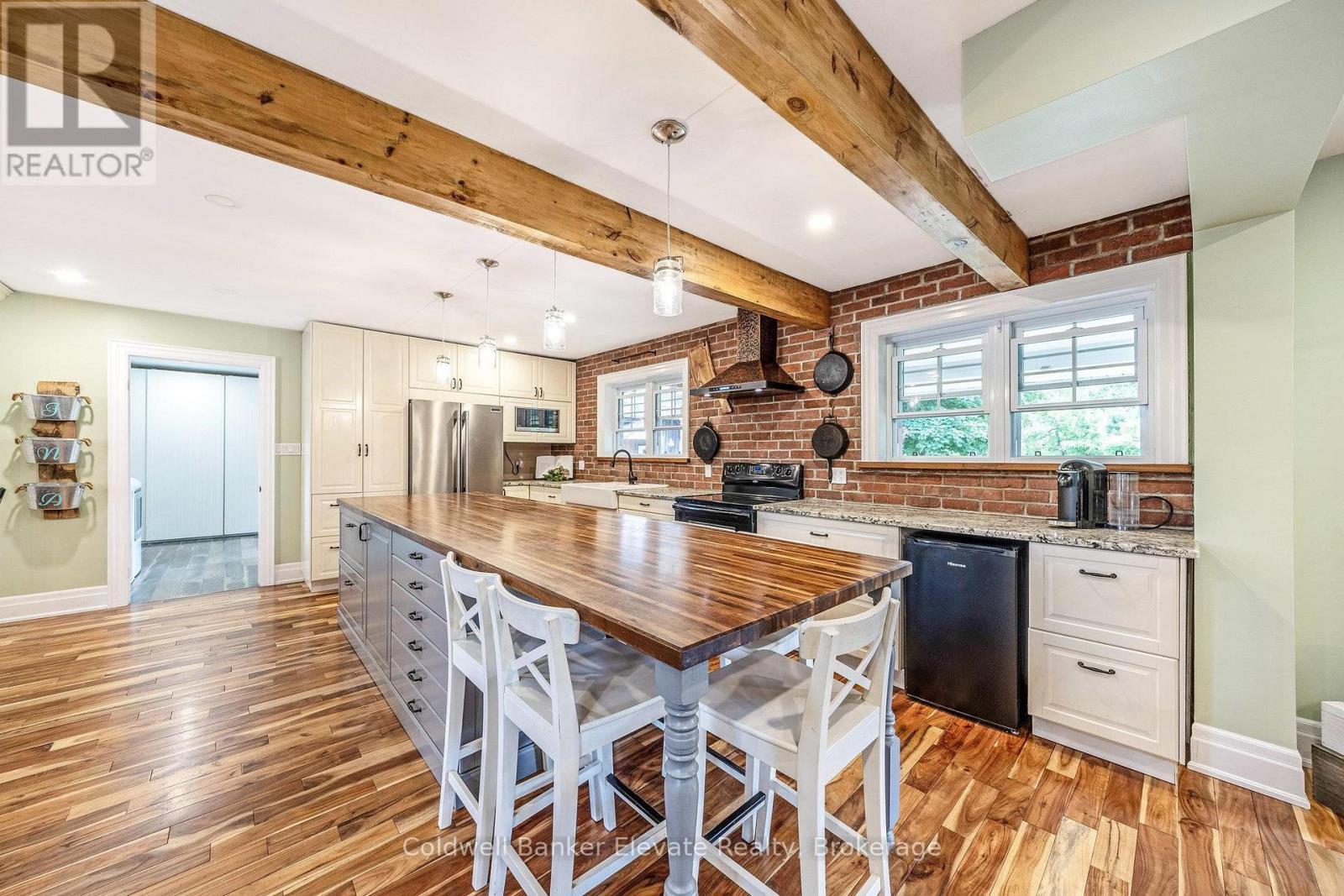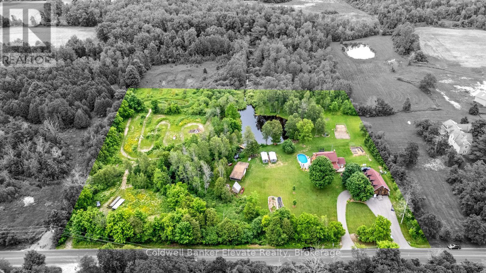 Enjoy a life less ordinary at this storybook Victorian replica home, set on over 5 picturesque acres in the heart of Campbellville. With a charming brick and board-and-batten exterior, this country estate offers the perfect backdrop for family life, homesteading, hobby farming, or a homebased business. Outbuildings abound, including a 23 x 40 ft detached garage with oversized doors and an unfinished loft. The 40 x 17 ft workshop features a roll-up door for easy equipment access and an elegant French door walkout, a dream space for any tradesperson or creative entrepreneur. The property features a mix of open field and mature woods, with two chicken coops, raised garden beds (planted with perennial asparagus and berries), and a second driveway leading to a large open space - ideal for future use or expansion. At the centre of the property, a spring-fed pond fed by Bronte Creek invites fishing, floating dock fun, and cozy evenings in the powered tree fort, perfect as a hangout space for kids or even a unique home office. The heart of the home is the open-concept kitchen, dining, and living space, full of farmhouse-style decor and light, with French doors off both the front and back, one leading to a covered front porch, the other to a screened-inback porch and sun deck, perfect for warm summer evenings and morning coffee. Upstairs offers 4 bedrooms, including a 4pc semi-ensuite off the primary, while the finished walkout basement adds a 5th bedroom, 3pc bath, wet bar, and wood-burning fireplace, ideal for guests or older children. The above-ground pool and beautiful natural surroundings complete this idyllic retreat. All this is just minutes to highways, schools, and local amenities. Welcome home to your farmhouse dream! (id:64974)