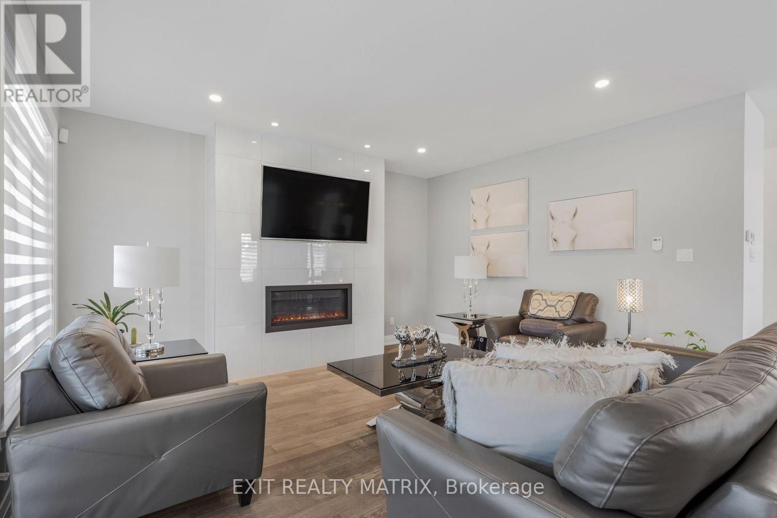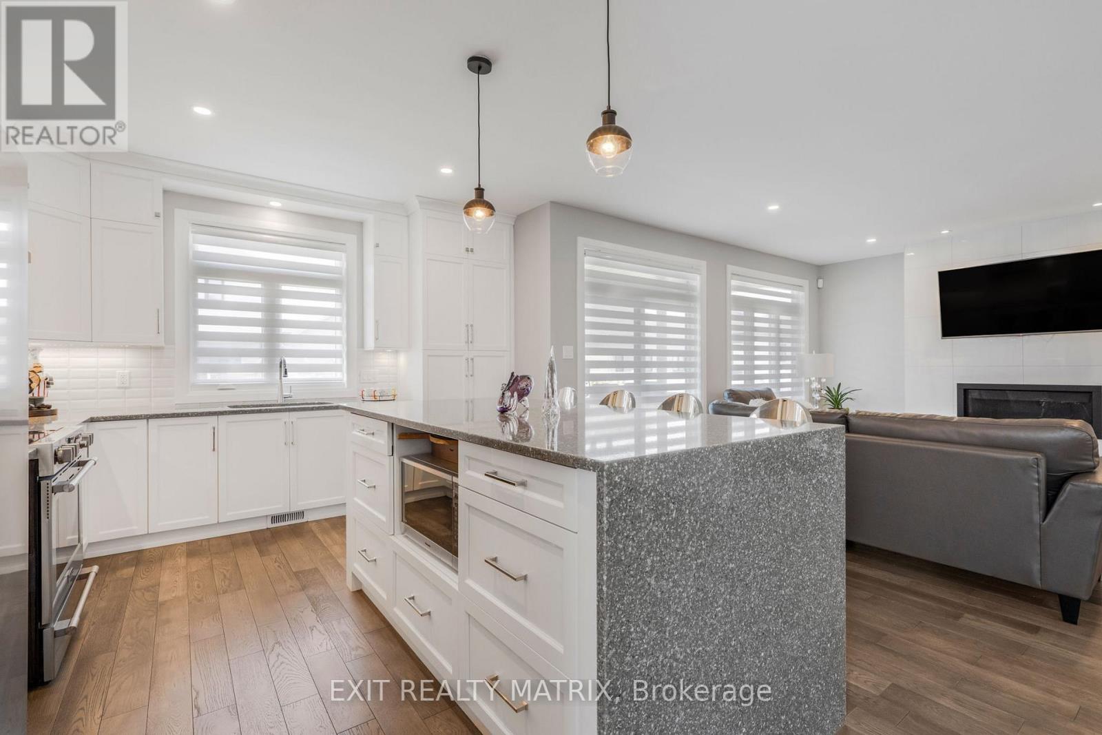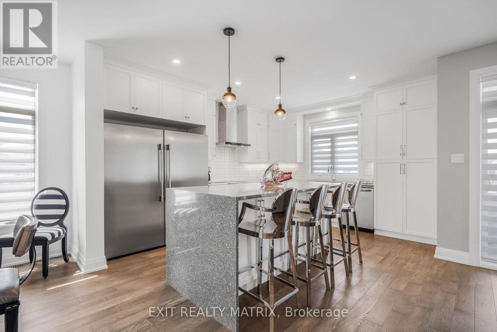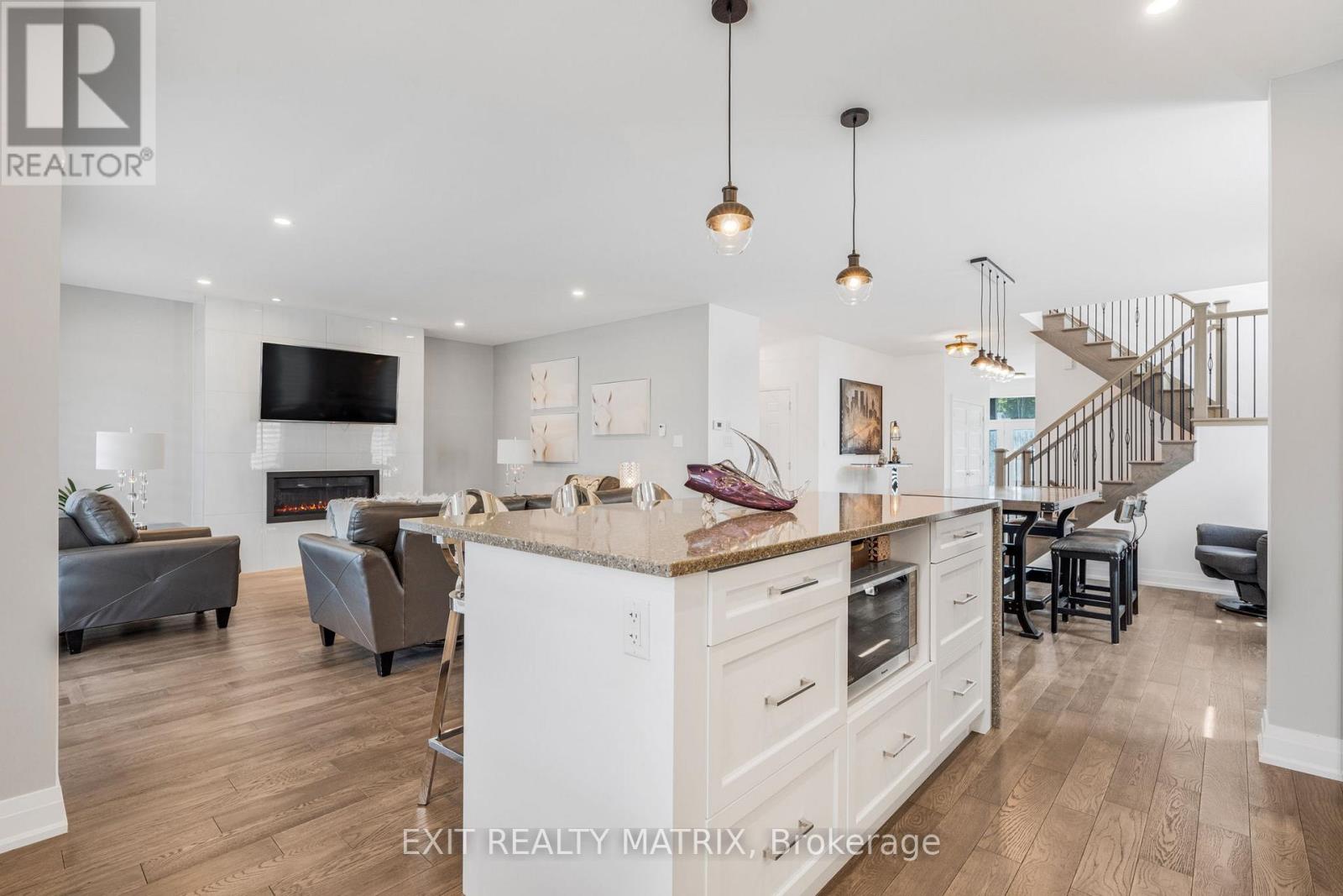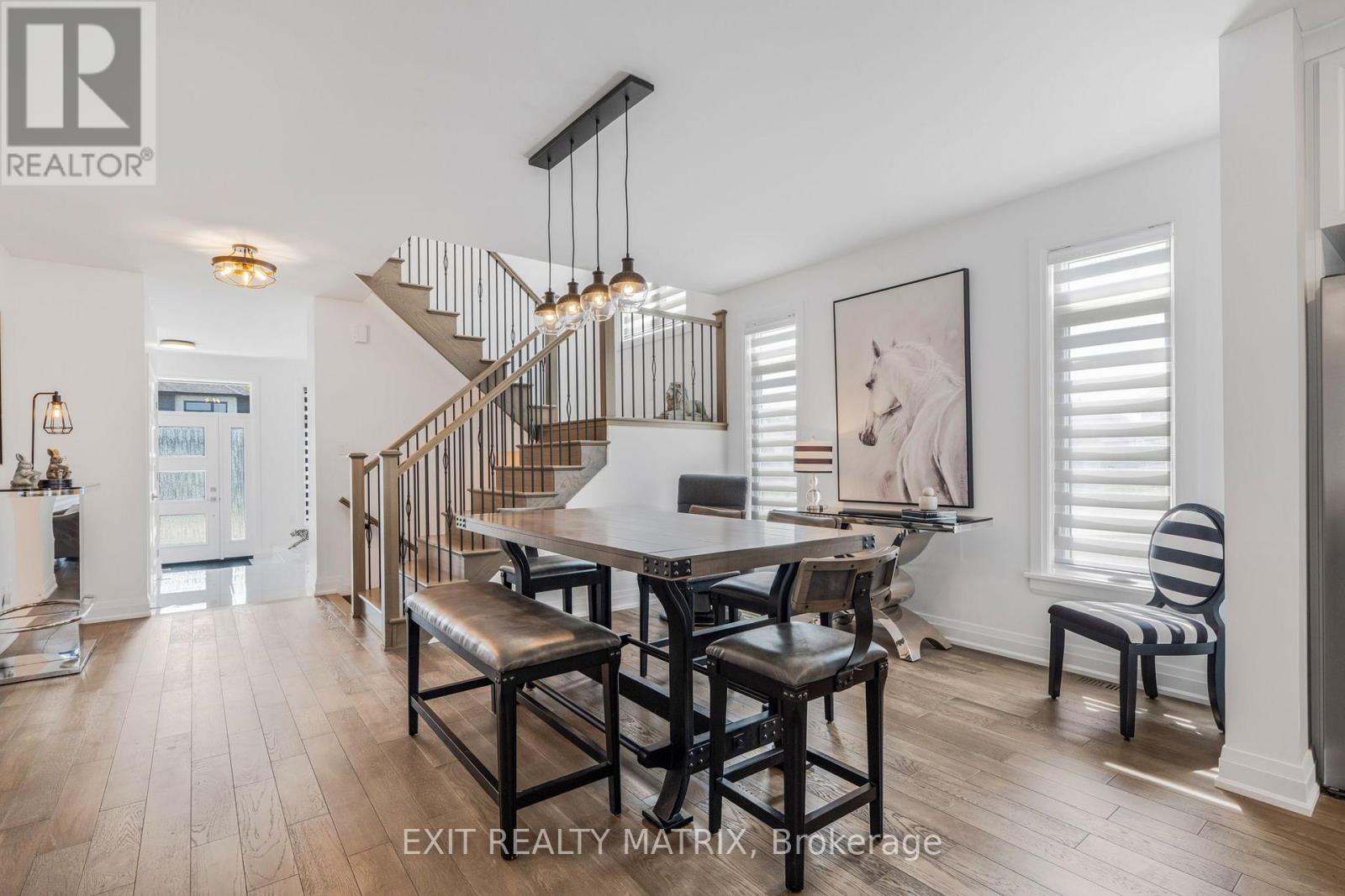 Stunning Modern Home on Oversized Corner Lot in Embrun! Welcome to your dream home, perfectly nestled on an oversized 184-ft corner lot in one of Embruns most sought-after neighbourhoods! This beautifully designed property offers high-end finishes, incredible living space, and a layout tailored for modern comfort and style. Step inside to discover a bright, open-concept main level that's both stylish and functional. The elegant dining area and cozy living room - complete with a charming fireplace and sun-filled windows - set the tone for warm gatherings and everyday living. The sleek, modern kitchen is a showstopper, featuring a sit-at island with a waterfall counter, abundant cabinetry, and premium finishes throughout. You'll also find a main floor office, garage access, and a convenient partial bathroom, ideal for busy households. The garage is fully finished, perfect for a home gym, workshop, or bonus living space. Upstairs, you'll find three spacious bedrooms, each with a walk-in-closet, and two bathrooms, including a luxurious primary retreat with a spa-like ensuite, boasting a glass shower, soaker tub, and double vanity. The basement offers an additional bedroom and potential for even more space with a rough-in for a bathroom already in place. Outside, enjoy summer evenings on your lovely backyard deck and take in the privacy and space of your generously sized yard, perfect for entertaining or relaxing. Located near parks, schools, and everyday amenities, this home truly has it all. Don't miss your chance to own this stunning property in the heart of Embrun! (id:64974)