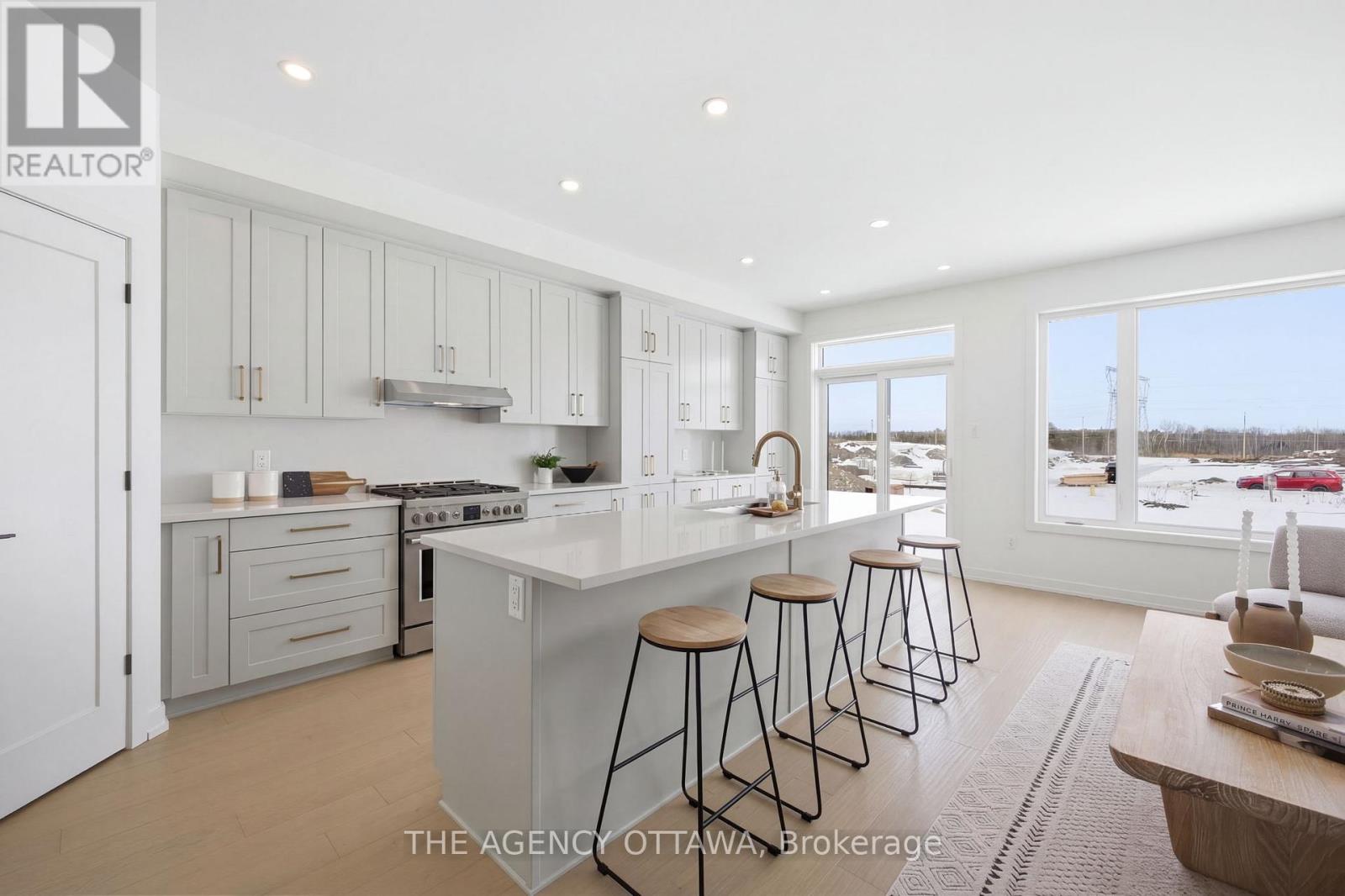 Welcome to Shea Village - Stittsville's most sought-after new community.This stunning 3-bedroom, 2.5-bathroom home is thoughtfully designed with premium finishes throughout, offering a seamless blend of style and functionality.The chef-inspired kitchen is the heart of the home, featuring painted MDF cabinetry, 42" upper cabinets, an extended pantry with a dedicated coffee nook, and striking quartz countertops with a matching quartz backsplash. A roughed-in gas line sets the stage for your future gas range. Wide-plank stained white oak engineered hardwood flows throughout the entire main floor - including the kitchen - and continues into the second floor hallway, creating a cohesive, elevated aesthetic.Unwind in the family room beside a sleek gas fireplace, or retreat to the luxurious 4-piece ensuite complete with dual sinks. Every bedroom is finished with upgraded carpet and premium underpads for added comfort underfoot.Set in the vibrant Shea Village community in Stittsville, enjoy easy access to top-rated schools, parks, shopping, and major commuter routes - all within one of Ottawa's fastest-growing west-end neighbourhoods.This is modern living, elevated. (id:64974)