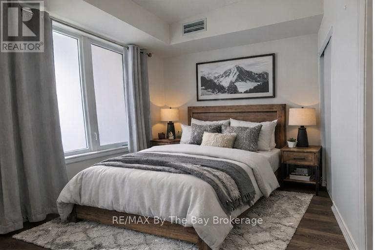 Modern 887 sqft 2 bedroom 2 Bathroom condo unit available at The View at Blue Fairways. Enjoy open-concept living with modern finishes in a new building.Gourmet kitchen with premium appliances including a gas range & quartz countertops. Living area opens to a large 17' x 8' balcony with glass railings & BBQ gas line. Primary bedroom with ensuite & large closet. 2nd Bath wheelchair accessible. Insuite Laundry. Ample storage with convenient storage closet next door to unit. Located in the West End of Collingwood, close to shopping, dining, skiing, golf, walking trails & many more recreational activities. Come see your new home today! (id:64974)