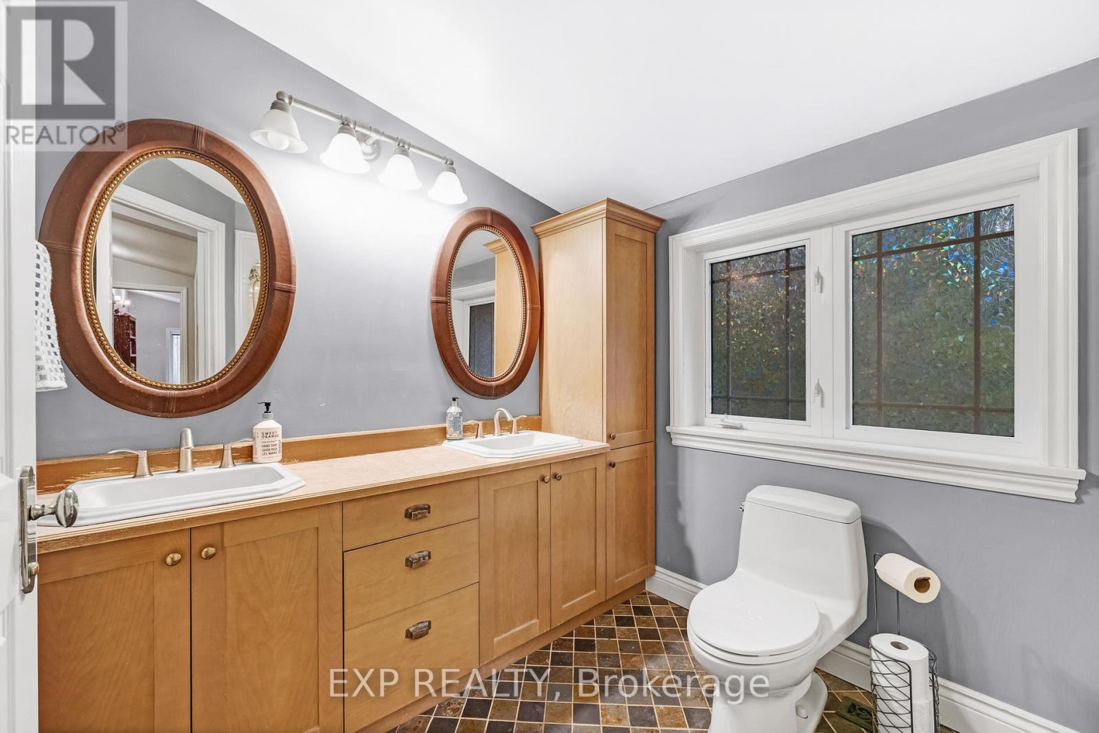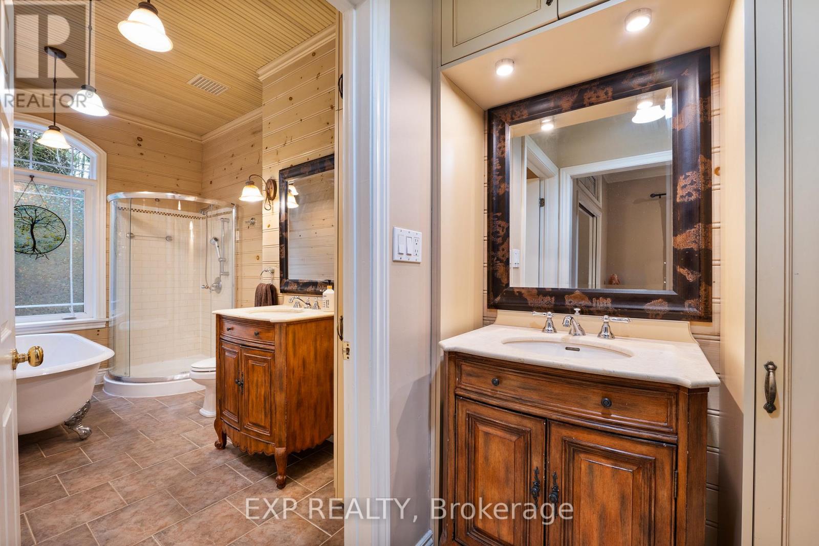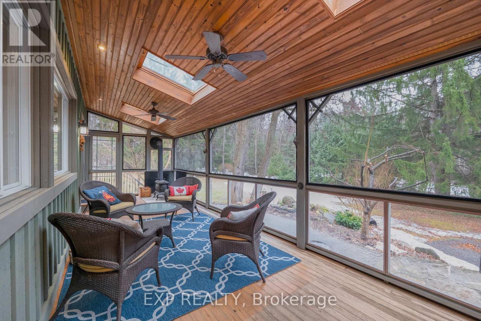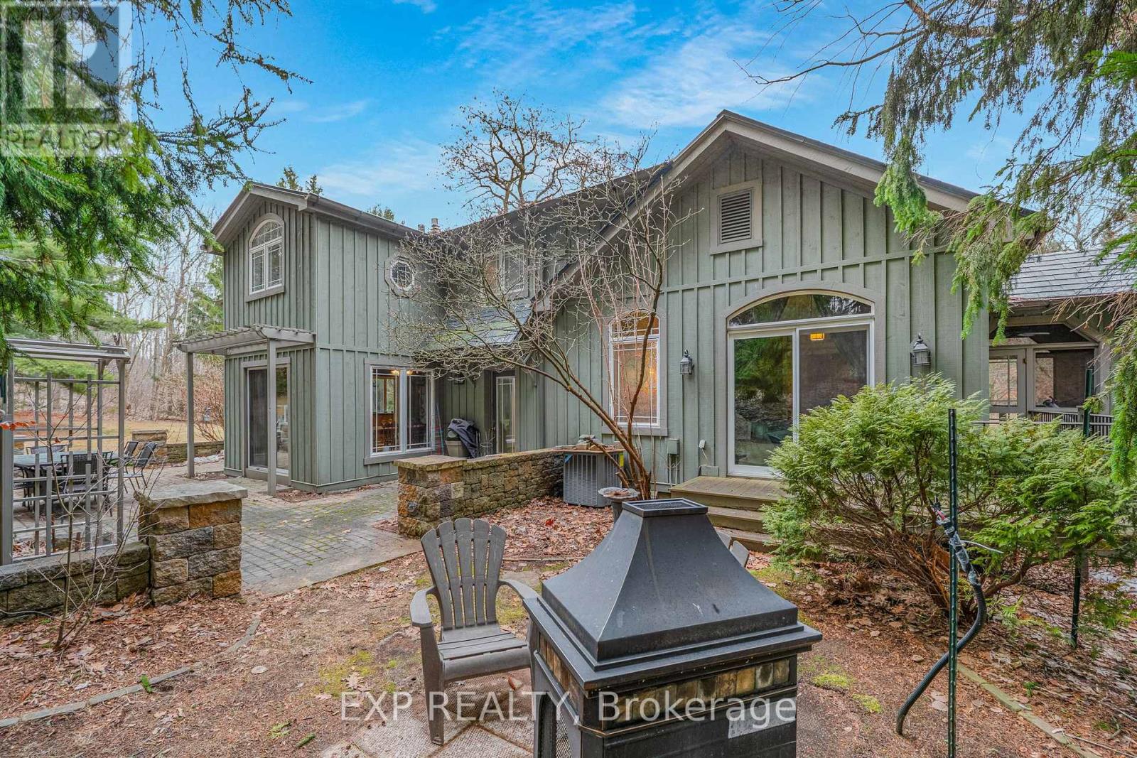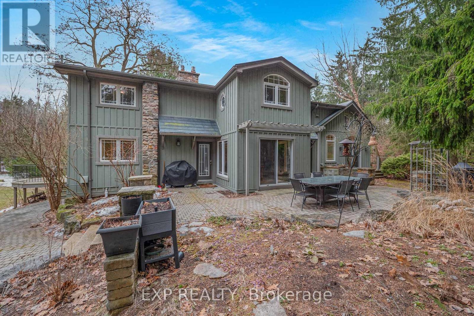 The Painters Hollow: A Mid-Century Masterpiece in the Heart of King Nestled on a prestigious cul-de-sac within the rolling hills of King City, this one of a kind 4 bedroom estate offers a rare blend of Canadian artistic legacy & sophisticated luxury. Originally the sanctuary of Painters Eleven founder Oscar Cahén, this hidden oasis provides a tranquil lifestyle surrounded by mature forests, 30 minutes from the city. This sprawling 5 acre rural estate with 250+ foot frontage offers unparalleled privacy and a true retreat experience. Inside, 4,456 square feet of finished living space is bathed in natural light, featuring a spectacular great room18 foot vaulted ceilings, a massive stone fireplace, & a premium Valor gas insert. Meticulously updated, the home features spray foam insulation, lifetime warranty aluminum roof, & high efficient mechanicals 2022 furnace & 2020 A/C. Designed for multi-generational living, the layout boasts a primary main-floor wing serving as a private sanctuary with a walk-in closet, 4-pc ensuite with standalone tub, & a private living area with its own fireplace. Step out to a screened-in Muskoka room with western exposure, complete with a hot tub rough-in, to enjoy serene sunsets. The main level also features a dedicated office/studio, formal dining, a sunroom with a wood-burning stove, 10 W/Os leading to enchanting forest paths. The finished walk-out basement, double garage, & separate studio offer the perfect footprint for professional home offices. Modern comforts include a tankless water heater, UV filtration, & whole-home softener. Situated among multi-million dollar custom homes in an elite York Region enclave, this property is mins from Villanova College, Country Day School, & the King City GO Station. An extraordinary opportunity to own a piece of Canadian history on a premier lot, ready to complement your next chapter in one of the GTA's most desirable communities. (id:64974)