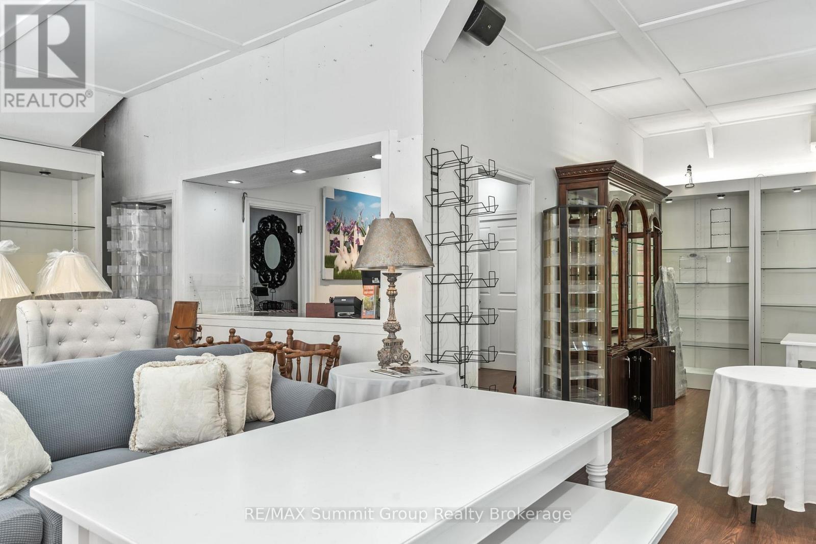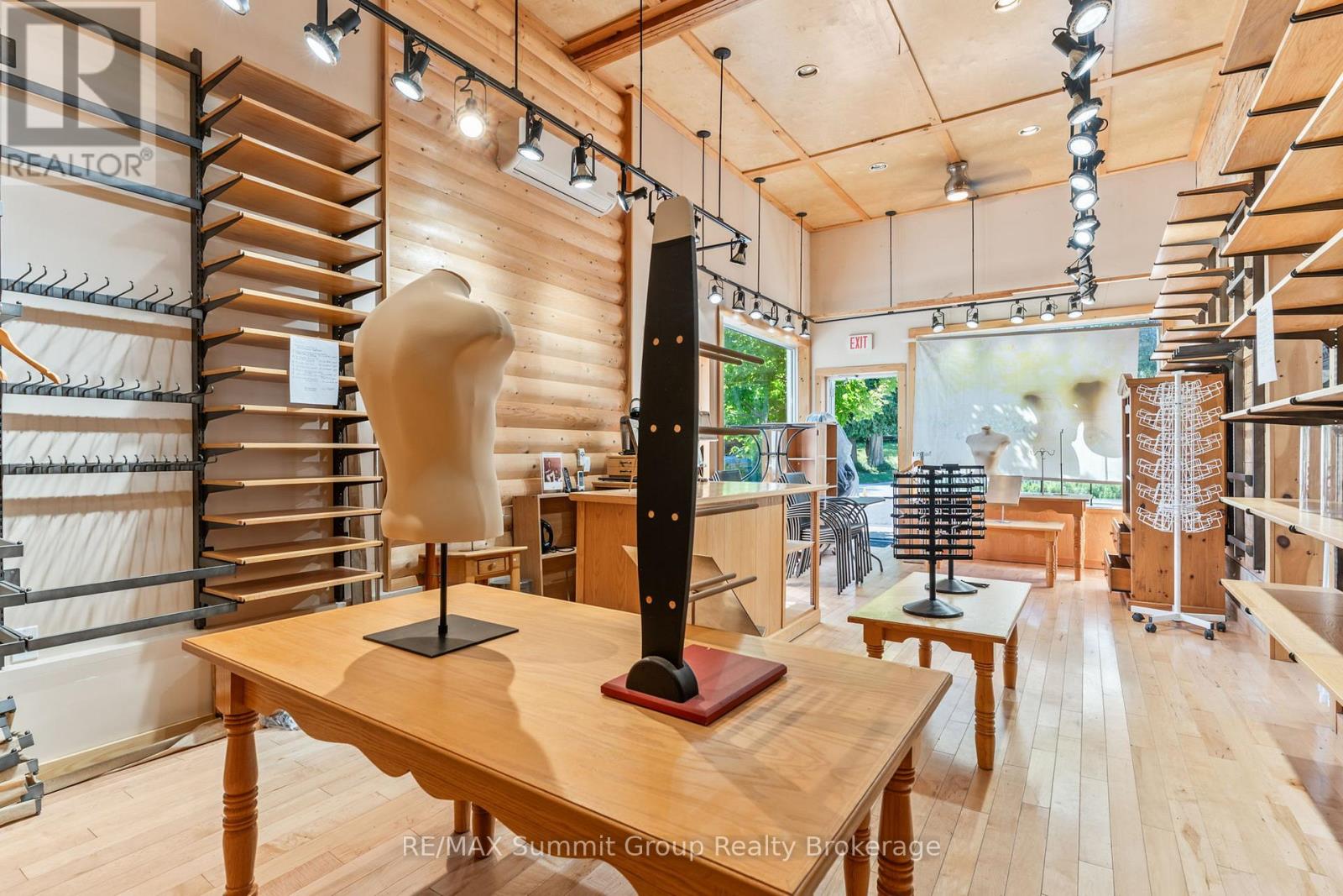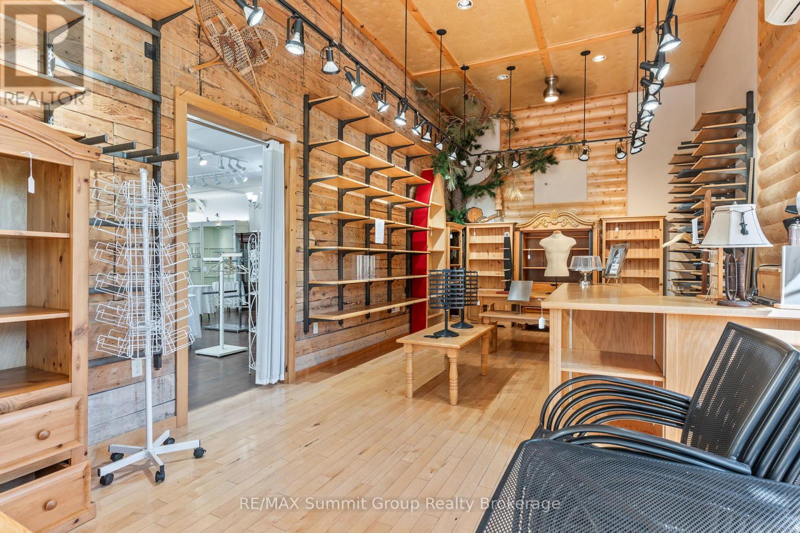 Set in the village of Feversham and backing onto the Beaver River, this light industrial property offers endless opportunities for your business. With large front windows, multiple access doors, a side deck, and ample parking, it's an ideal setup for a business that needs both visibility and functionality. The main part of the showroom has a ceiling height of 9.5 ft, while the section known as "Tippy Canoe" features a clearance of 14 ft. Picture a modern kitchen showroom, stone countertops, maybe a dedicated window and door sales space, a siding or garage door showroom, equipment sales, a building supply center, or possibly a yoga or fitness studio. The light industrial zoning permits a variety of uses, including warehousing and wholesaling, assembly and light manufacturing, open storage, equipment sales, and one residence for security or caretaking purposes. Upstairs, an unfinished loft adds future potential. It could be used for staff space, storage, or even a residential unit to help offset expenses. There is currently no well or septic in place. If you've been looking for a versatile property where you can grow your business and create a space that stands out, this is it. (id:64974)