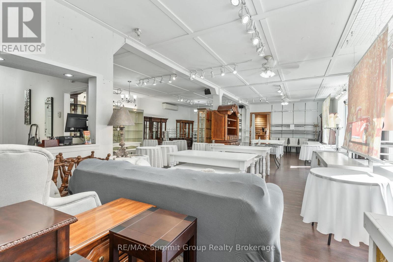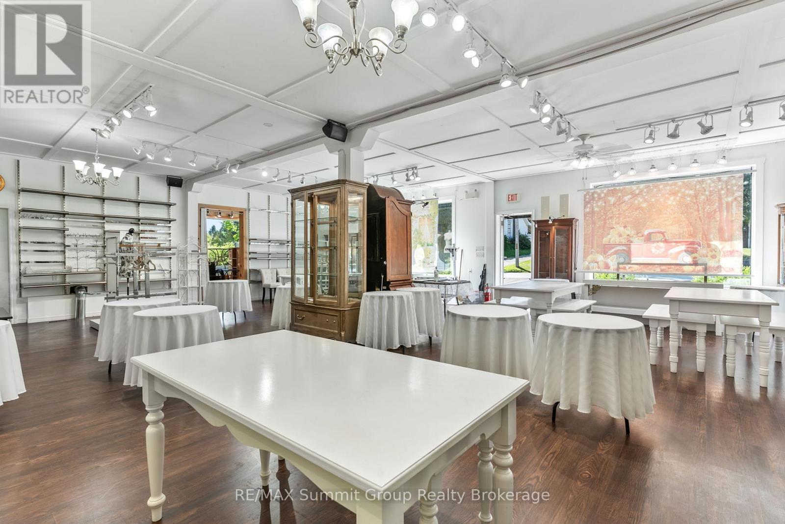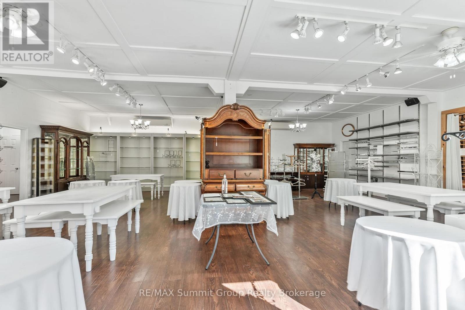 Set in the village of Feversham and backing onto the Beaver River, this light industrial property offers endless opportunities for your business. With large front windows, multiple access doors, a side deck, and ample parking, it's an ideal setup for a business that needs both visibility and functionality. The main part of the showroom has a ceiling height of 9.5 ft, while the section known as "Tippy Canoe" features a clearance of 14 ft. Picture a modern kitchen showroom, stone countertops, maybe a dedicated window and door sales space, a siding or garage door showroom, equipment sales, a building supply center, or possibly a yoga or fitness studio. The light industrial zoning permits a variety of uses, including warehousing and wholesaling, assembly and light manufacturing, open storage, equipment sales, and one residence for security or caretaking purposes. Upstairs, an unfinished loft adds future potential. It could be used for staff space, storage, or even a residential unit to help offset expenses. There is currently no well or septic in place. If you've been looking for a versatile property where you can grow your business and create a space that stands out, this is it. (id:64974)