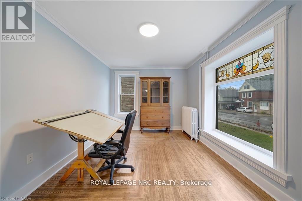 Welcome to 115 West Main Street, a beautifully updated 6-bedroom, 2-bath home in theheart of Welland that perfectly blends old-school charm with today's modern comforts.This versatile property offers endless possibilities - whether you're searching for theperfect family home or a professional space for your business. With commercial zoning,it's ideal for a doctor's office, law firm, or home-based enterprise. Step inside and begreeted by gleaming walnut hardwood floors that seamlessly flow into restored originalhardwood, creating a warm and inviting feel throughout. The main floor features aspacious bedroom with a walk-in closet, a bright updated laundry room, and a largeworking office that can easily serve as a sixth bedroom or meeting space. The new eat-inkitchen is a true showpiece - featuring modern appliances, crisp finishes, and plenty ofspace for family dinners or casual morning coffee. Both bathrooms have been tastefullyrefreshed, and the entire home has been freshly painted, ready for you to move right in.Enjoy peace of mind with practical upgrades including a metal roof, new boiler, and arecently sealed driveway (October). Outside, the covered front porch welcomes you home,while the rear deck and fully fenced yard offer the perfect space to entertain, garden,or relax. The 1.5-car detached garage (also with a metal roof) and large driveway withparking for up to five cars make this home as functional as it is beautiful. Located ona transit line and bus route, this property offers unbeatable convenience - just stepsfrom shopping, restaurants like Bridgewater Brewery, the Welland Historical Museum, andclose to schools, parks, and multiple golf courses all within a short 5-10 minute drive.Move in just in time for the holidays! Whether you're a growing family, a professionalseeking a mixed-use property, or an investor looking for potential, 115 West Main Streetin Welland is perfect for you! (id:64974)