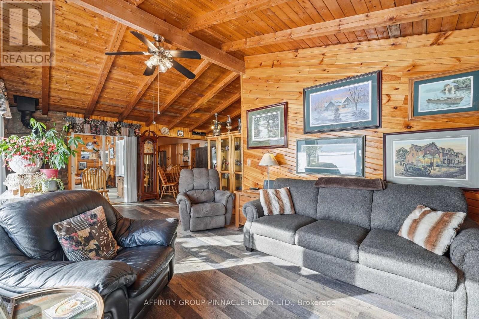 Welcome to waterfront living with quintessential cottage vibes on beautiful Moore Lake! Set on over half an acre lot with 100ft of sandy frontage, this inviting waterfront property offers the perfect blend of cottage charm and year-round functionality with plenty of space for family and guests.The main level features a bright open-concept kitchen and dining area that flows into the living room, where a cozy propane fireplace anchors the room and large windows showcase beautiful views of the Lake. Just off the kitchen, the three-season sunroom provides the perfect place to relax and unwind while taking in the peaceful waterfront setting. This level also offers three bedrooms and a full bathroom. Off the kitchen, a heated breezeway connects the home to the oversized, insulated and heated double-car garage, offering exceptional space for vehicles, recreational toys, and storage.Above the garage, the spacious loft is ideal for hosting family and friends, complete with two additional bedrooms and a large living area. Step outside to the large deck with sleek glass railings, perfectly positioned to capture unobstructed lake views.The partially finished walkout basement creates a fantastic entertaining space with a wet bar, generous recreation area, and a massive workshop/utility room. Outside, the property continues to impress with ample parking, a large bunkie (sleeps up to 10), multiple sheds, concrete patio, large deck, 2 docks and plenty of yard space to enjoy the outdoors. Whether you're looking for a year-round home or the ultimate cottage retreat, this Moore Lake property offers space, comfort, and classic waterfront charm (id:64974)