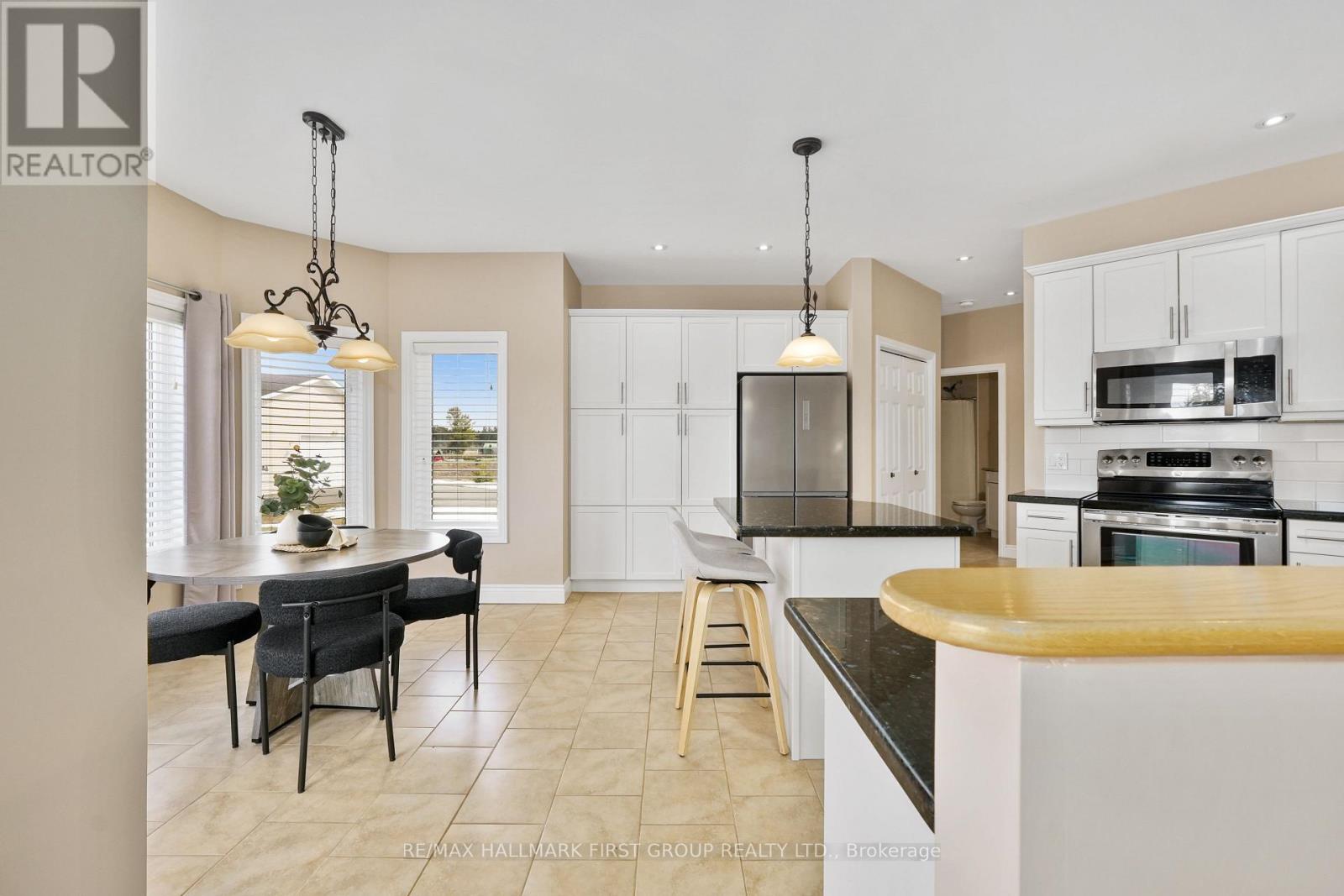 Set on a spacious property with beautiful country views, this well-appointed bungalow offers convenient main-level living with the added benefit of a finished lower level, attached garage, and an impressive detached workshop. A bright and open front entrance introduces a serene colour palette that flows seamlessly throughout the home. The inviting living room features a wall of windows, recessed lighting, and a cozy fireplace, creating a warm and airy atmosphere while remaining open to the eat-in kitchen. Timeless in design, the kitchen is equipped with stainless steel appliances, ample cabinetry and counter space, a prep island, and tile backsplash. The dining area showcases a charming bayed window nook and walkout, perfectly suited for entertaining and summer BBQs.The main floor hosts a spacious primary bedroom complete with a large window, walk-in closet, and private ensuite. A second bedroom, full bathroom, convenient main-level laundry, and direct access to the attached garage complete this level. Downstairs, the finished lower level expands the living space with a sprawling rec room and games area, guest bedroom, full bathroom, office, and abundant storage. Outdoors, enjoy peaceful country surroundings with a patio, generous green space, garden beds, and an inviting fire pit for relaxing evenings. A standout feature of the property is the separate 40 x 50 ft workshop, complete with a garage bay, ideal for hobbyists, entrepreneurs, or additional storage needs. (id:64974)