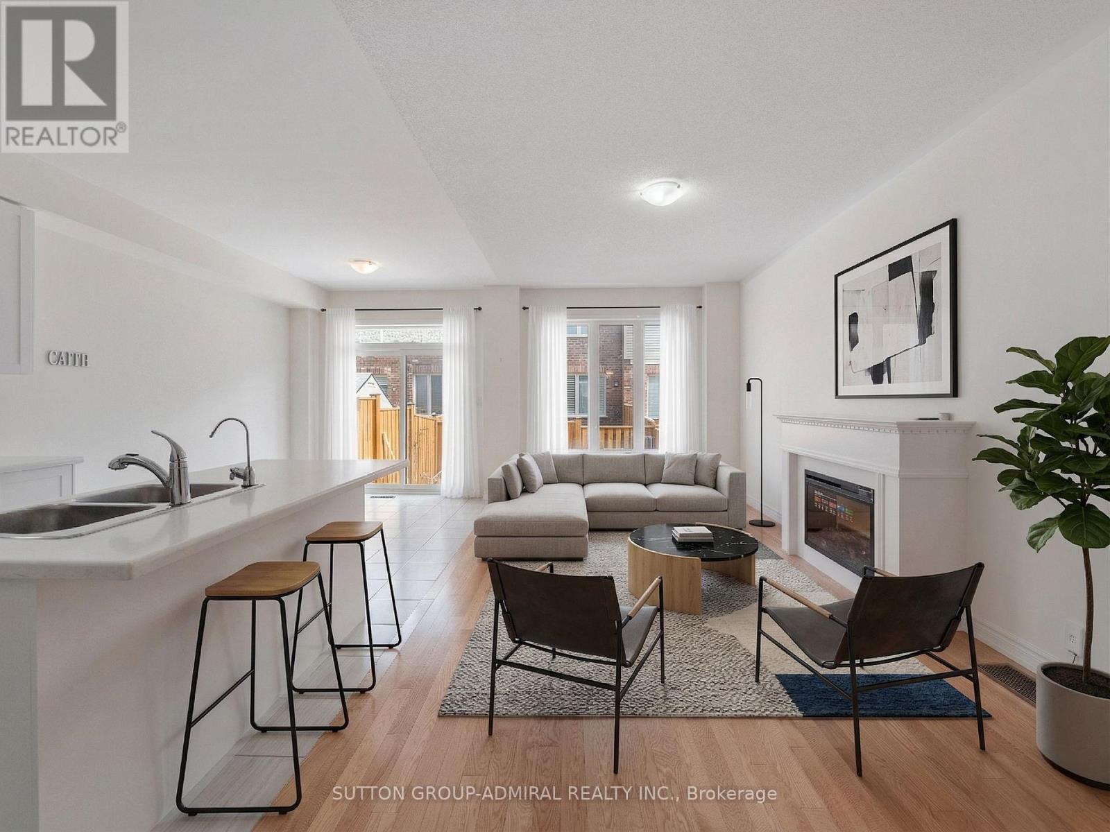 Welcome to 1152 Sepia Square, a beautifully maintained 2-storey freehold townhouse in the desirable Rural Pickering community, offering approximately 1,660 sq. ft. of thoughtfully designed living space built in 2020. This bright and functional home features a modern kitchen with stainless steel appliances, a centre island that doubles as a breakfast bar, and convenient added stairs providing direct garage access. The open-concept living and dining area is enhanced by hardwood flooring, an electric fireplace, and a walk-out to a fully fenced, private backyard-perfect for entertaining or relaxing. Upstairs, the spacious primary bedroom boasts a walk-in closet and a luxurious 5-piece ensuite complete with a double sink vanity, while two additional bedrooms offer ample space for family living. The unfinished basement presents endless development potential for a recreation area, home office, or in-law suite. Ideally located near scenic outdoor destinations such as West Duffins Creek Lookout, Dixie Cliffs Lookout, Riveted Bridge, and the Seaton Trail, as well as golf courses including Whitevale Golf Club and Pickering Golf Club. Families will appreciate proximity to reputable schools like Ronald-Marion French Immersion, Valley Farm Public School, Pine Ridge Secondary School, Maple Ridge Public School, and St. Isaac Jogues Catholic School. Convenient access to Highways 407 and 401 ensures seamless commuting, making this home an exceptional opportunity for both families and investors alike. *Listing Contains Virtually Staged Photos* (id:64974)