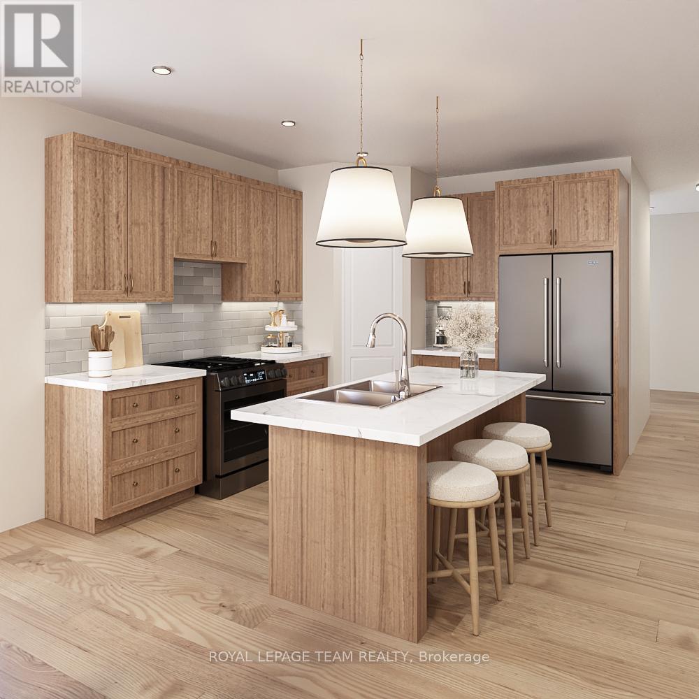 OPEN HOUSE Saturday & Sunday March 14th & 15th from 2-4pm. Welcome to Stirling Meadows! Talos has now started construction in Brockville's newest community. This model the "Jubilee" a Single Family Bungalow features a full Brick Front, exterior pot lights and an oversized garage with a 12' wide insulated door. Main floor has an open concept floorplan. 9' smooth ceilings throughout. Spacious Laurysen Kitchen with under cabinet lighting, crown molding, backsplash, pot lights and quartz countertops & a walk in corner pantry for added convenience. 4 stainless appliances included. Open dining/living with an electric fireplace. Patio door leads off living area to a covered rear porch. Large Primary bedroom with a spa like ensuite and WIC with built in organizer by Laurysen. Main floor laundry and 2 additional bedrooms complete this home! Hardwood and tile throughout. Lower level finished rec room as an added bonus! Central air, gas line for BBQ, rough in plumbing in bsmt for future bath, washer & dryer and Garage door opener included too! Photos are artists renderings. Measurements are approximate. Immediate occupancy available, home is complete. (id:64974)