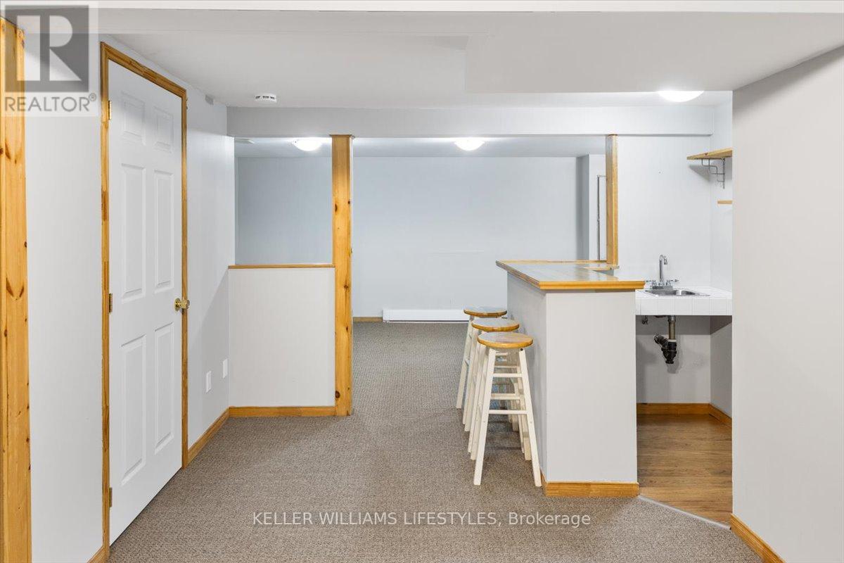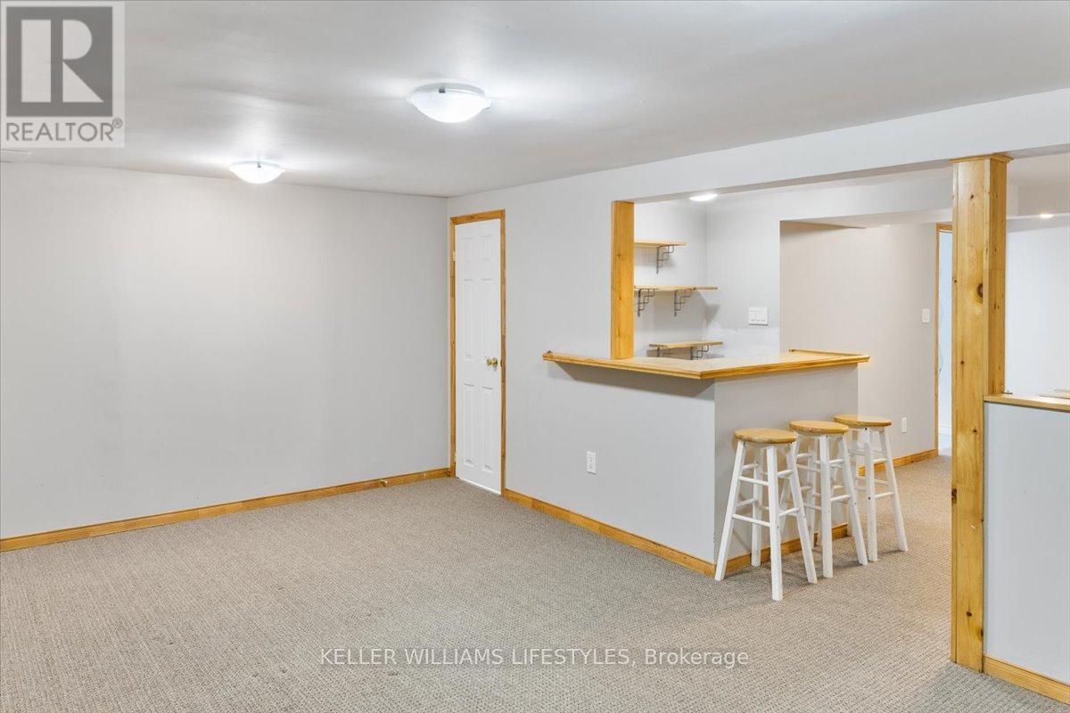 If you're looking for an updated 3 bedroom townhouse condo, this may be the one you've been waiting for. The main floor is bright and has a functional layout featuring a designated eating area perfect for entertaining or family meals. The kitchen has plenty of cabinets, counter space and 3 appliances. The living room has California shutters on patio doors leading to private deck. Upstairs you'll find 3 spacious bedrooms including double closets in the primary, and updated 4 pc bath. The finished lower level expands your living space and includes a fantastic wet bar and updated 2 pc. powder room making this the perfect spot for game night or movie marathons. This unit is located in the desirable White Oaks neighbourhood close to schools, shopping, amenities and quick access to 401. Condo fee includes water. 5 Appliances Included. (id:64974)