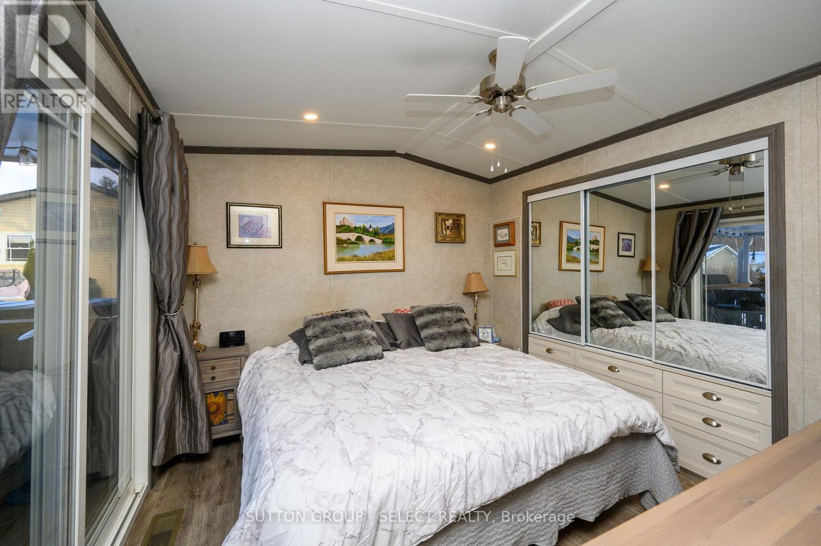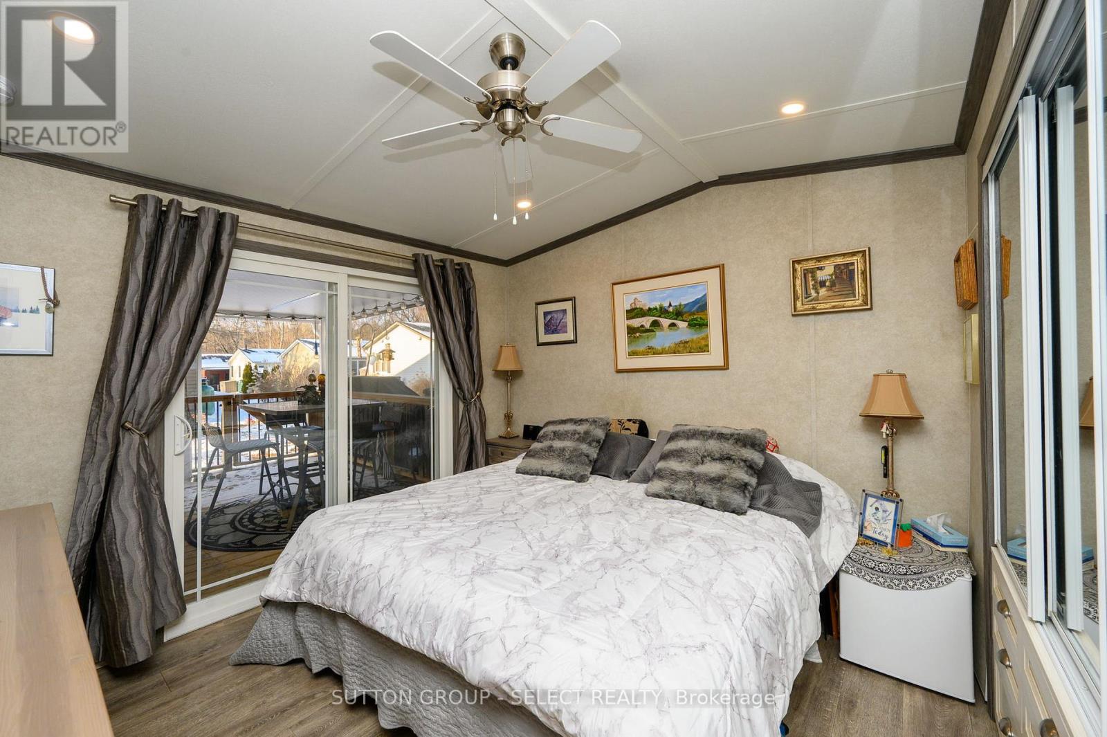 Experience the pinnacle of adult lifestyle living in this meticulously maintained 2-bedroom modular home, located within a secure, gated resort community. The interior impresses with soaring cathedral ceilings and an open-concept layout featuring durable vinyl plank flooring, a large kitchen with built-in laundry, and a custom entertainment unit with an integrated electric fireplace. The standout feature is the private, large covered deck located directly off the primary bedroom, offering a serene outdoor sanctuary for morning coffee or evening relaxation. This property is as functional as it is beautiful, boasting three storage sheds- including one equipped with electricity for hobbies and projects. Beyond your front door, you'll enjoy a vibrant social life with access to a licensed community center, swimming pool, dog park, and dedicated areas for large-scale events. Perfect for those seeking a "lock-and-leave" lifestyle, this low-maintenance home combines modern comfort with the best amenities the 55+ community has to offer. (id:64974)