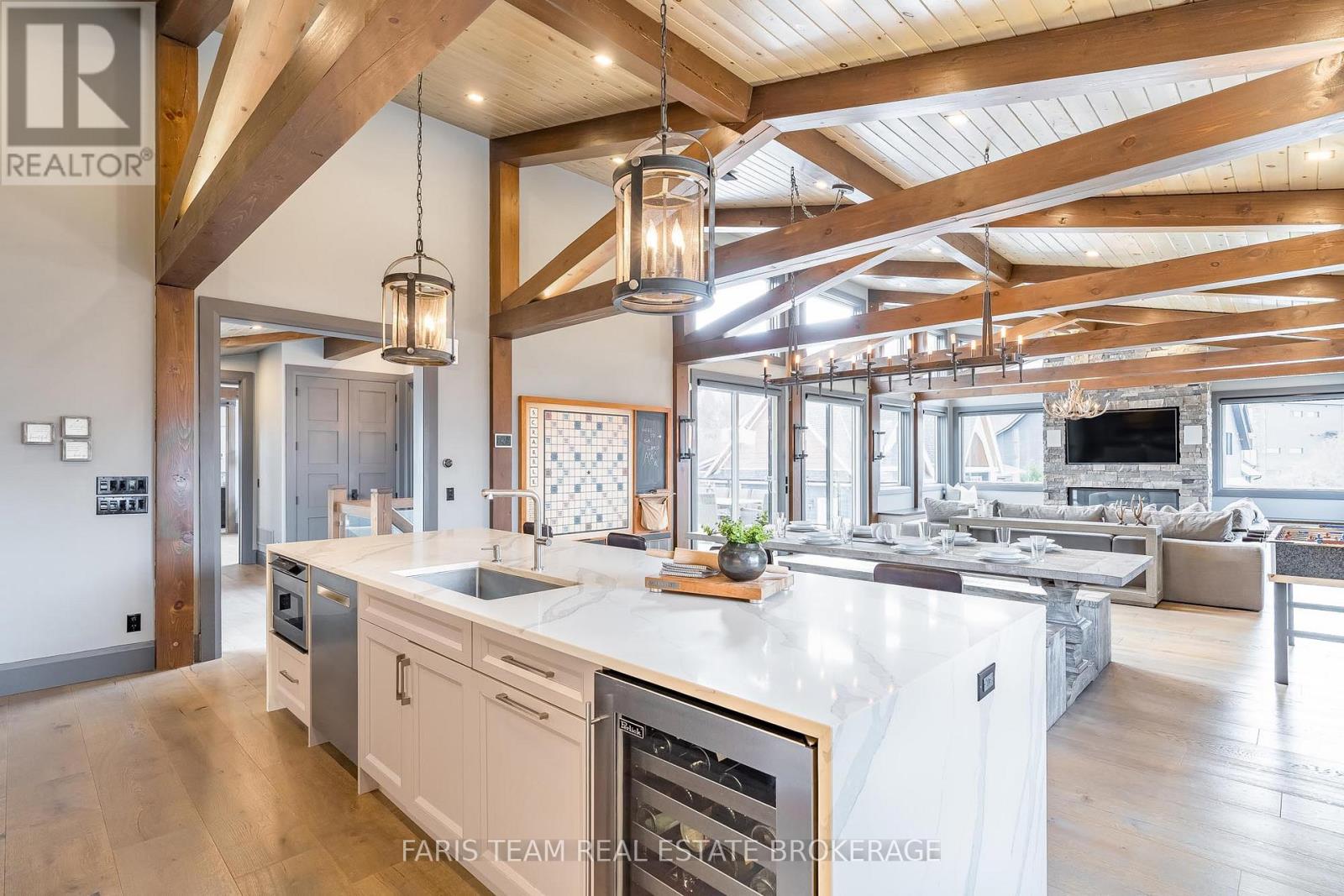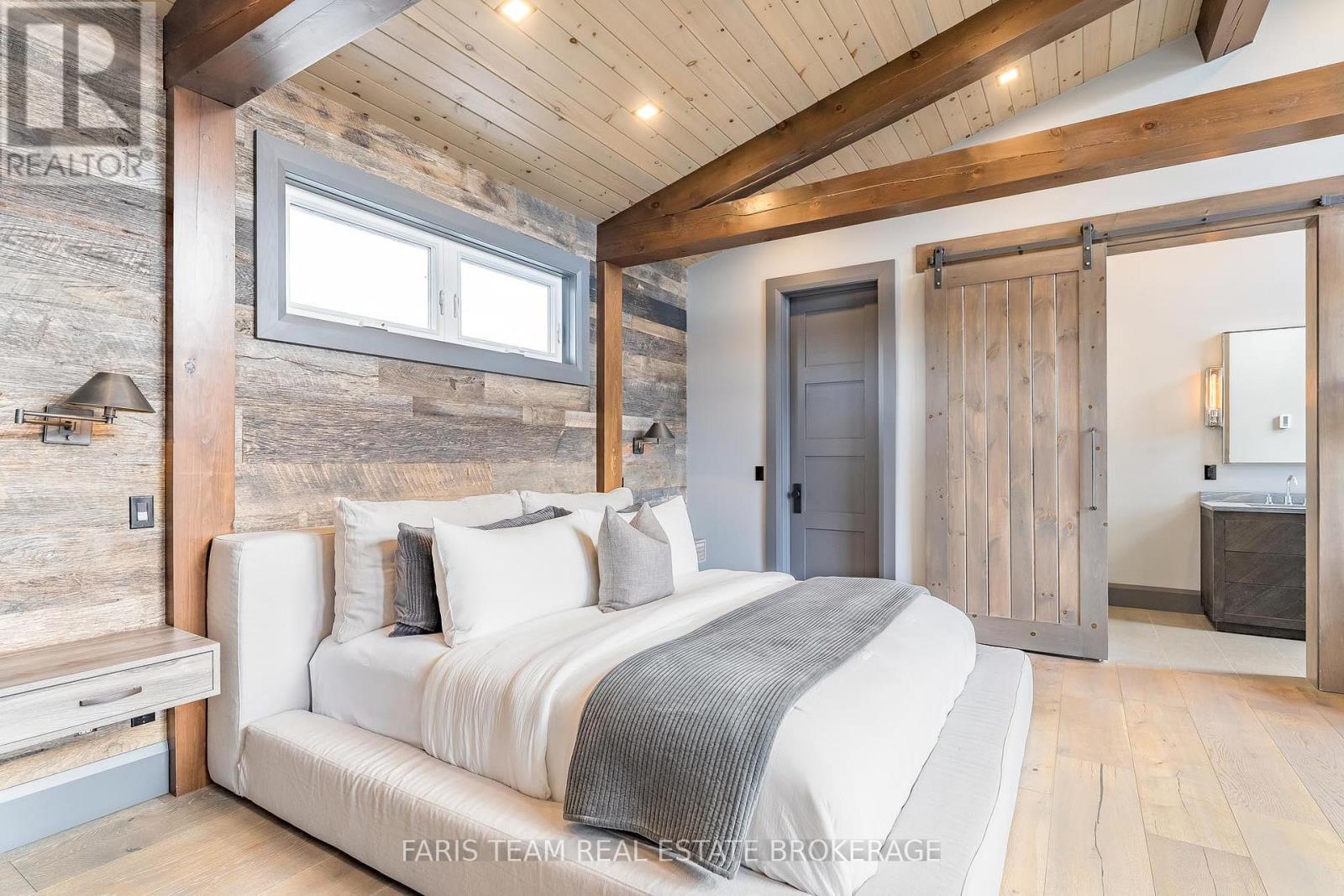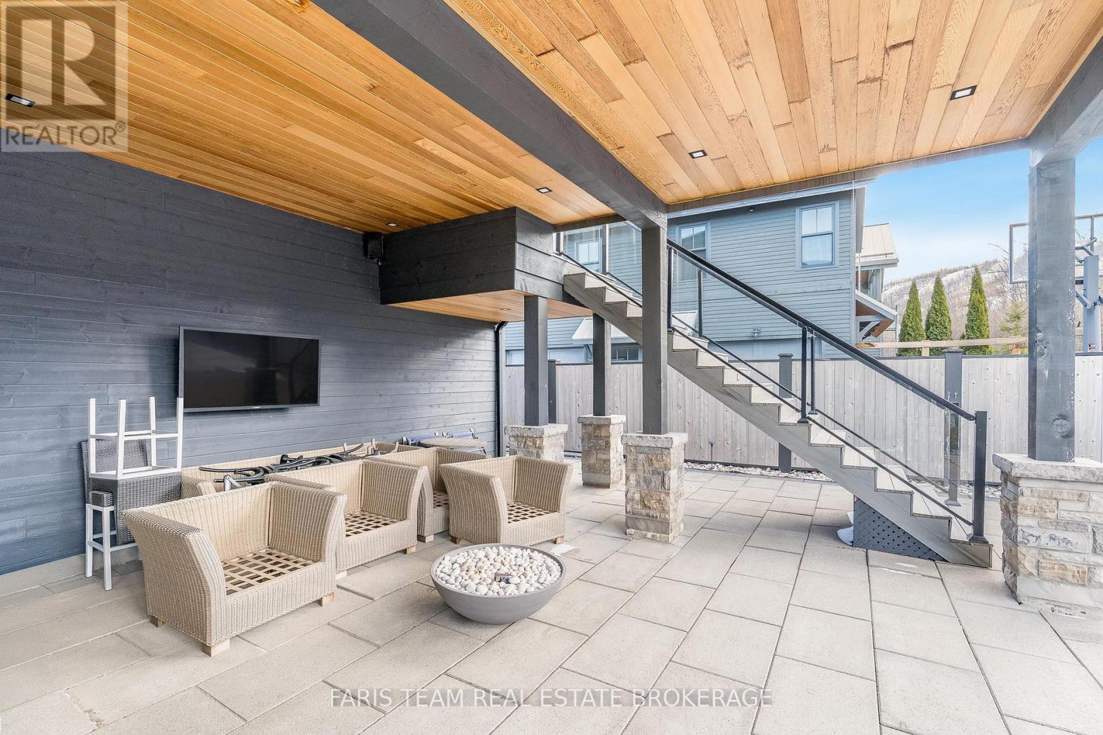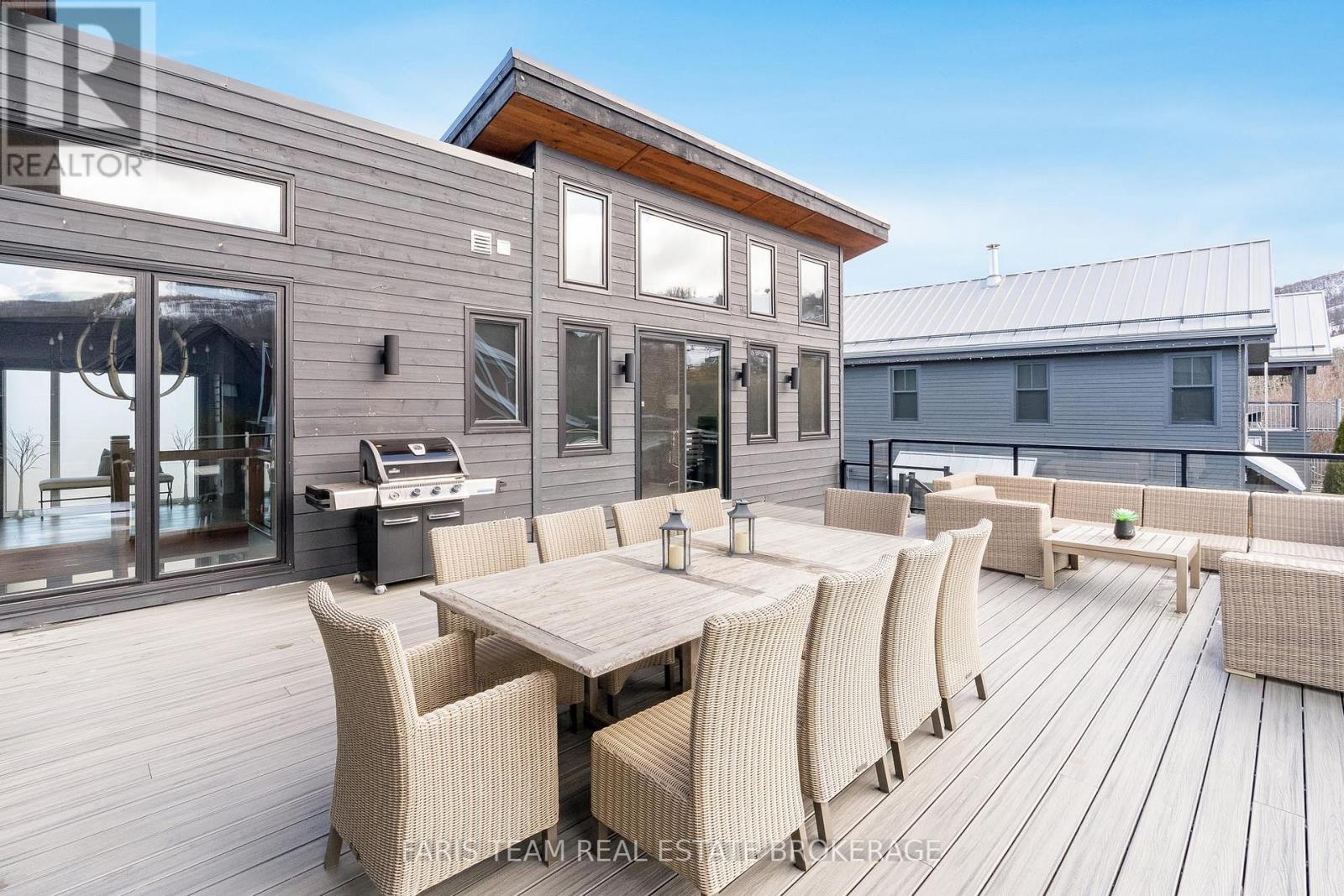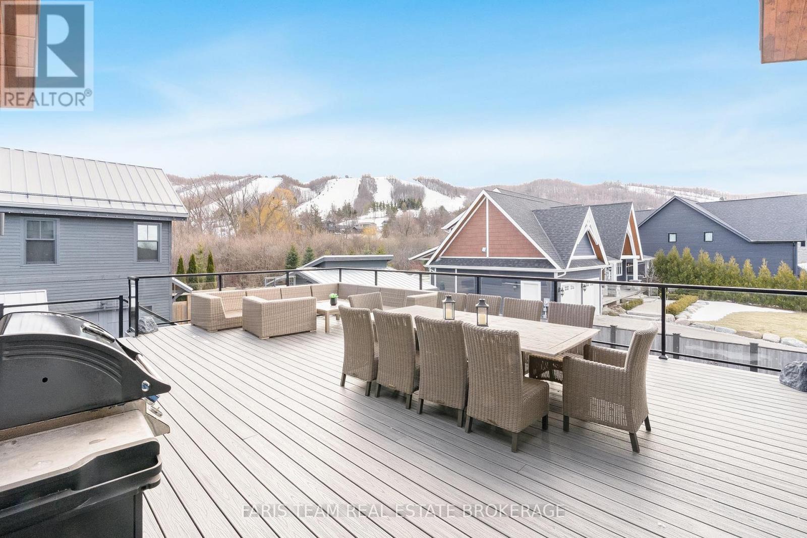 Top 5 Reasons You Will Love This Home: 1) Steps from Alpine and Craigleith Ski Clubs, this architecturally distinctive custom Nipissing Ridge chalet delivers the ultimate four-season Blue Mountain lifestyle, combining refined design, advanced smart-home technology, and resort-style outdoor living, designed with a reverse floor plan to capture ski hill views, this impressive residence offers five bedrooms and four-and-a-half bathrooms 2) Distinctive architectural details elevate the interior, including dramatic vaulted ceilings, exposed beam trusses, reclaimed wood accent walls, and a striking floor-to-ceiling stone fireplace anchoring the main living space, along with wide-plank custom hardwood floors, quartz countertops, solid wood doors and trim, televisions integrated into select showers, wall-hung toilets, and subtle in-floor lighting enhancing the refined design 3) Engineered with a level of construction detail rarely found in recreational properties, the home features a whole-home Control4 automation system providing seamless control of lighting, security, cameras, blinds, and climate, complemented by a professionally designed Dolby Atmos theatre delivering a true private cinema experience 4) Comfort and efficiency are enhanced by radiant in-floor heating in tiled areas and the garage slab, dual furnaces and air conditioning systems designed to minimize bulkheads, hot water on demand with backup tanks, and extensive sound insulation throughout the home 5) Outdoor living is equally impressive with a 37'x14' heated saltwater fibreglass pool, Bullfrog STIL hot tub, wood sauna, and covered entertainment area with natural gas fire feature and outdoor television, plus professionally landscaped grounds with irrigation and a no-maintenance steel roof complete this private four-season retreat just minutes from skiing, Georgian Bay, and Blue Mountain Village. 3,143 above grade sq.ft. plus a finished basement. (id:64974)
