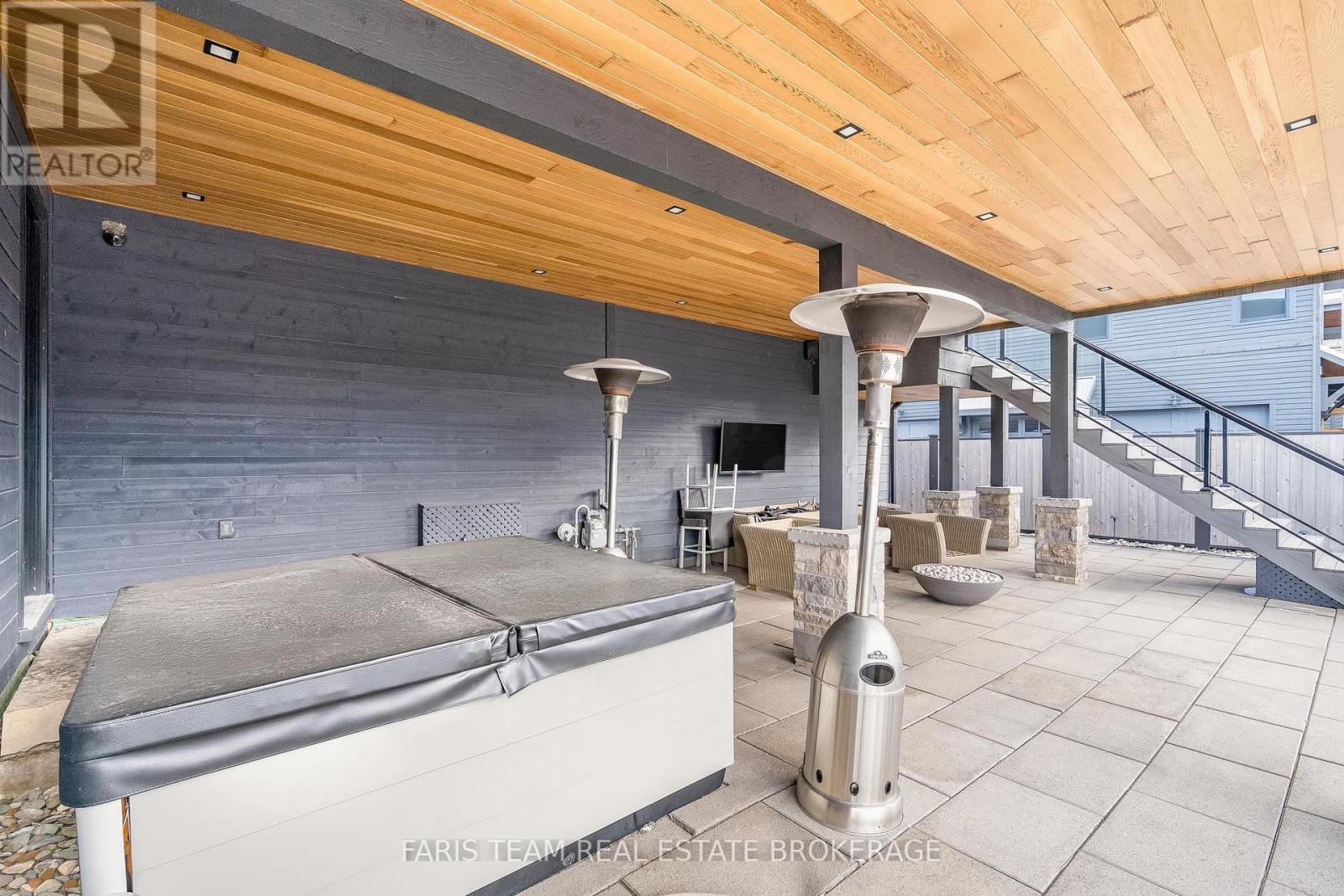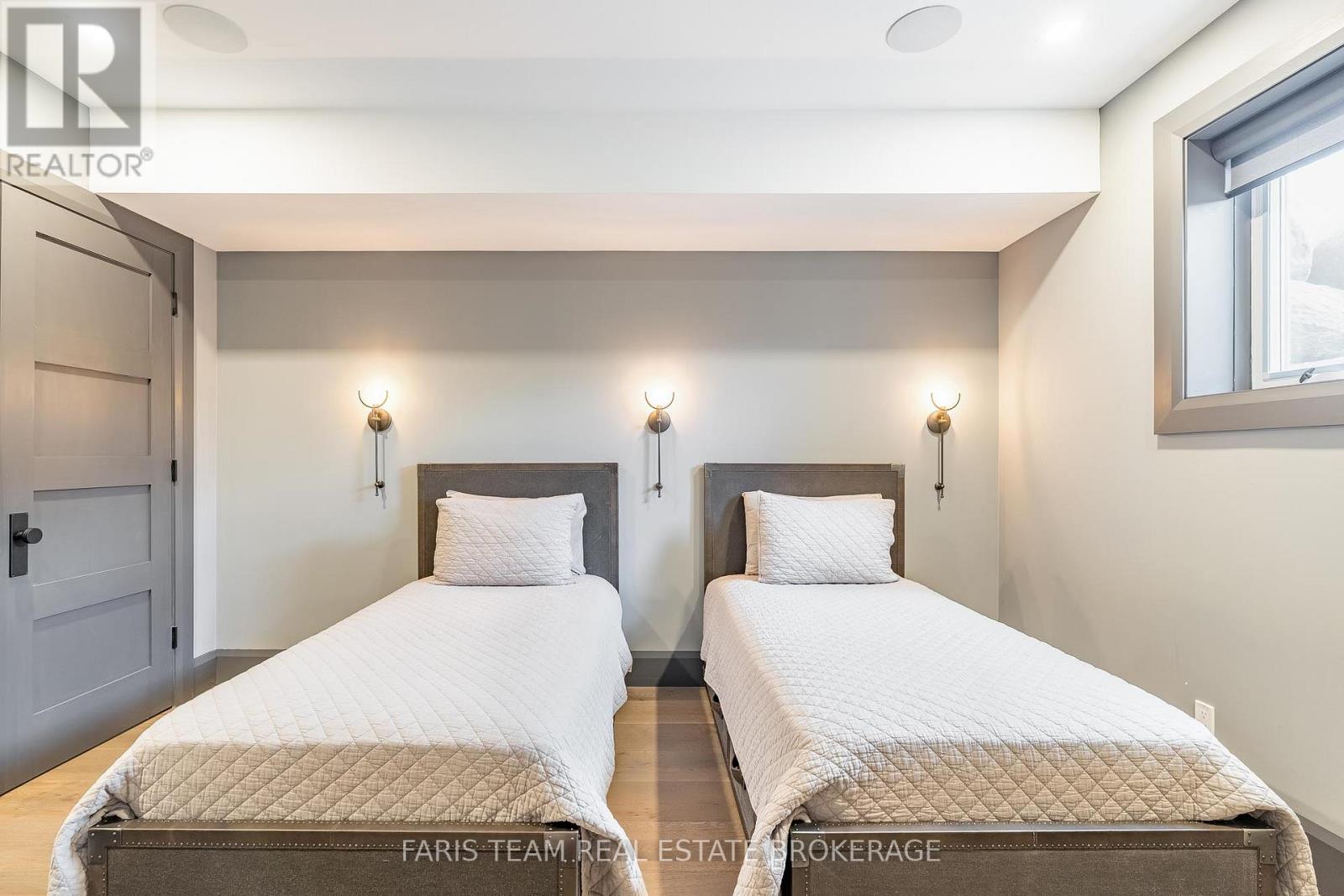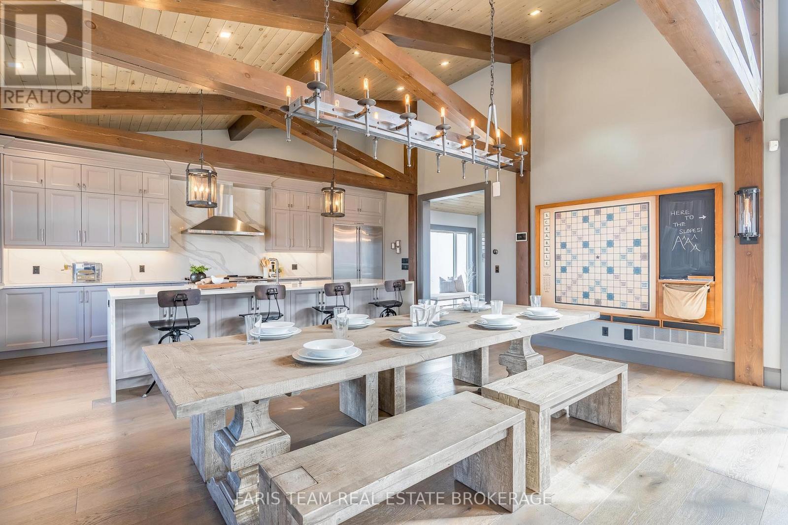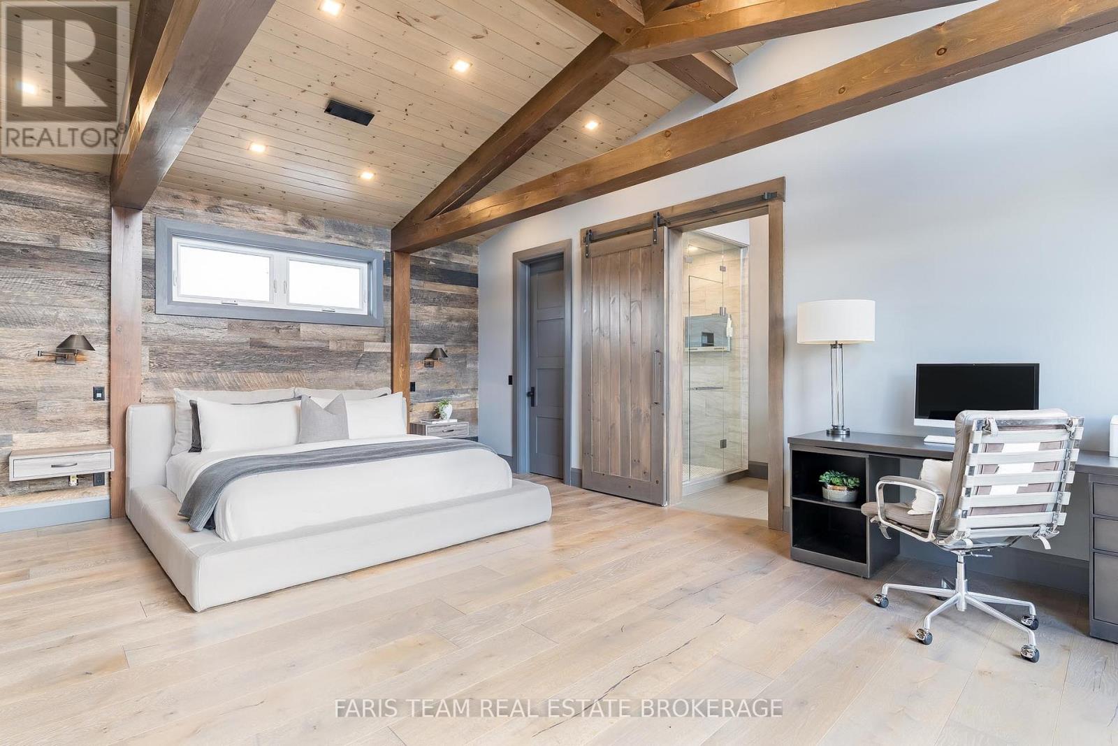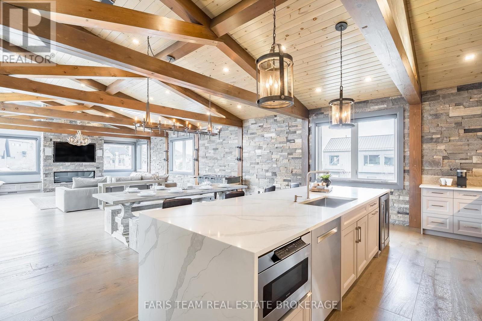 Top 5 Reasons You Will Love This Home: 1) Steps from Alpine and Craigleith Ski Clubs, this architecturally distinctive custom Nipissing Ridge chalet delivers the ultimate four-season Blue Mountain lifestyle, combining refined design, advanced smart-home technology, and resort-style outdoor living, designed with a reverse floor plan to capture ski hill views, this impressive residence offers five bedrooms and four-and-a-half bathrooms 2) Distinctive architectural details elevate the interior, including dramatic vaulted ceilings, exposed beam trusses, reclaimed wood accent walls, and a striking floor-to-ceiling stone fireplace anchoring the main living space, along with wide-plank custom hardwood floors, quartz countertops, solid wood doors and trim, televisions integrated into select showers, wall-hung toilets, and subtle in-floor lighting enhancing the refined design 3) Engineered with a level of construction detail rarely found in recreational properties, the home features a whole-home Control4 automation system providing seamless control of lighting, security, cameras, blinds, and climate, complemented by a professionally designed Dolby Atmos theatre delivering a true private cinema experience 4) Comfort and efficiency are enhanced by radiant in-floor heating in tiled areas and the garage slab, dual furnaces and air conditioning systems designed to minimize bulkheads, hot water on demand with backup tanks, and extensive sound insulation throughout the home 5) Outdoor living is equally impressive with a 37'x14' heated saltwater fibreglass pool, Bullfrog STIL hot tub, wood sauna, and covered entertainment area with natural gas fire feature and outdoor television, plus professionally landscaped grounds with irrigation and a no-maintenance steel roof complete this private four-season retreat just minutes from skiing, Georgian Bay, and Blue Mountain Village. 3,143 above grade sq.ft. plus a finished basement. (id:64974)