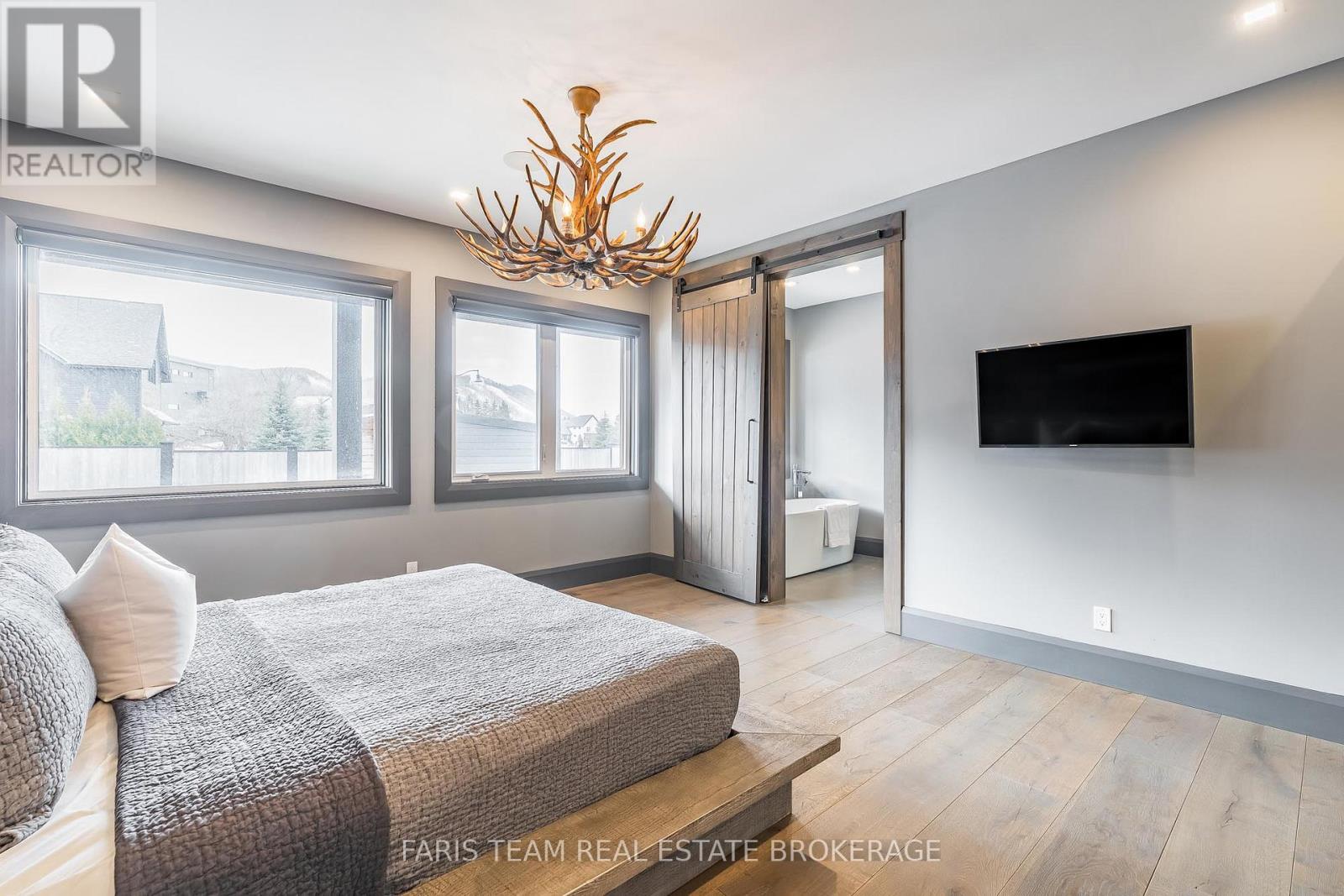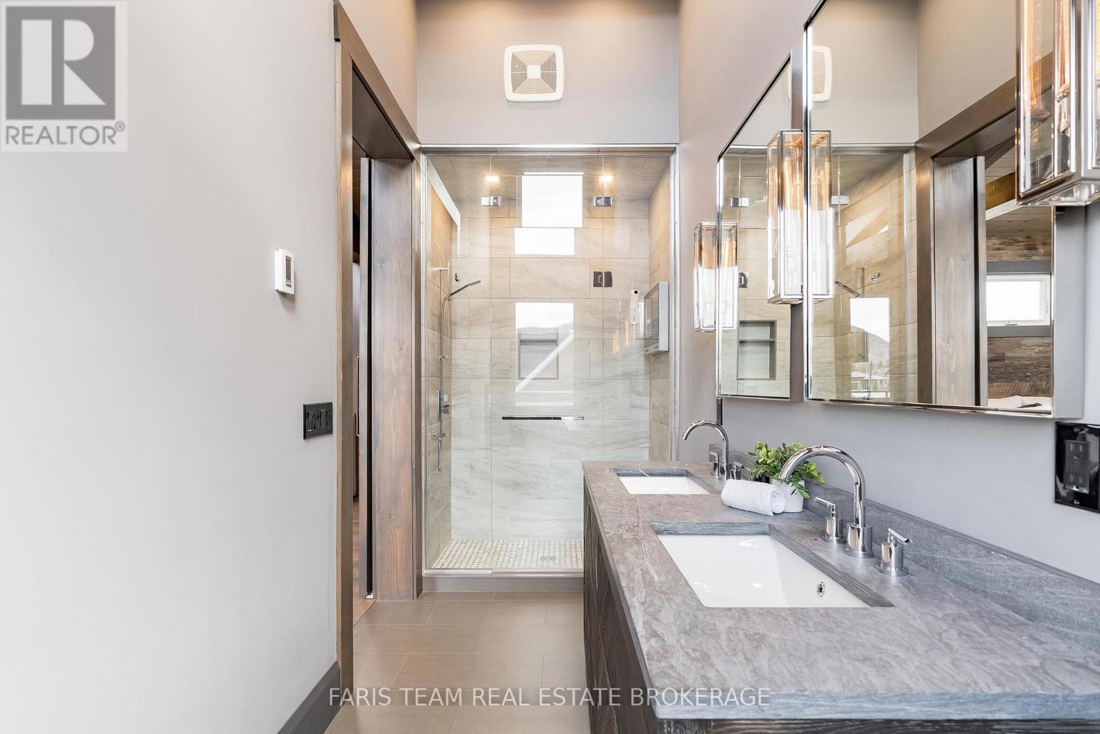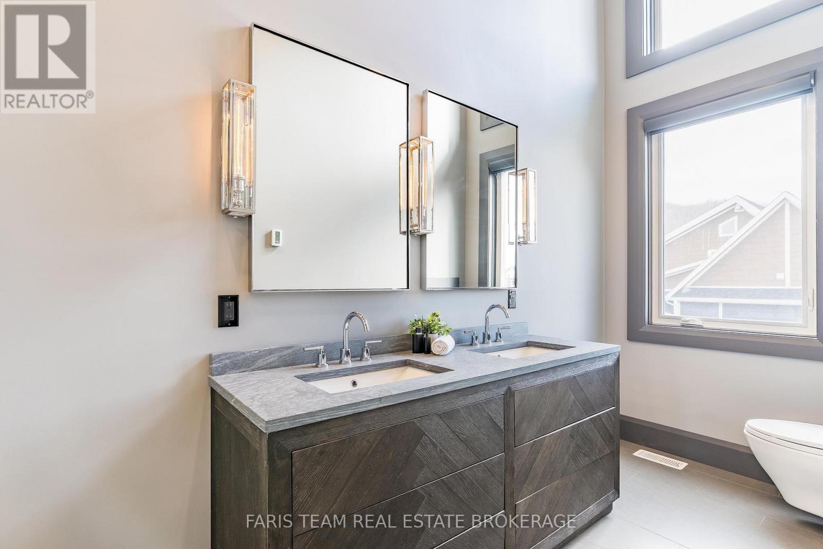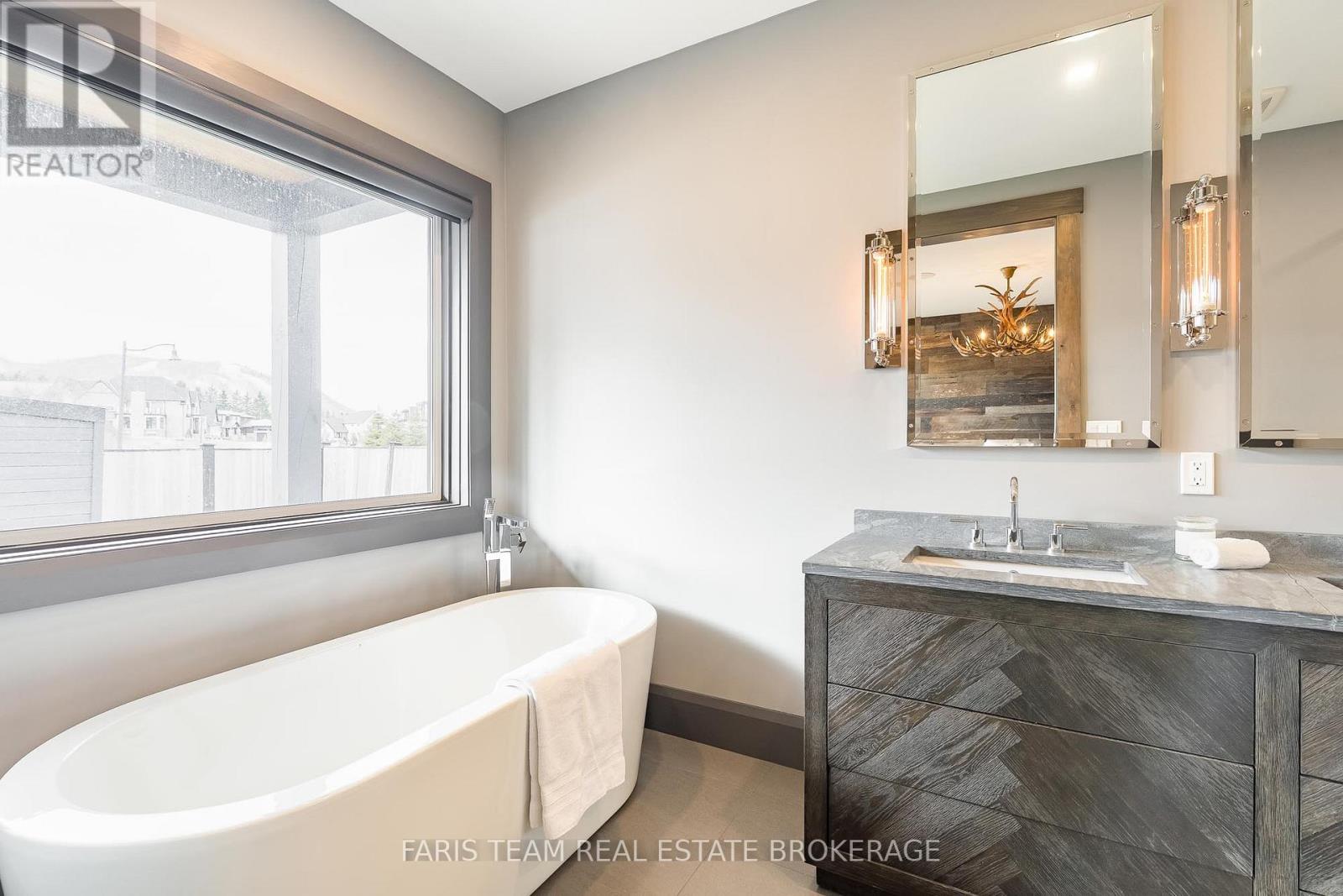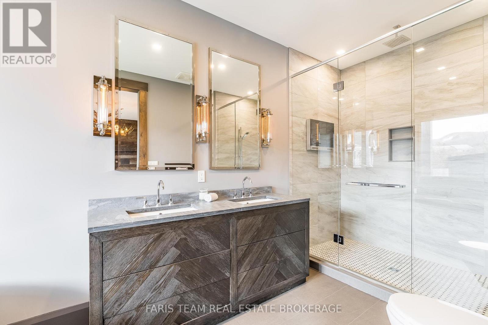 Top 5 Reasons You Will Love This Home: 1) Steps from Alpine and Craigleith Ski Clubs, this architecturally distinctive custom Nipissing Ridge chalet delivers the ultimate four-season Blue Mountain lifestyle, combining refined design, advanced smart-home technology, and resort-style outdoor living, designed with a reverse floor plan to capture ski hill views, this impressive residence offers five bedrooms and four-and-a-half bathrooms 2) Distinctive architectural details elevate the interior, including dramatic vaulted ceilings, exposed beam trusses, reclaimed wood accent walls, and a striking floor-to-ceiling stone fireplace anchoring the main living space, along with wide-plank custom hardwood floors, quartz countertops, solid wood doors and trim, televisions integrated into select showers, wall-hung toilets, and subtle in-floor lighting enhancing the refined design 3) Engineered with a level of construction detail rarely found in recreational properties, the home features a whole-home Control4 automation system providing seamless control of lighting, security, cameras, blinds, and climate, complemented by a professionally designed Dolby Atmos theatre delivering a true private cinema experience 4) Comfort and efficiency are enhanced by radiant in-floor heating in tiled areas and the garage slab, dual furnaces and air conditioning systems designed to minimize bulkheads, hot water on demand with backup tanks, and extensive sound insulation throughout the home 5) Outdoor living is equally impressive with a 37'x14' heated saltwater fibreglass pool, Bullfrog STIL hot tub, wood sauna, and covered entertainment area with natural gas fire feature and outdoor television, plus professionally landscaped grounds with irrigation and a no-maintenance steel roof complete this private four-season retreat just minutes from skiing, Georgian Bay, and Blue Mountain Village. 3,143 above grade sq.ft. plus a finished basement. (id:64974)