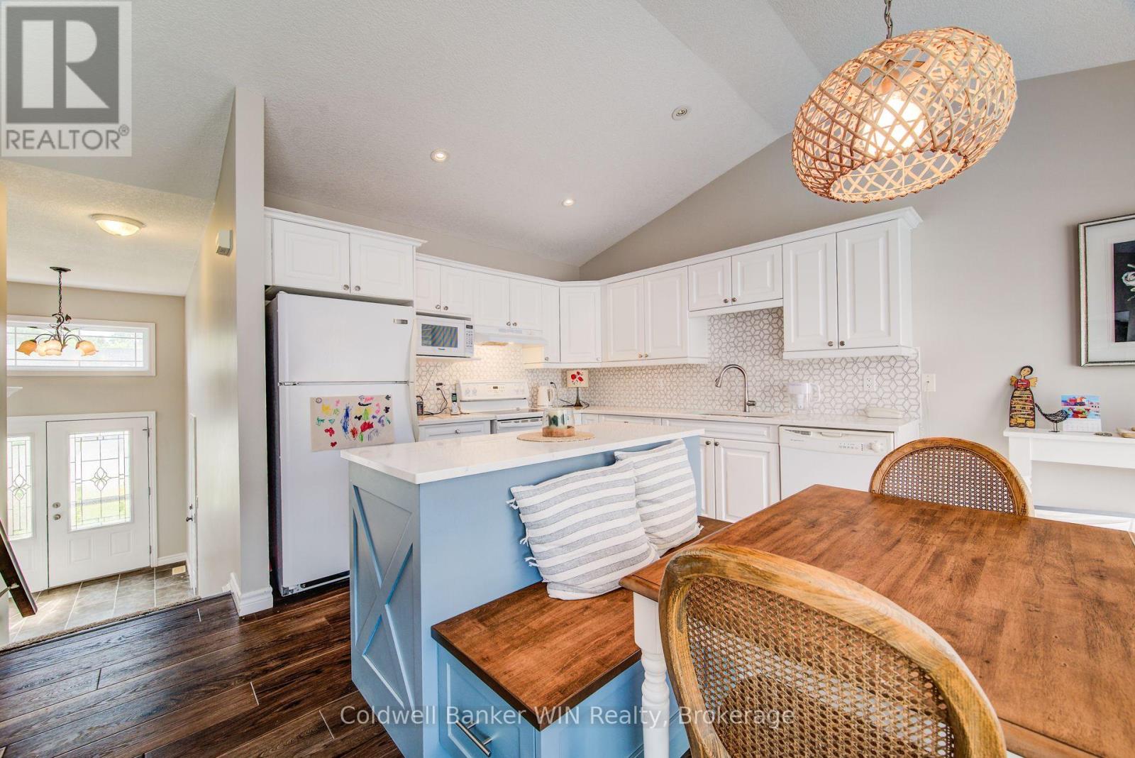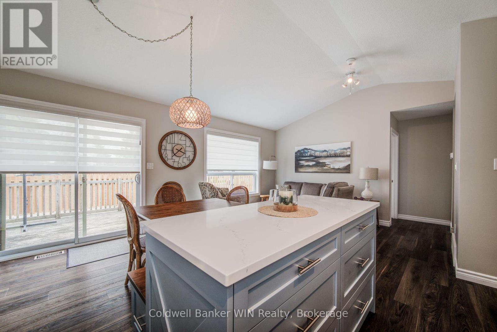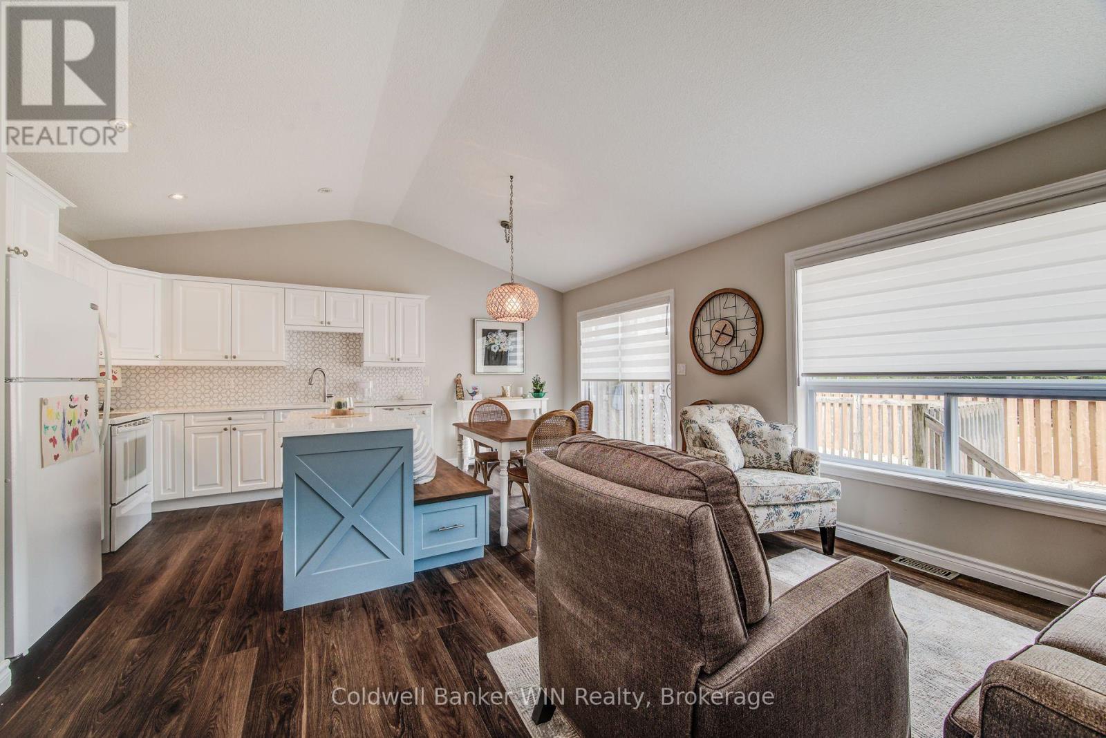 This impeccably maintained 2 + 1 bedroom beauty enjoys a great location close to downtown shopping, schools, park, sports fields, playground & splash pad. Enter through the large welcoming foyer with a cathedral ceiling into the main level with a carpet free, open concept layout and vaulted ceilings. The laundry is conveniently located on this level as well. The center island adds extra counter space for food preparation or as a serving area. Walkout from the dining area on the deck overlooking the fenced rear yard, newly poured concrete patio and newly seeded lawn. The lower level is a great overflow area with the 3rd bedroom, recreation room and 3 pc washroom for guests or family alike. (id:64974)