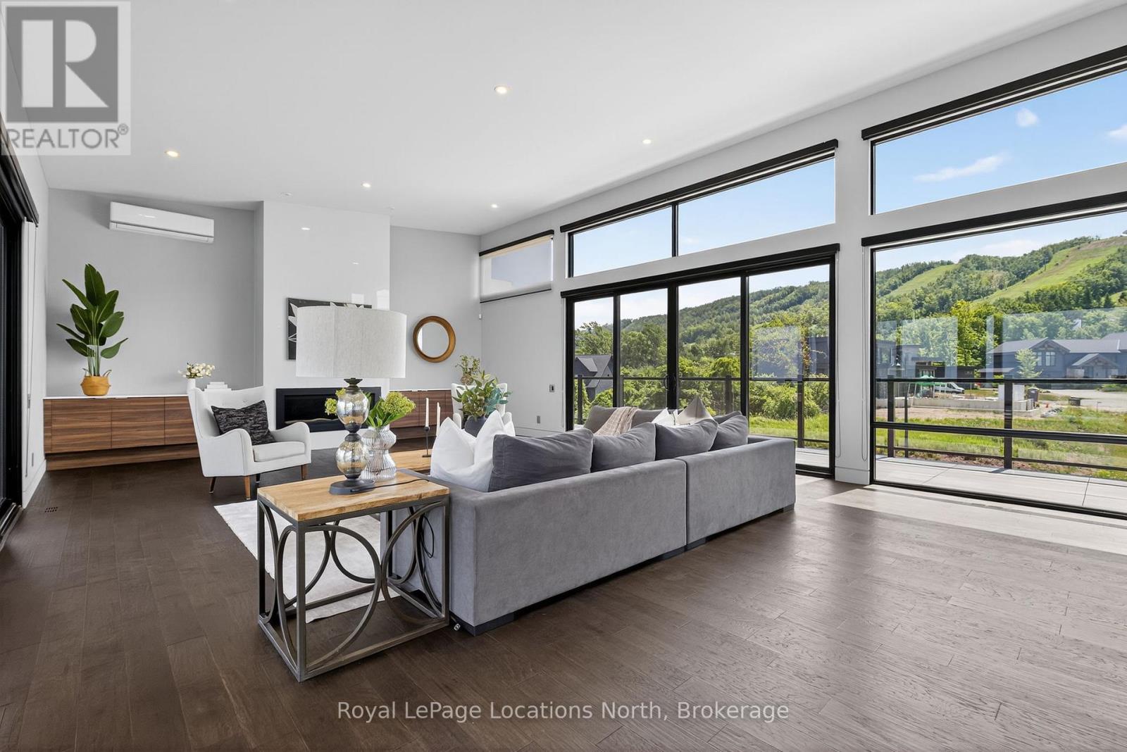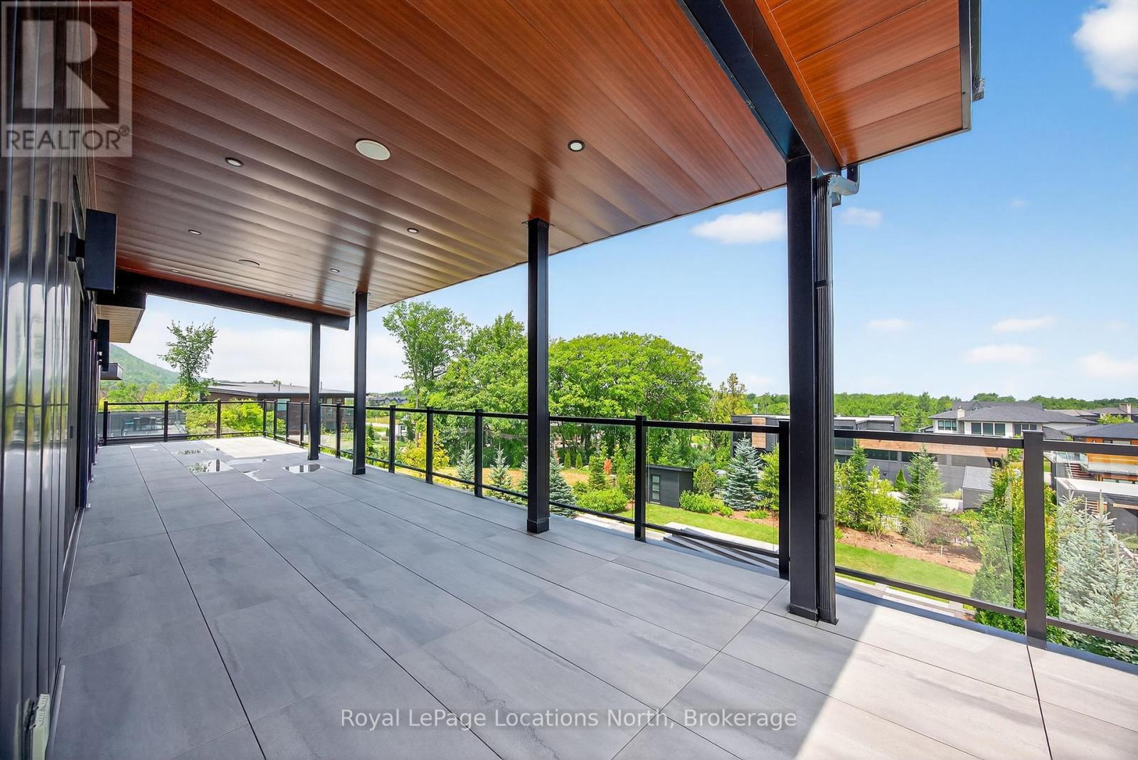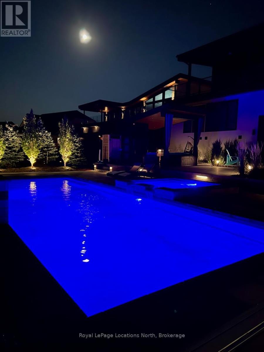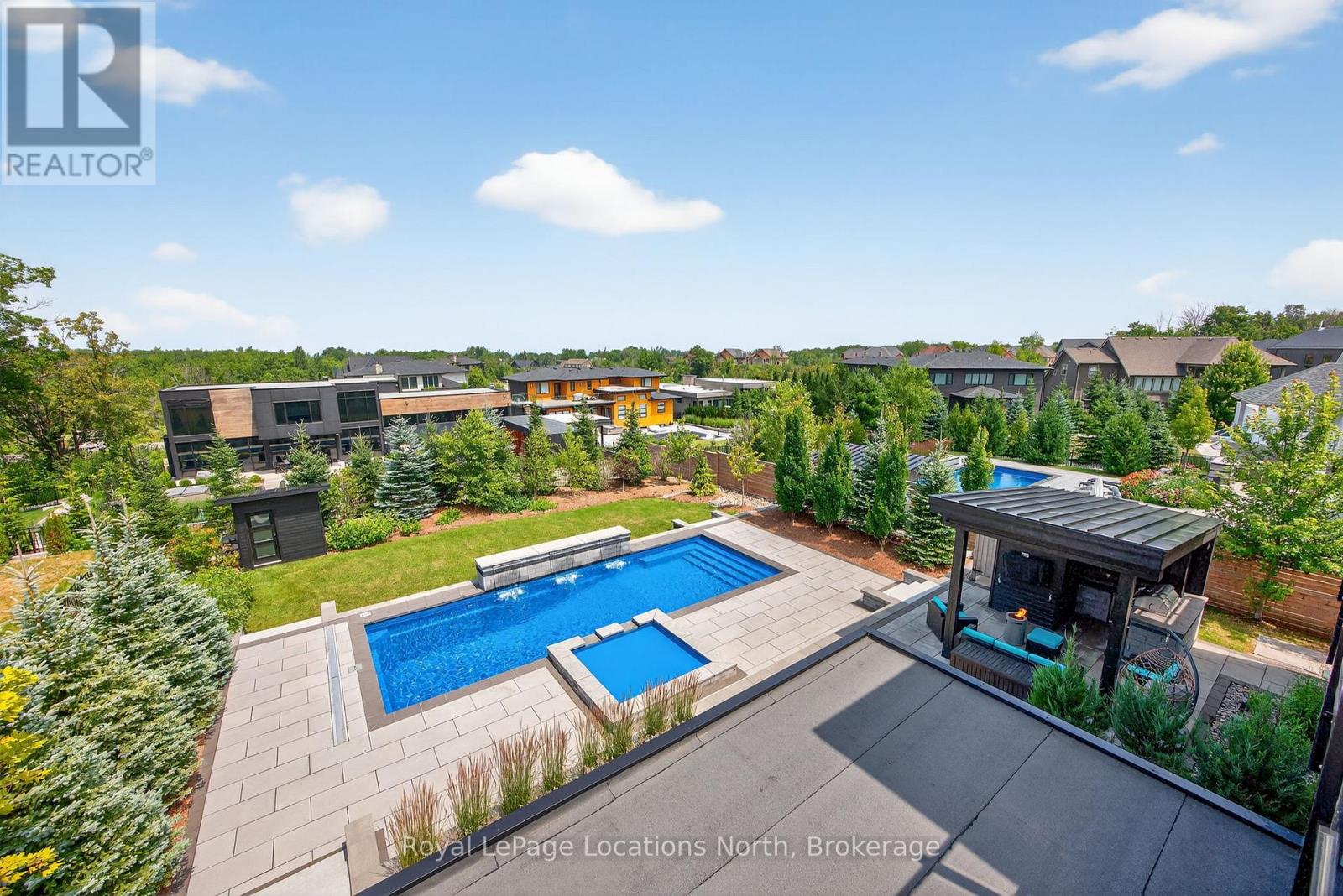 Discover the epitome of luxury living at this exquisite 5-bedroom, 3.5-bath custom-built home in Nipissing Ridge III, Blue Mountains. Boasting approximately 3,800 sq. ft. of sophisticated living space, this property offers unparalleled panoramic views of the Escarpment, ski hills, and Georgian Bay. Experience seamless indoor-outdoor living with over 1,200 sq. ft. of outdoor porcelain tile terraces, indoor and outdoor speakers, a classic cabana featuring an outdoor kitchen, and a stunning saltwater pool with a waterfall. The gourmet kitchen, featuring high-end appliances and an expansive island, is perfectly positioned to capture magnificent views. The main floor has a majestic foyer and has three bedrooms and two bathrooms. The primary bedroom overlooks the beautifully landscaped backyard and pool. It has a spa inspired 4 pce ensuite and a large walk in closet. The two additional bedrooms are spacious, with views of the ski hills, and share a 5-piece bathroom. The lower level offers in-floor heating, a spacious mudroom, two guest bedrooms, a three-piece bathroom, and a family room with a wet bar and walkout. Other features are a spacious 2.5 car garage with direct access to 1000sqft of heated storage, indoor and outdoor speakers throughout, top of the line heat pump and air steam humidifier, a grocery lift, a commercial grade Ubiquiti home network to keep your electronics connected and for your convenience a grocery lift connecting the mudroom to the kitchen. This sought-after location provides direct access to Craigleith/Alpine Ski Clubs and Nipissing Ridge Tennis Courts. Enjoy an active lifestyle with proximity to Blue Mountain skiing, fine dining, select shops, private ski clubs, the Georgian Trail for hiking and biking, and numerous exclusive and public golf courses. This is more than a home; it's a lifestyle between the escarpment and Georgian Bay. (id:64974)