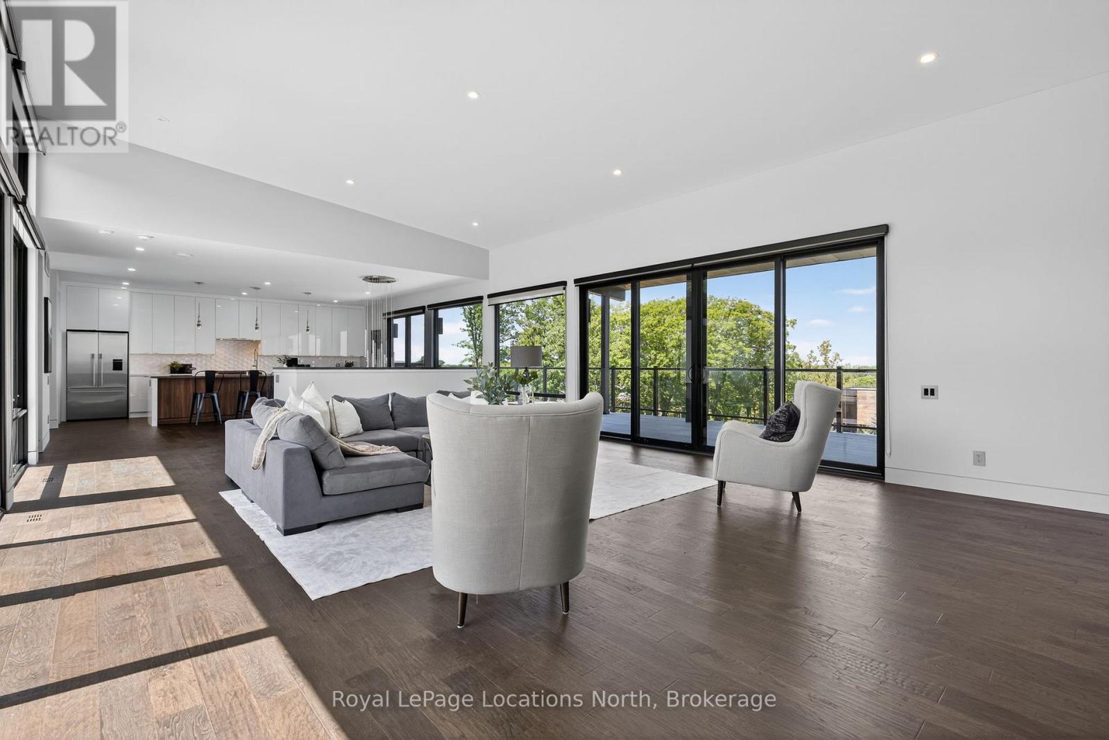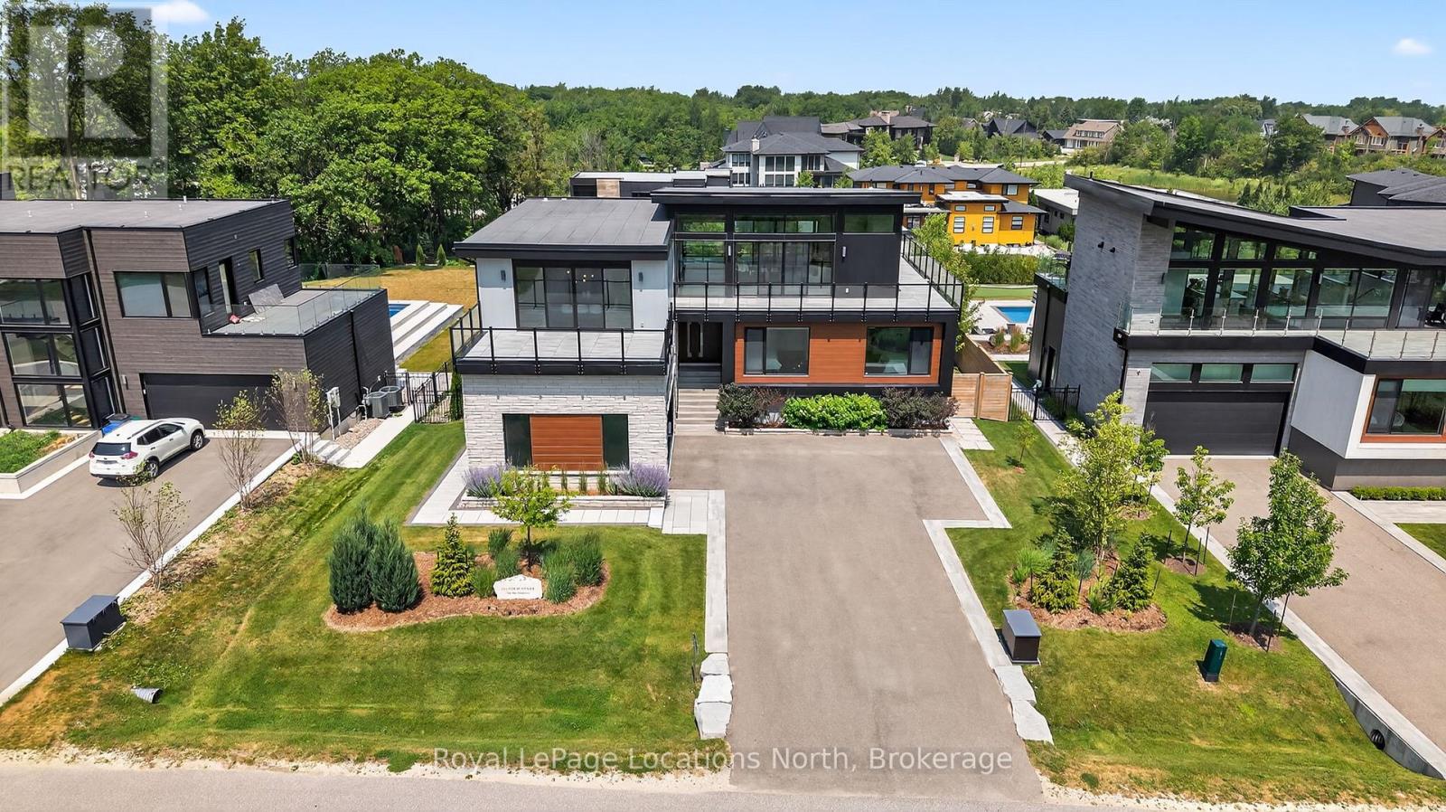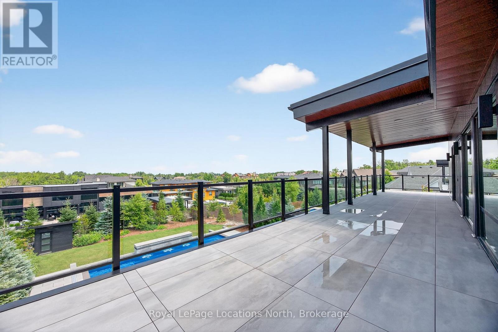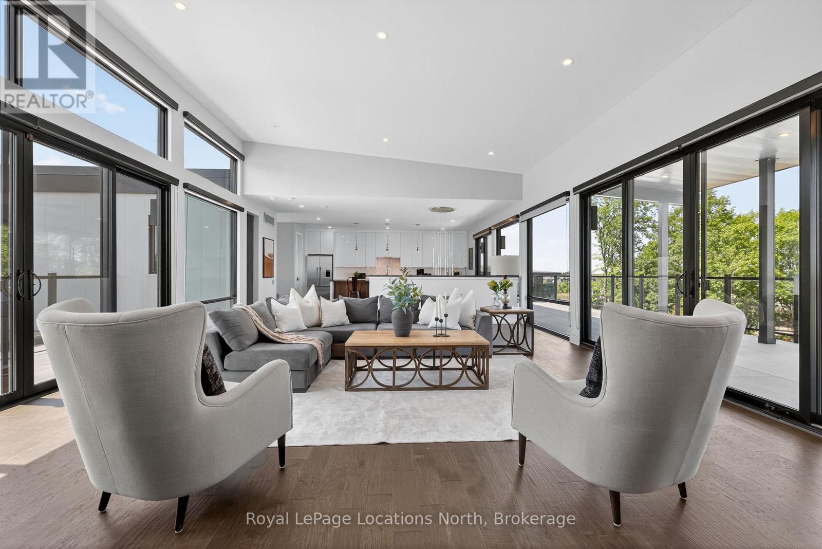 Discover the epitome of luxury living at this exquisite 5-bedroom, 3.5-bath custom-built home in Nipissing Ridge III, Blue Mountains. Boasting approximately 3,800 sq. ft. of sophisticated living space, this property offers unparalleled panoramic views of the Escarpment, ski hills, and Georgian Bay. Experience seamless indoor-outdoor living with over 1,200 sq. ft. of outdoor porcelain tile terraces, indoor and outdoor speakers, a classic cabana featuring an outdoor kitchen, and a stunning saltwater pool with a waterfall. The gourmet kitchen, featuring high-end appliances and an expansive island, is perfectly positioned to capture magnificent views. The main floor has a majestic foyer and has three bedrooms and two bathrooms. The primary bedroom overlooks the beautifully landscaped backyard and pool. It has a spa inspired 4 pce ensuite and a large walk in closet. The two additional bedrooms are spacious, with views of the ski hills, and share a 5-piece bathroom. The lower level offers in-floor heating, a spacious mudroom, two guest bedrooms, a three-piece bathroom, and a family room with a wet bar and walkout. Other features are a spacious 2.5 car garage with direct access to 1000sqft of heated storage, indoor and outdoor speakers throughout, top of the line heat pump and air steam humidifier, a grocery lift, a commercial grade Ubiquiti home network to keep your electronics connected and for your convenience a grocery lift connecting the mudroom to the kitchen. This sought-after location provides direct access to Craigleith/Alpine Ski Clubs and Nipissing Ridge Tennis Courts. Enjoy an active lifestyle with proximity to Blue Mountain skiing, fine dining, select shops, private ski clubs, the Georgian Trail for hiking and biking, and numerous exclusive and public golf courses. This is more than a home; it's a lifestyle between the escarpment and Georgian Bay. (id:64974)