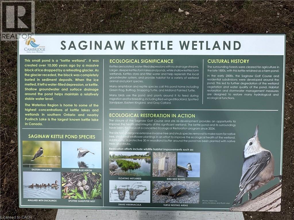 Welcome to a great opportunity in Clemens Mill-where location, lifestyle, and long-term value come together. This move-in ready 3 bedroom, 2 bath, semi detached home is finished from top to bottom. It backs directly onto the protected Saginaw Kettle Wetland. Step outside to a fully fenced backyard featuring a spacious deck- ideal for entertaining, relaxing, or watching the children and pets play safely. The Saginaw Kettle Wetland ensures backyard views are preserved forever. Enjoy incredible sunsets as the evening light reflects off the pond-your own natural retreat! Enjoy walking and running trails, snowshoeing, cross country skiing, picnics, birdwatching...all steps from your home. Buyers will appreciate the bright sun-filled kitchen and eat-in area, along with a functional layout designed for everyday living. With a single garage and additional paved parking for two vehicles, plus a walkable location close to schools, parks, shopping, and quick Highway 401 access- this home checks all the boxes. Opportunities like this-backing onto protected land in a family-friendly neighbourhood -are rare and in high demand. Don't miss your chance to secure a home that is the perfect blend of comfort, convenience, and nature. 116 Essex Point Drive in Cambridge is an exceptional opportunity for families, first home buyers, or investors. (id:64974)