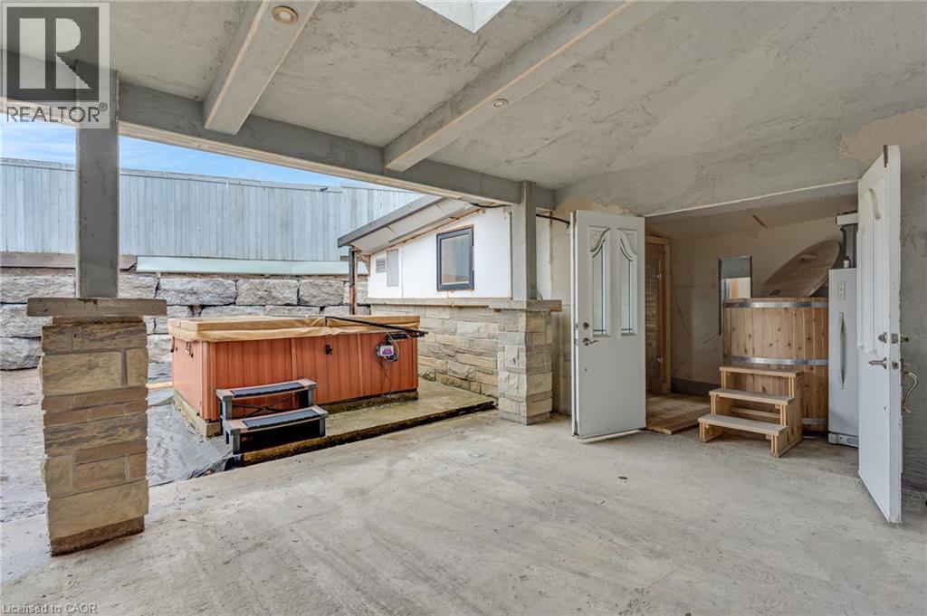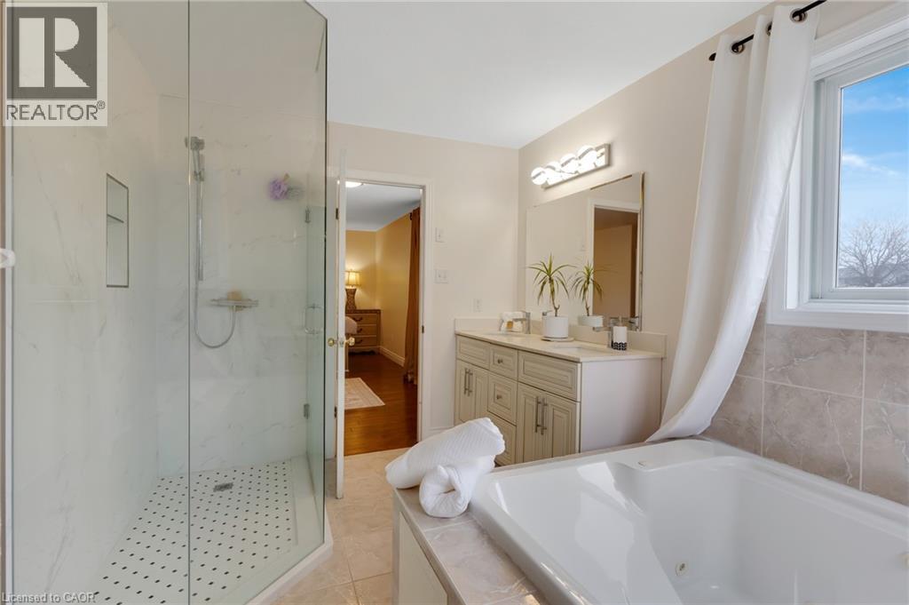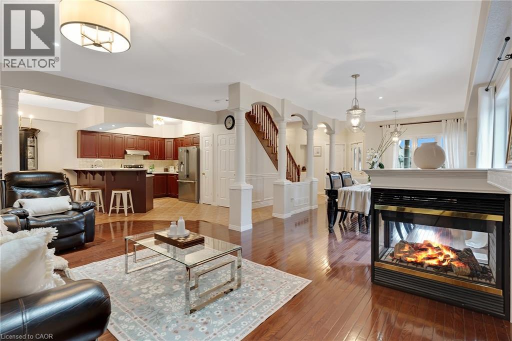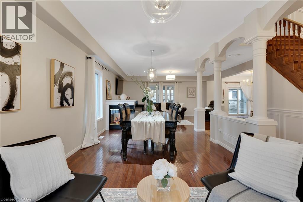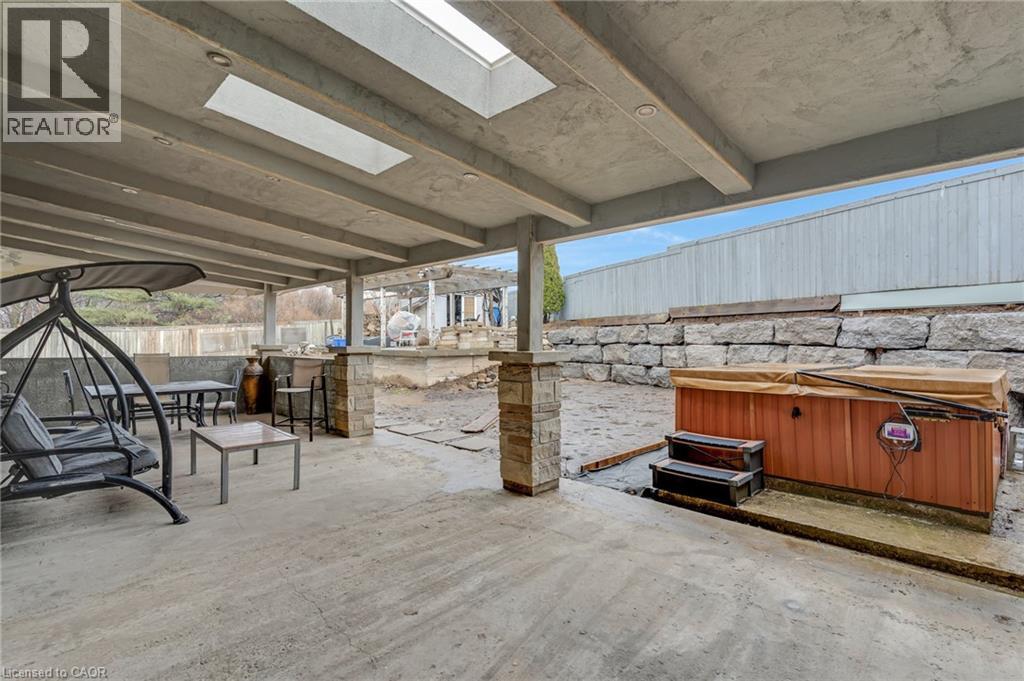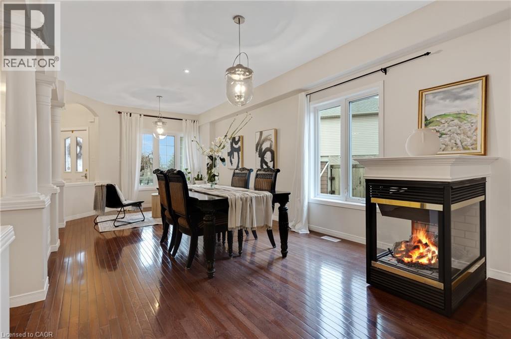 Beautiful & spacious 4-bed, 4-bath home with a 2-car garage, situated on a premium lot in the Industrial Park/Eastview area of Cambridge. No immediate side or rear neighbours & rare vehicle access to the backyard. This property offers privacy & plenty of space for those needing room for equipment, trailers, or recreational vehicles. The main floor features 9-foot ceilings, an open-concept layout, & large windows that fill the home with natural light. There is a formal dining area, a living room with a gas fireplace, an eat-in kitchen with island, ample cupboard space, new countertops, & a sliding door leading to a covered backyard patio. Hardwood flooring runs through the dining & living areas. The main floor also includes an office & a powder room. Upstairs, hardwood flooring continues through the hallway & the 3 bedrooms. The primary bedroom is generously sized & has a large walk-in closet & a 5-piece ensuite. 2 additional bedrooms share a 5-piece main bathroom, & the laundry room is conveniently located on this level as well. The finished basement adds a 4th bedroom, a 4-piece bathroom, & a huge open recreation room with high ceilings & a gas fireplace. It also has in-law potential with plenty of outdoor space to add a separate entrance. There is also a utility room & a large cold cellar for additional storage. Outside, the fully fenced, private backyard offers vehicle access & includes multiple storage sheds, a hot tub, a grape-covered pergola, a sauna, & a fully covered porch. Plenty of space to host gatherings, backyard cookouts, or simply relax outdoors. The home is close to schools, parks, & local amenities with easy access to trails, nearby conservation areas, like Shade’s Mills, & community recreation facilities. Shopping, grocery stores, & restaurants are only minutes away, & commuters will appreciate the convenient access to Highway 401. Don't miss out on this amazing opportunity & book your showing today! (id:64974)