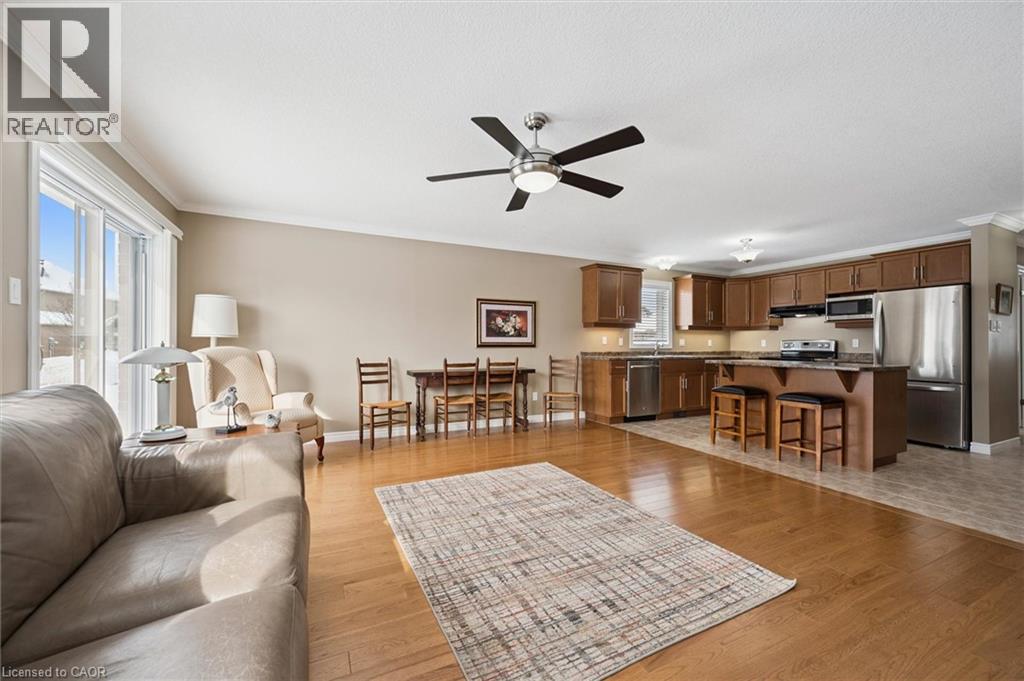 Welcome to this impeccably maintained freehold townhome bungalow in sought-after Elora location! Enjoy easy main-floor living with 2 spacious bedrooms and 2 full bathrooms, perfect for downsizers, first-time buyers, or those seeking a low-maintenance lifestyle. Bright and open living room space flows seamlessly to a modern kitchen with island and plenty of storage. The generous primary suite features a private ensuite and walk-in closet. Enjoy main-floor laundry, tile and hardwood floors. Move-in ready with easy access to trails, shopping, dining and all of Elora's fine amenities. Freehold ownership - no condo fees. Ideal blend of comfort, convenience, and charm - truly a must-see! (id:64974)