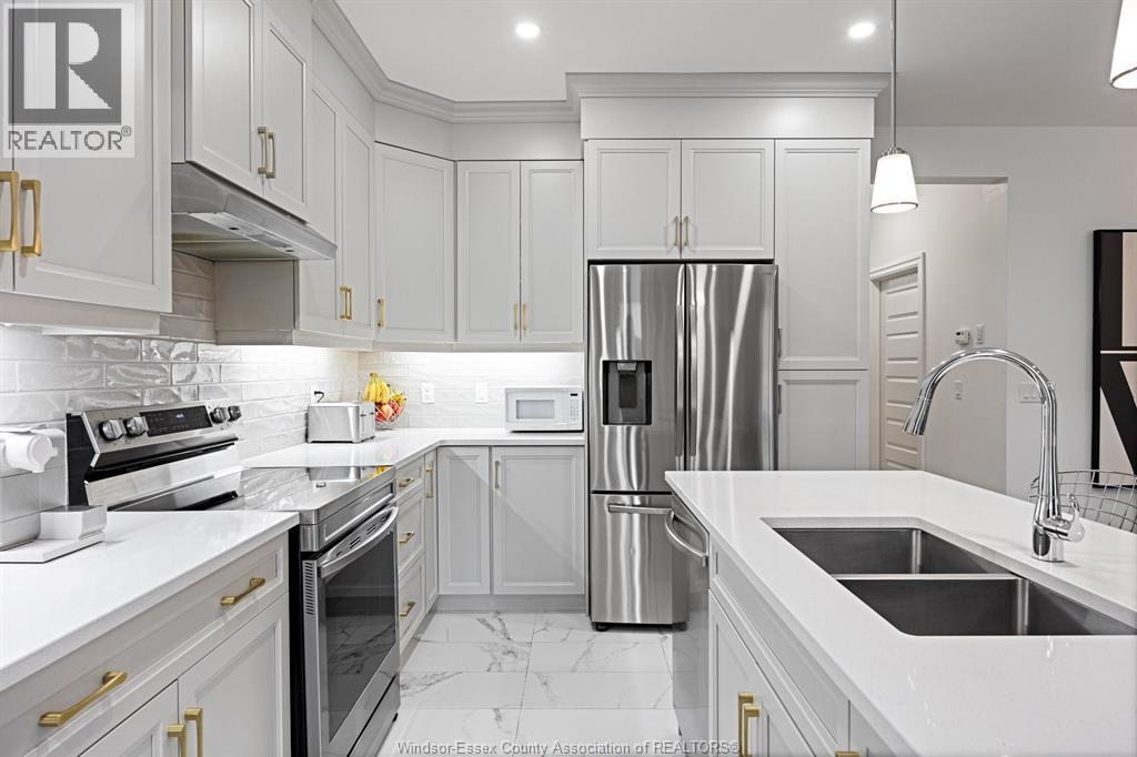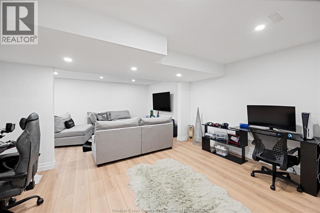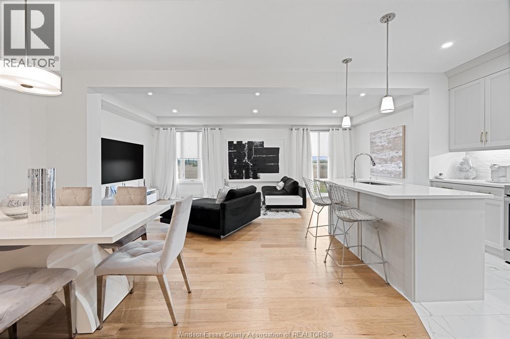 Stunning 3-yr-new 2-sty townhome in the heart of Essex Centre, perfectly situated in a family-friendly neighbourhood within walking distance to shopping, restaurants, and everyday conveniences including Home Hardware, Canadian Tire, Tim Hortons, and McDonald’s. Enjoy quick access to Highway 3 for an easy commute to Windsor or Leamington. This over 1900 sqft spacious, thoughtfully designed home is fully finished on all levels, offering exceptional function, comfort, and privacy. The main flr features 9-ft tray ceilings, hardwood flooring, and an elegant kitchen w/an island, opening to the dining and living areas. Upstairs you’ll find 3 generous bdrms, a convenient laundry rm, and a primary suite complete with walk-in closet and ensuite bath. Solid hardwood stairs enhance the home’s quality feel throughout. The finished lower lvl adds even more living space with a large family room—ideal for relaxing, workouts, or games—plus an additional bedroom or office and a 3-piece bath. An attached garage and finished driveway complete this truly move-in-ready home. A fantastic opportunity for families or anyone seeking modern living in a prime Essex location. (id:64974)