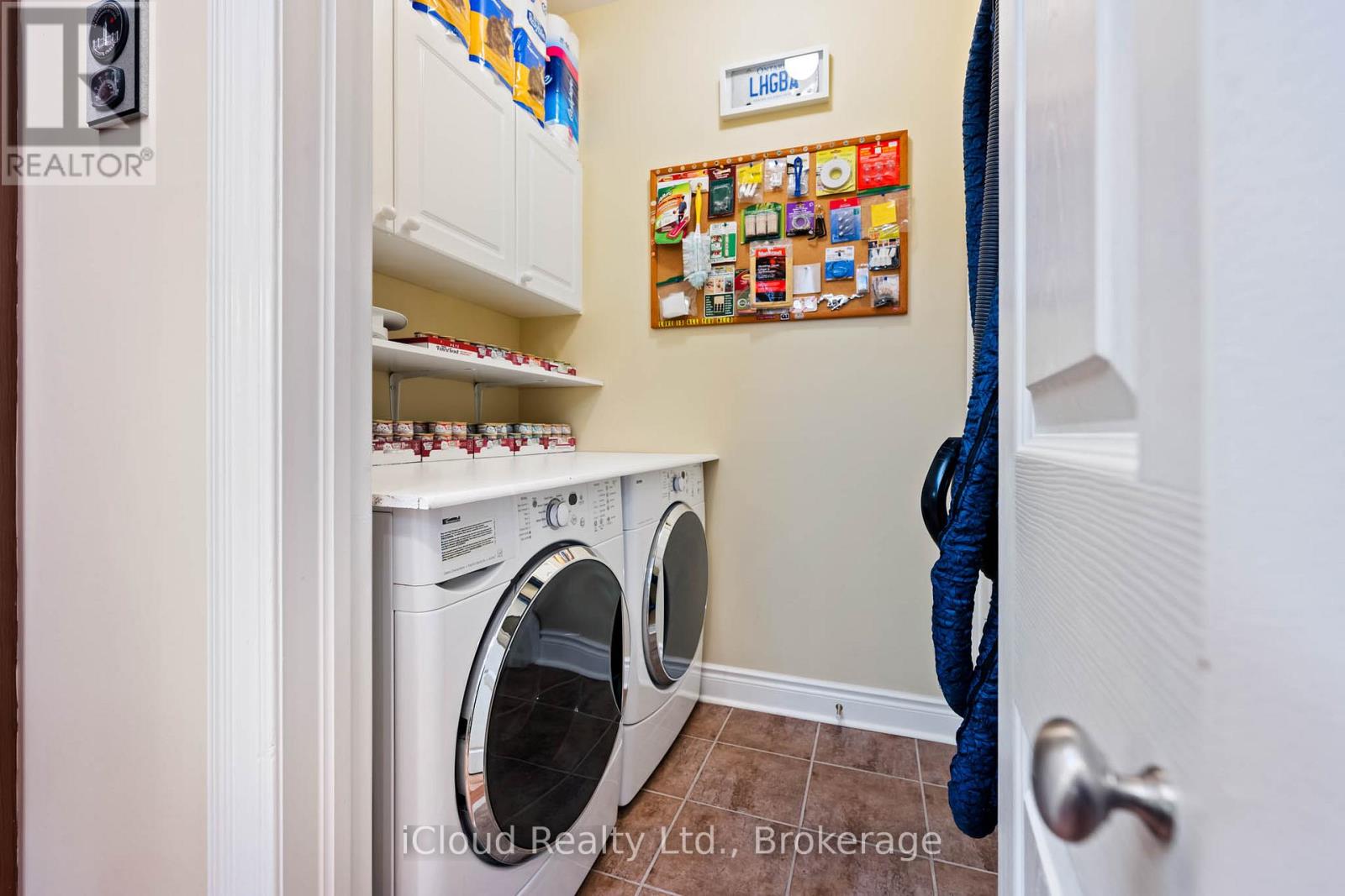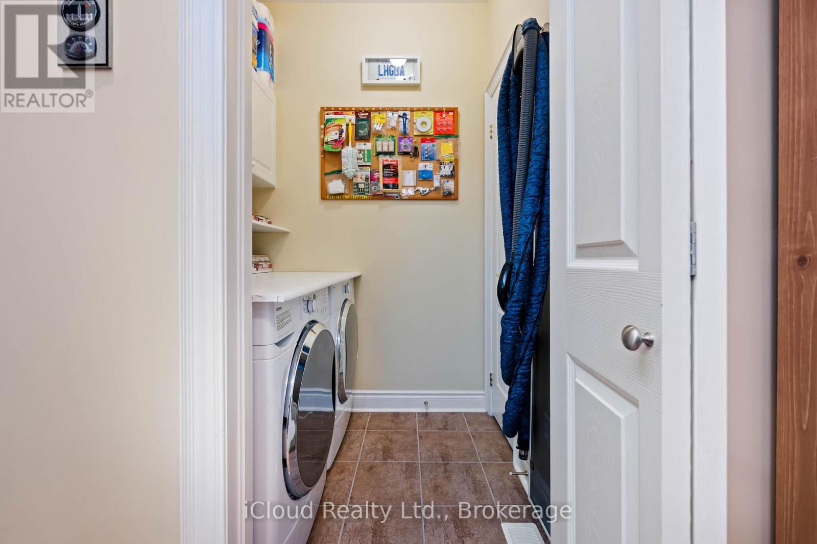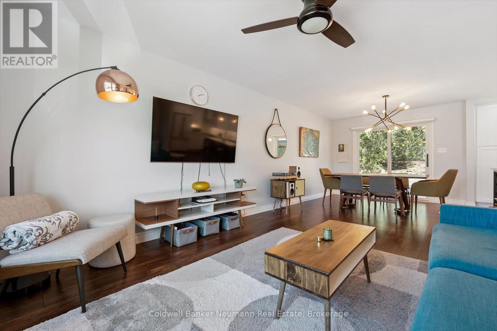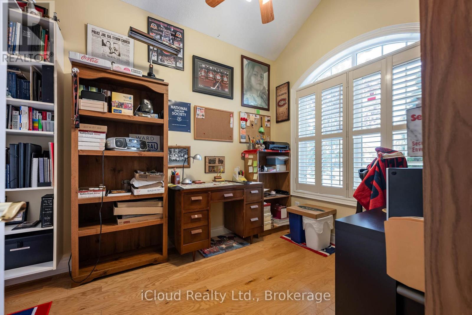 This welcoming BUNGALOW TOWNHOME is located on the outskirts of charming Rockwood. As you enter, the foyer has slate floors, crown molding and 9' ceilings. The primary bedroom to the left has a large bay window, vaulted ceiling, 3 piece ensuite with a generous glass shower and a large walk-in closet. Across the hall is the main 3 piece washroom and a bright sunny second bedroom currently used as a home office with a large window, bookshelves and a double door closet. Beautiful hardwood floors carry throughout and all the windows have custom California shutters. The combination living/dining room boasts an impressive vaulted ceiling, corner gas fireplace and garden doors that overlook the private fenced yard. You will not lack storage in the well appointed kitchen with a wall of upgraded cabinetry, pantry, granite countertops and a breakfast area. Pot lights and both under and above cabinet lighting make it an inviting place to prepare meals or entertain. A laundry room with additional cabinets & broom/storage closet is conveniently located off the eat-in area. Access to the rear single car garage is from the kitchen as well as an outside door from the fenced in yard. The basement is unspoiled except for framing of the utility area and rough-in for bathroom. Animal lovers will appreciate the pet door incorporated into the sidelight on the left side of the garden doors that allow their pet to safely enjoy the outside from the custom pet enclosure. This is a freehold bungalow townhome with a common elements condo corporation fee. Roof (2020) Water Heater (2022) Water Softener (2022) Dishwasher (2022) Sump Pump (2023) (id:64974)