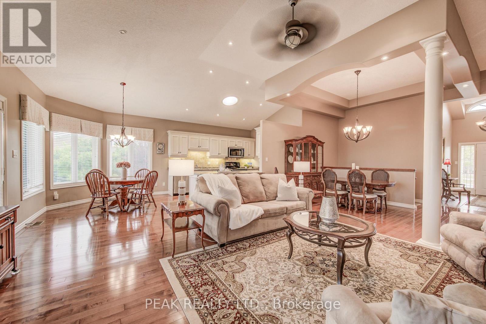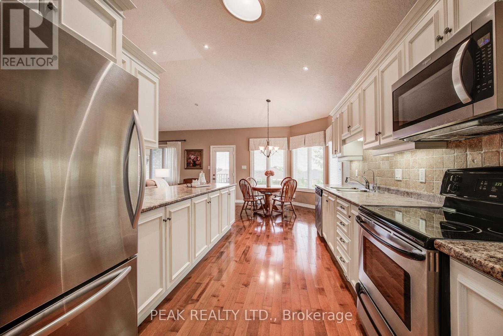 Discover the allure of 116 Stonecroft Way, a beautifully appointed brick bungalow in Stonecroft, New Hamburg's esteemed adult lifestyle community. This home offers the best of both worlds: exceptional privacy on a large, mature lot, combined with immediate access to the community's impressive amenities. Step inside to an inviting open-concept living and dining area, adorned with gleaming hardwood floors. The main level provides convenience with 2 bedrooms and a versatile den. The kitchen, open to the dinette and partially to the living area, features a walk-out to a spacious covered deck with gas BBQ line, ideal for outdoor enjoyment. The finished lower level significantly expands your living space, boasting a generous rec room with a gas fireplace and a 3-piece bath, complete with a walk-out to a lower-level patio. There's also abundant unfinished space, perfect for an additional bedroom or hobby area. This home comes loaded with upgrades, including vaulted ceilings, large bright windows, pot lights, crown moldings, updated insulation, and newer mechanicals and quality roof. As part of this private condominium community, you'll be steps away from the 18,000 sq. ft. recreation centre, offering an indoor pool, fitness room, tennis courts, and 5 km of walking trails. Enjoy quick access to KW, the 401, Stratford, and all major amenities, health care facilities and Theatre and cultural offerings of the area. This exceptional property truly has it all! (id:64974)