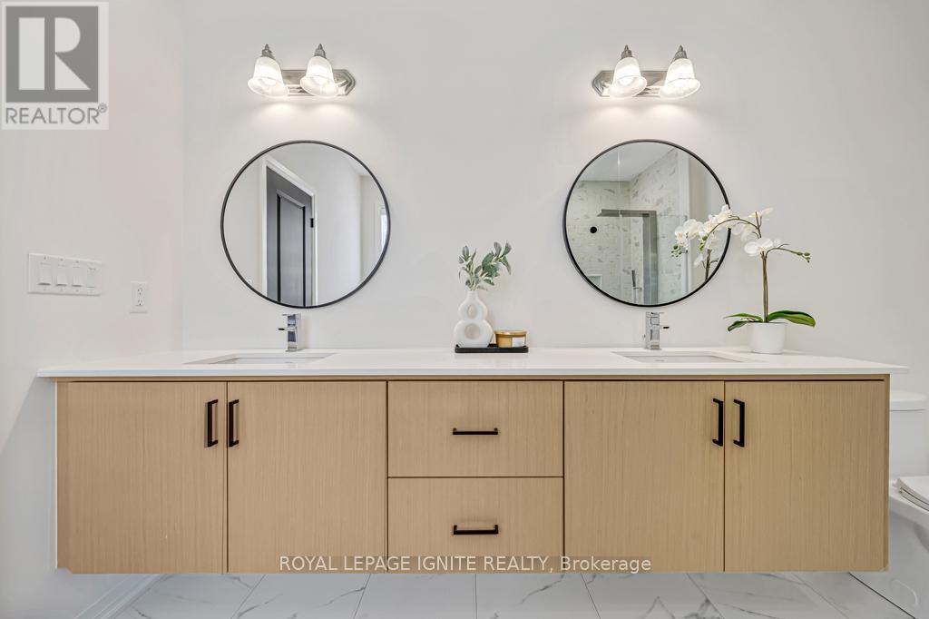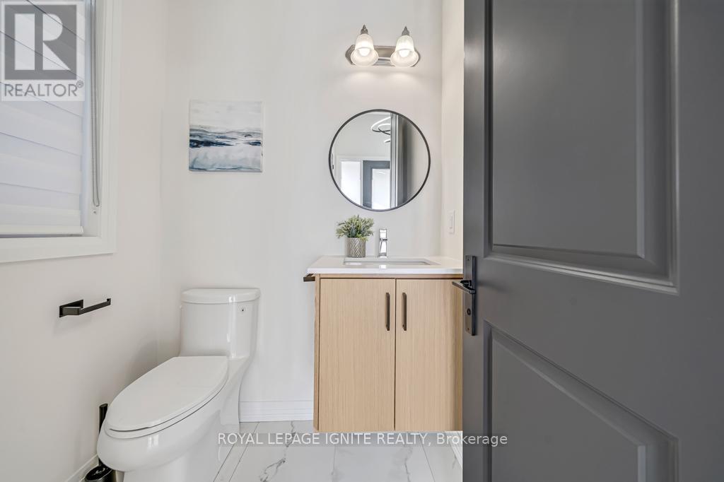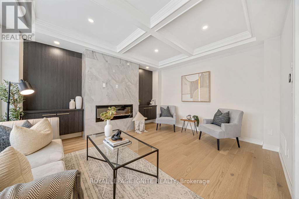 THE ULTIMATE LIFESTYLE RETREAT | $260K+ IN LUXURY UPGRADES Discover the perfect balance of serene rural charm and modern executive luxury. This is a rare chance to own the crown jewel of Rural Pickering-a meticulously curated masterpiece boasting over $260K+ in bespoke upgrades. Nestled on a quiet, family-centric street, this 4-bed detached home offers a level of sophistication and tranquility that is truly rarely offered. A CULINARY MASTERPIECE: The heart of this home is a breathtaking, extended Chef's kitchen that redefines modern luxury. Drenched in style, it features floor-to-ceiling custom black cabinetry, high-end paneled appliances for a seamless aesthetic, and a massive kitchen island crowned with a dramatic quartz waterfall edge. With a matching quartz backsplash, flush hood fan, gas cooktop, and a spacious B/I pantry, it is as functional as it is beautiful. DESIGNER INTERIORS: This carpet-free residence features rich hardwood flooring throughout, reflecting a commitment to quality and health. The living room serves as an architectural sanctuary, boasting elegant waffle ceilings and a modern flush-mount fireplace anchored by custom floating cabinetry. Bathed in natural light, the living and dining layout transitions perfectly to the outdoors through upgraded, extra-wide patio doors. ICONIC CRAFTSMANSHIP: Ascend a stunning architectural staircase featuring premium wooden handrails, metal balusters, and contemporary glass railings. The second floor offers four generous bedrooms, each featuring custom-built closet organizers. The Primary Suite is a genuine retreat, complete with a spa-inspired 5-piece ensuite-featuring a freestanding tub and frameless glass shower-and a walk-in closet that has been entirely customized for maximum organization. UNLIMITED POTENTIAL: The expansive, unfinished basement offers 9ft ceilings, egress windows, a 200amp service, and a bathroom rough-in, providing a massive footprint ready for your custom theatre, gym, or guest suite. (id:64974)