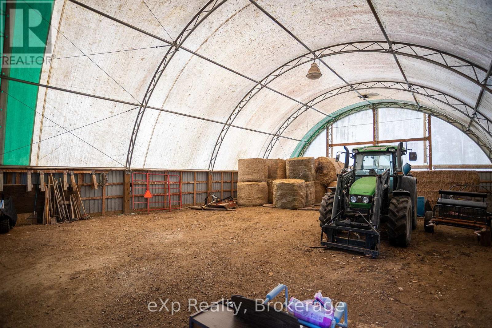 Set a ways back from the paved road, this farm has it all! 121 acres of pasture, workable farmland, mixed bush, a meandering creek, and well-equipped buildings for a variety of farming endeavours. Surrounded by mature trees with views of the horse paddocks from the veranda, the home blends the charm of the original farmhouse: pine floors, solid wood cabinets, and a cozy woodstove with the added space of a bright, modern addition. The farmhouse includes a welcoming kitchen, family room, office or optional bedroom, and a three-piece bath, while the addition features a large, light-filled living room with deck access, a primary bedroom, four-piece bath, laundry room, and attached double garage. Upstairs offers a loft sitting area and second bedroom, and the basement boasts a spacious rec room with built-in bar and pool table. Outbuildings include a 36' x 48' horse stable with four 12' x 12' box stalls, heated tack room with plumbing, a 43' x 50' bank cattle barn with concrete barnyard and separate well, a 26'6" x 46'6" driveshed, and a 40' x 56'6" coverall building. (id:64974)