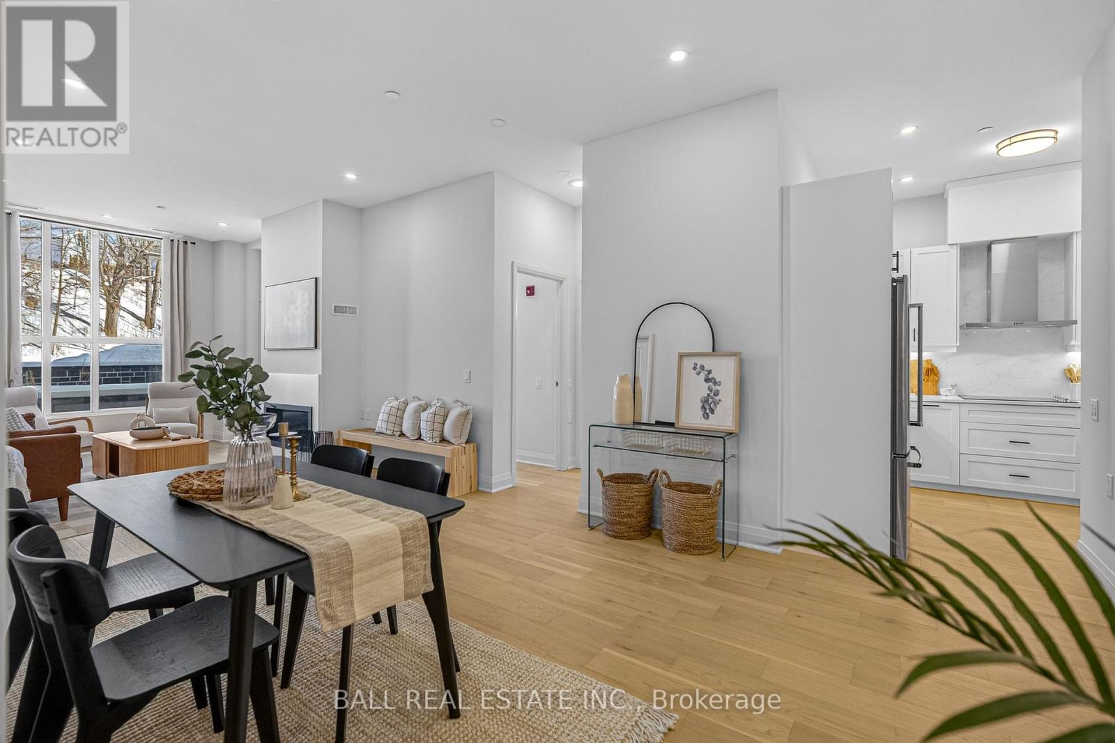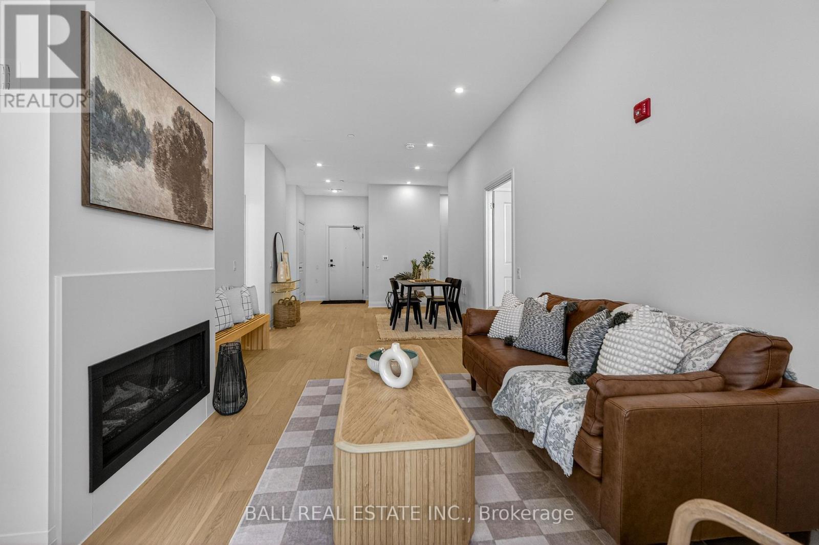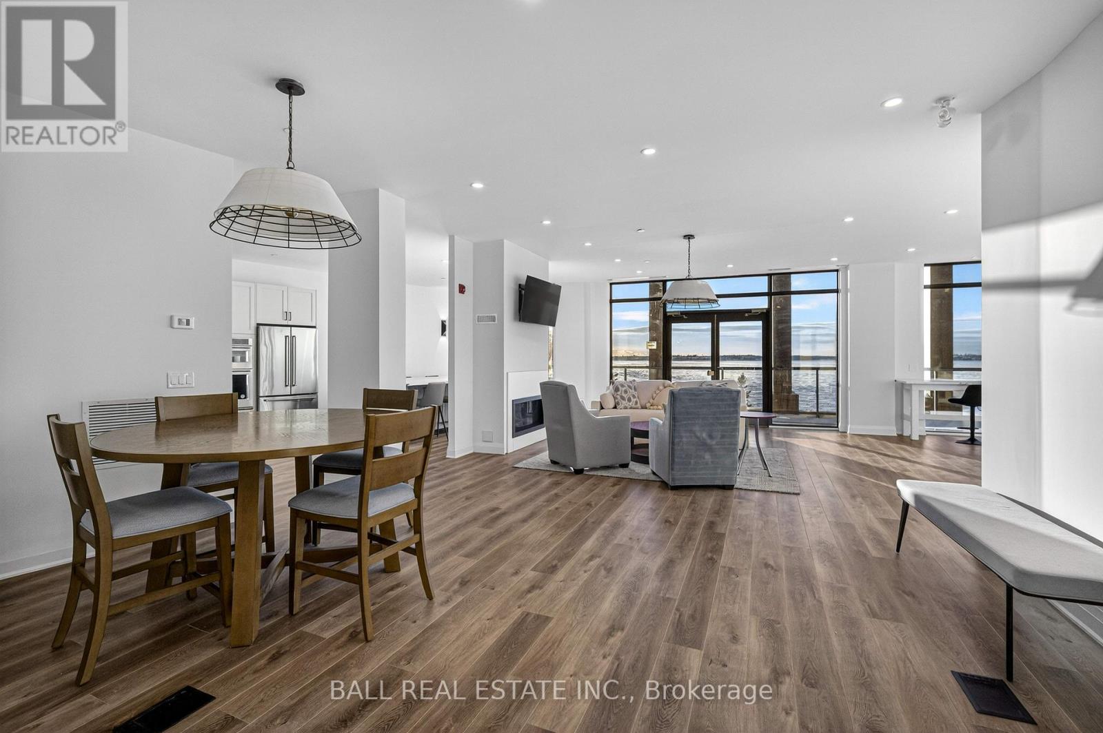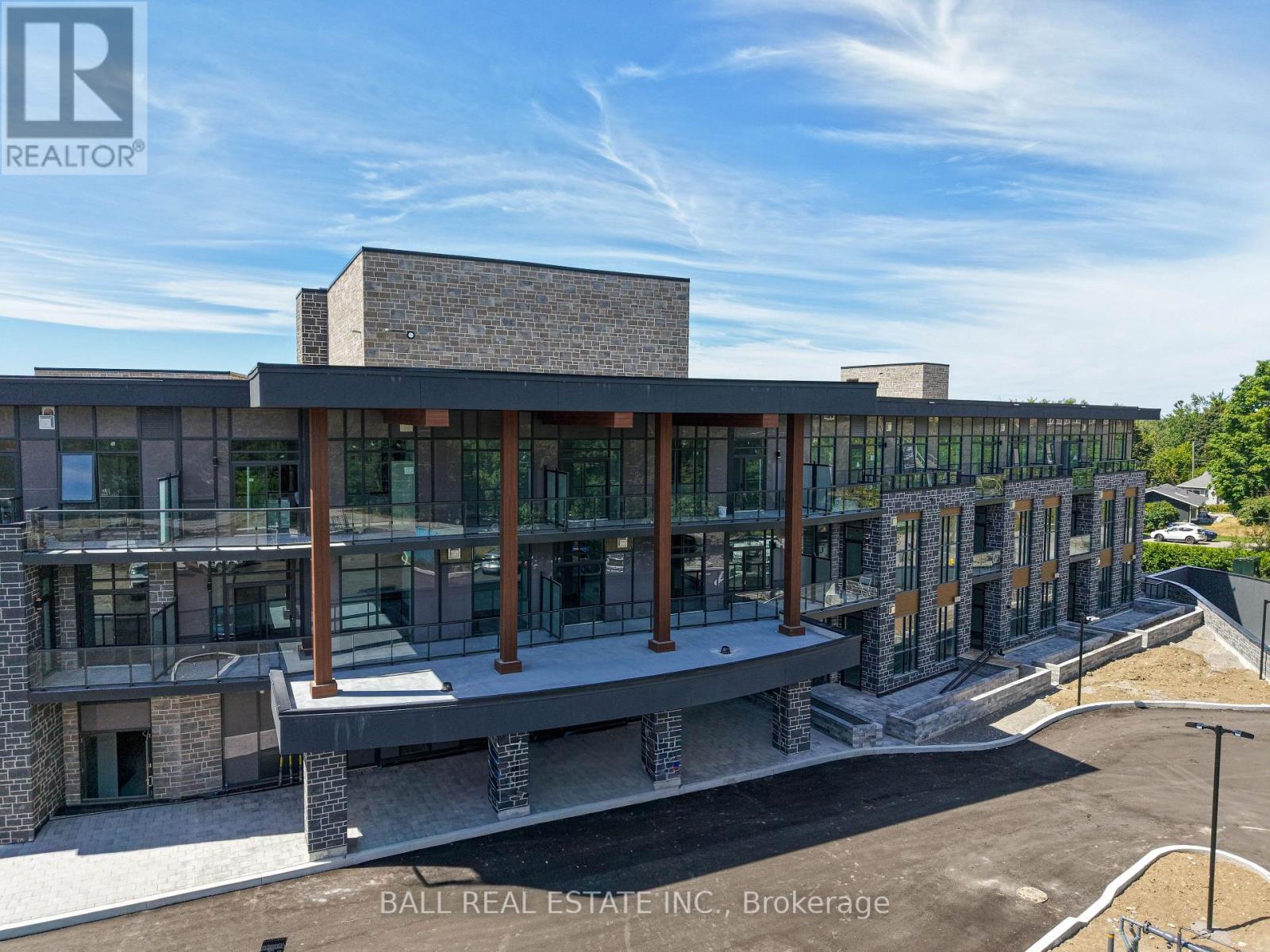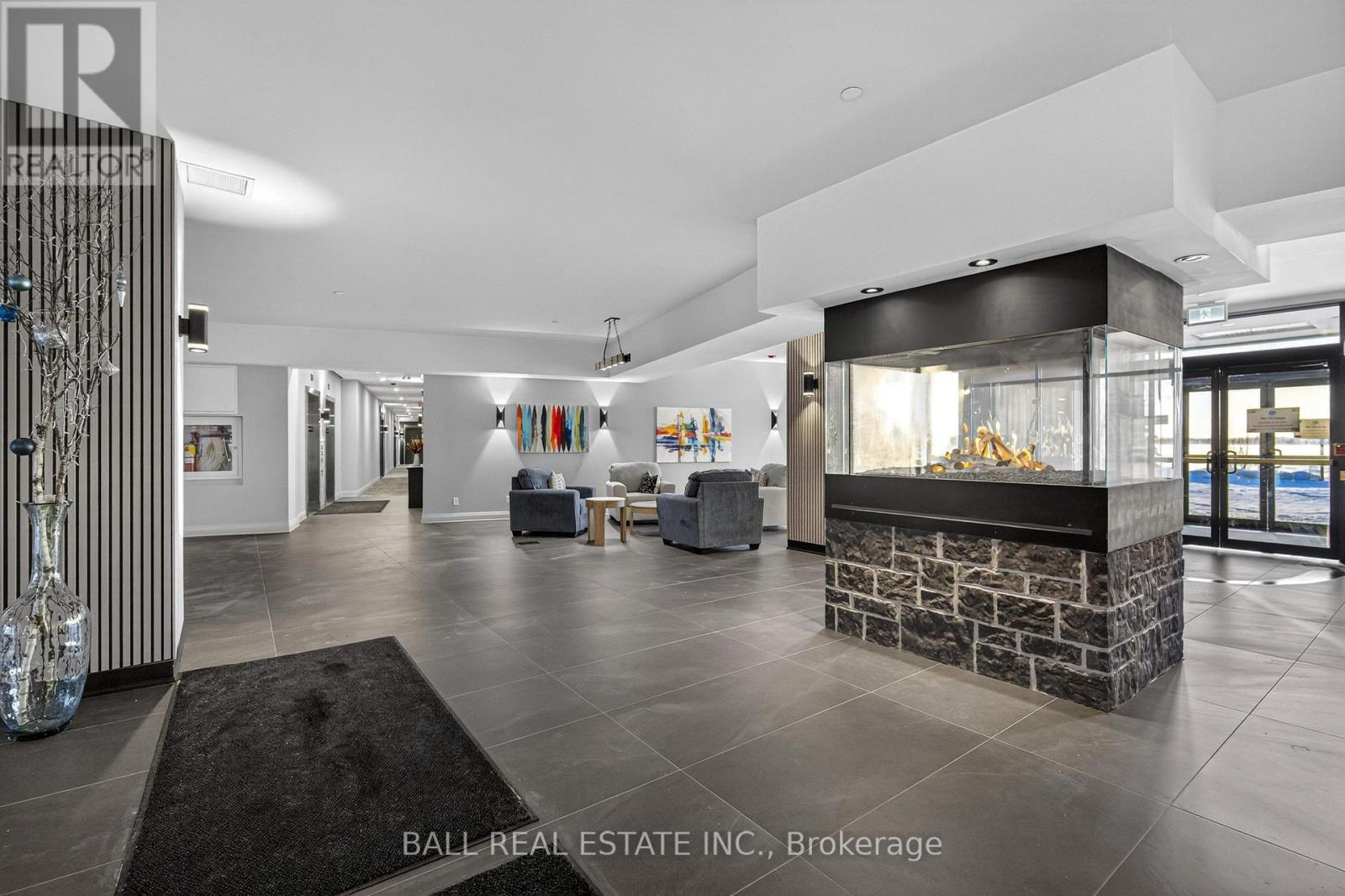 Luxury Living in the Heart of Kawartha Lakes, experience resort-style living every day in Kawartha Lakes' premier condo development - The Moorings on Cameron Lake. This stunning 2-bedroom, 2-bath suite + den offers 1149 sq ft of elegant and spacious living with 9ft ceilings, clerestory windows and an open-concept layout with premium finishes throughout. Suite Features: Beautiful bright kitchen leading out to dining/living area with gas fireplace and walk-out terrace (gas BBQ hookup). Upgraded kitchen with quality cabinets, quartz countertops, under-cabinet lighting and stainless-steel appliances. Primary suite has a walk-in closet and luxurious en-suite bathroom. Second bedroom ideal for guests. Den that would make a great office space. In-suite laundry room with extra storage. Engineered hardwood & porcelain tile flooring throughout, upgraded doors and trim. One underground parking spot and private locker included. World-Class Amenities: Outside Lakeview lounge with western sunsets, lakeview state-of-the-art fitness centre with indoor sauna, lakeview owners lounge with caterer's kitchen & movie theatre (can be booked for private events), 2 guests suites, grand foyer with gas fireplace, heated outdoor pool & hot tub, tennis/pickleball court, and beautifully landscaped outdoor areas. Boat slips available for purchase at the on-site marina (to be built, spaces limited). Steps from the Victoria Trail, shopping, dining, wellness services, and entertainment. Located on the tranquil shores of Cameron Lake, part of the Trent-Severn Waterway, and just minutes to Lindsay and Bobcaygeon, this is an ideal blend of luxury, convenience, and nature. Enjoy spectacular western sunsets, peaceful surroundings, and vibrant local living - all less than 90 minutes from the GTA. Only a few units remain - don't miss this rare opportunity to own at The Moorings! (id:64974)