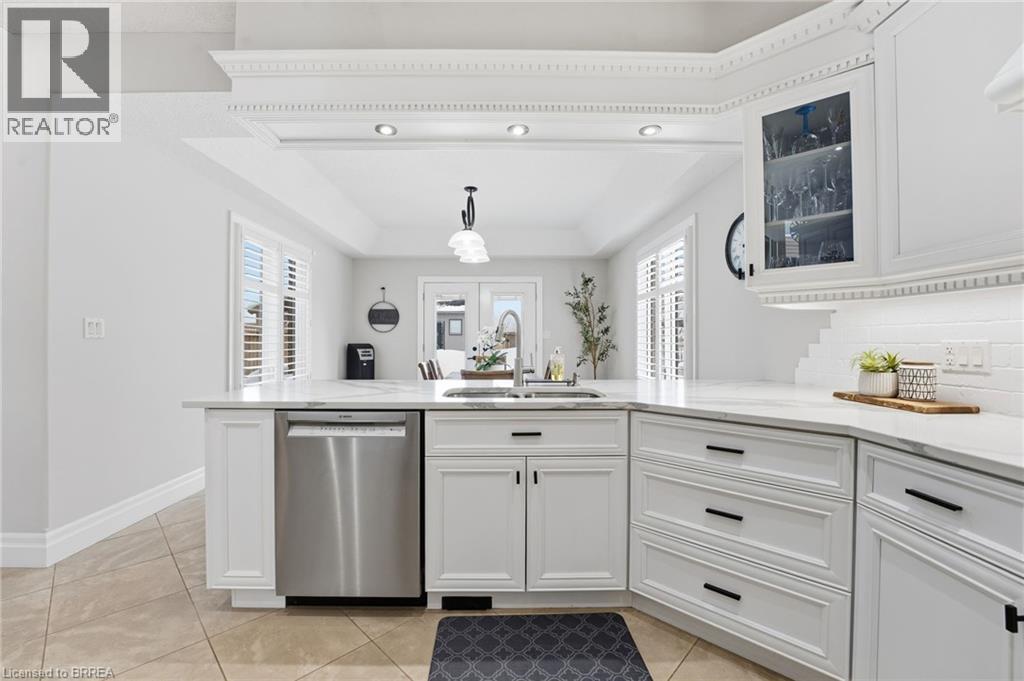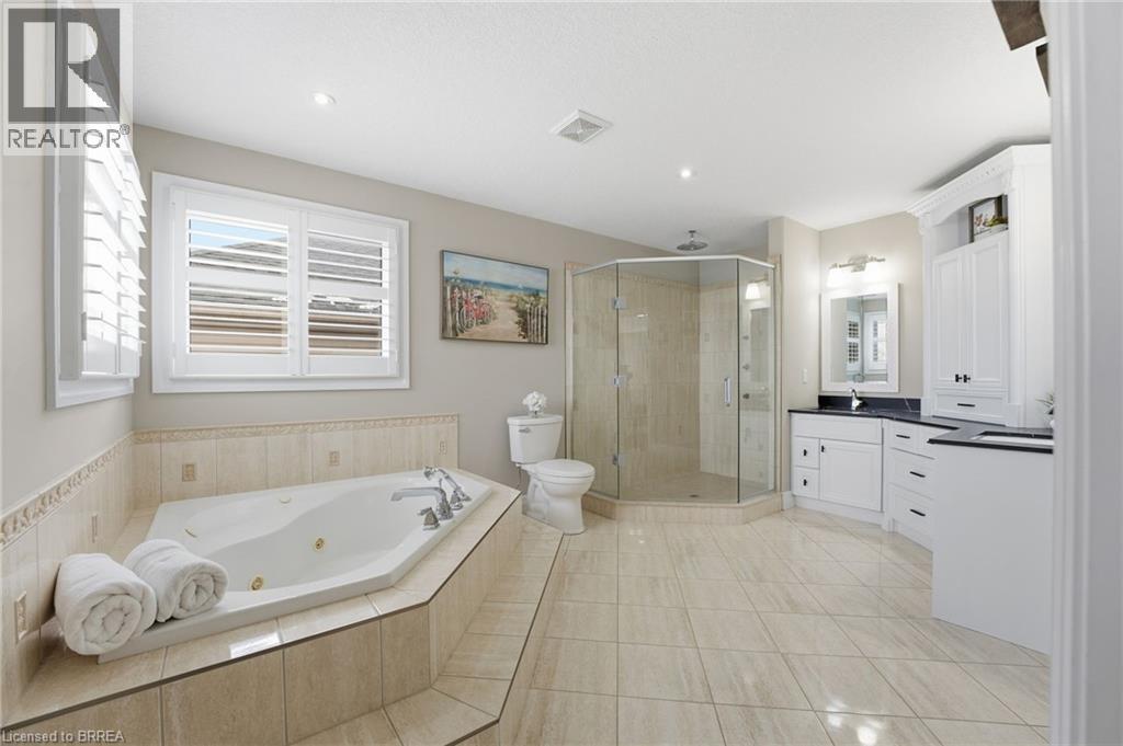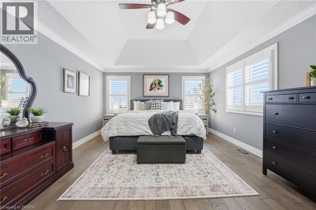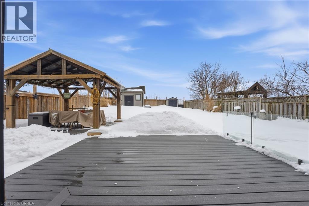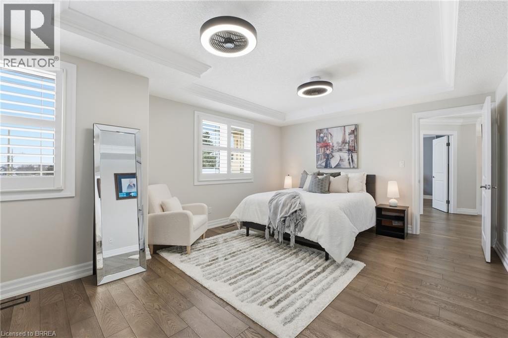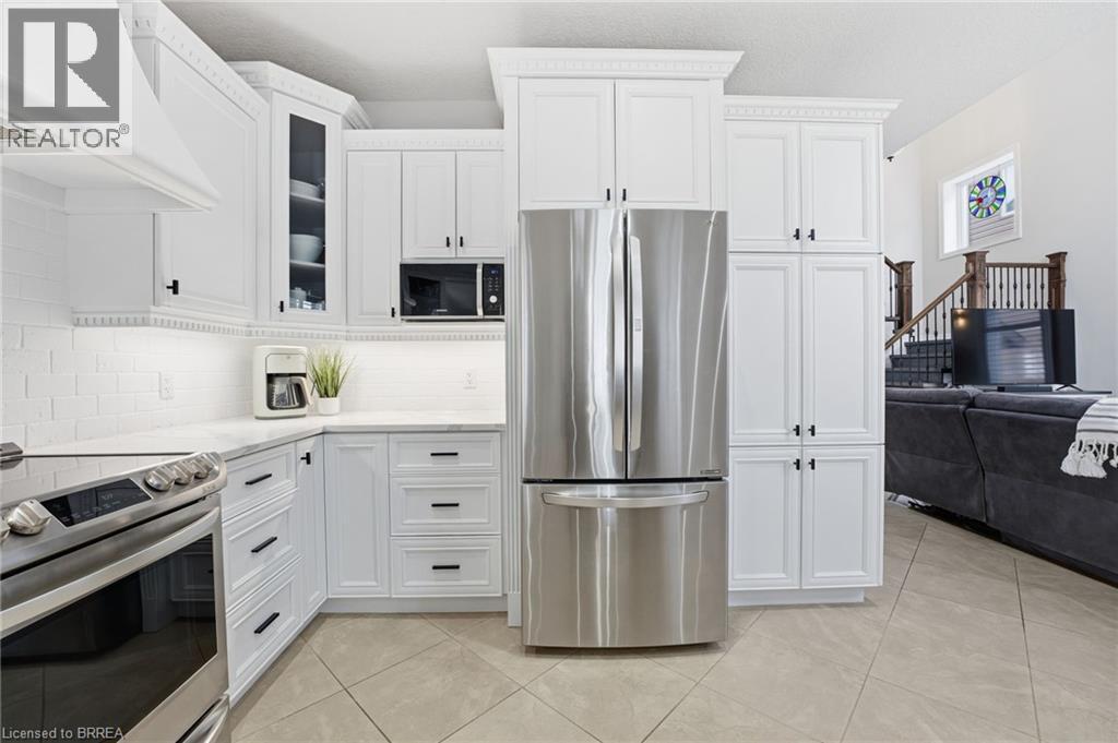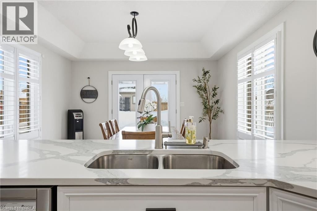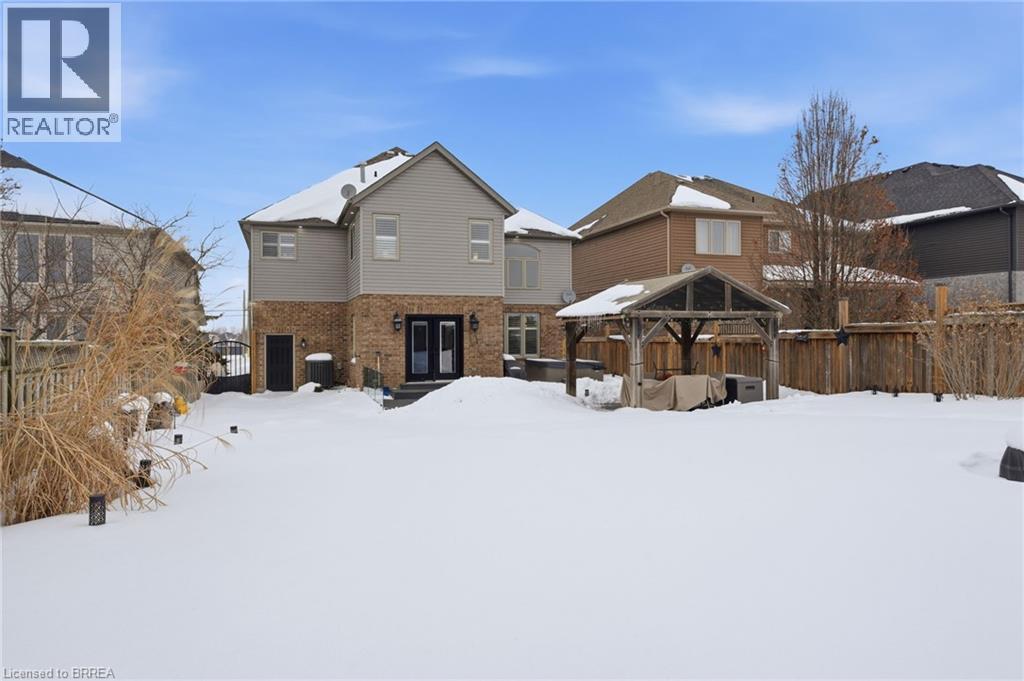 Welcome to 117 Albert St E in Plattsville - this stunning home, finished top to bottom, offering 4,000 sq/ft of beautiful living space and a 3 car garage, you'll be sure to impress. From the moment you arrive, you’ll feel welcomed by this stately home, showcasing a distinguished brick and stucco façade, a concrete driveway, and beautifully manicured gardens that create exceptional curb appeal. Step inside to a home designed for comfortable living and effortless entertaining, where the foyer opens to soaring ceilings, 18 tiles and natural light from the southern exposure. A formal dining room with tray ceilings greets you at the entrance. The main floor living room features dramatic 20-foot ceilings open to the second level, a gas fireplace with cast stone mantel, and large windows overlooking the backyard. The chef’s kitchen offers bright cabinetry, Quartz countertops, stainless steel appliances, and a breakfast bar, flowing into the breakfast nook with French doors leading to the yard. Upstairs, overlooking both the foyer and living room, the impressive primary suite offers tray ceilings, a gas fireplace, and a luxurious five-piece ensuite with heated floors, a soaker tub, glass shower with body jets, double sinks, and a walk-in closet. Three additional generously sized bedrooms, a four-piece main bath, and convenient upper-level laundry are thoughtfully arranged for optimal space and everyday functionality. The fully finished basement offers even more living space, featuring a spacious rec room, a three-piece bathroom, a fifth bedroom, and a dedicated gym. Outside, the home continues to impress with a fully fenced backyard complete with composite decking, a rubber patio, a stunning pergola perfect for summer evenings, and two sheds — including an impressive 16' x 14' workshop-sized shed with Hydro. Updated inside and out, this home is better than new — simply move in this spring, relax, and enjoy! (id:64974)