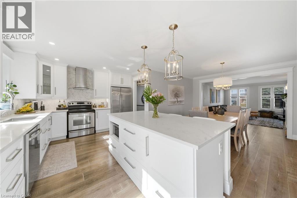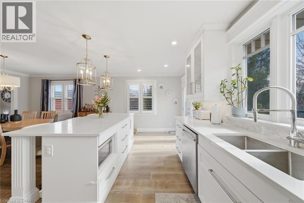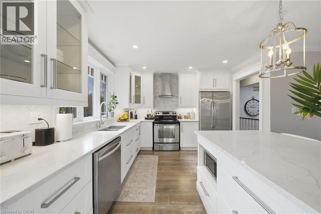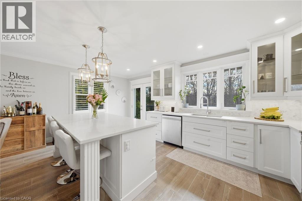Welcome to this gorgeous, fully updated bungalow nestled in one of Brantford’s most desirable neighbourhoods, backing onto a beautiful private ravine for added tranquility and scenic views. This spacious home offers 6 bedrooms and 3 bathrooms, making it ideal for growing families or multi-generational living. The bright and inviting main level showcases large windows, a skylight, and an abundance of natural light, highlighting the home’s elegant finishes and beautiful moldings throughout. The thoughtfully designed layout provides generous living spaces perfect for both everyday living and entertaining. The fully finished walk-out basement features a second kitchen, offering incredible flexibility for extended family, guests, or potential in-law living arrangements. Step outside to enjoy the peaceful ravine setting while still being just minutes from shopping, schools, parks, public transit, and convenient highway access. A rare opportunity to own a spacious, move-in ready bungalow in a prime Brantford location with exceptional versatility and natural surroundings. (id:64974)