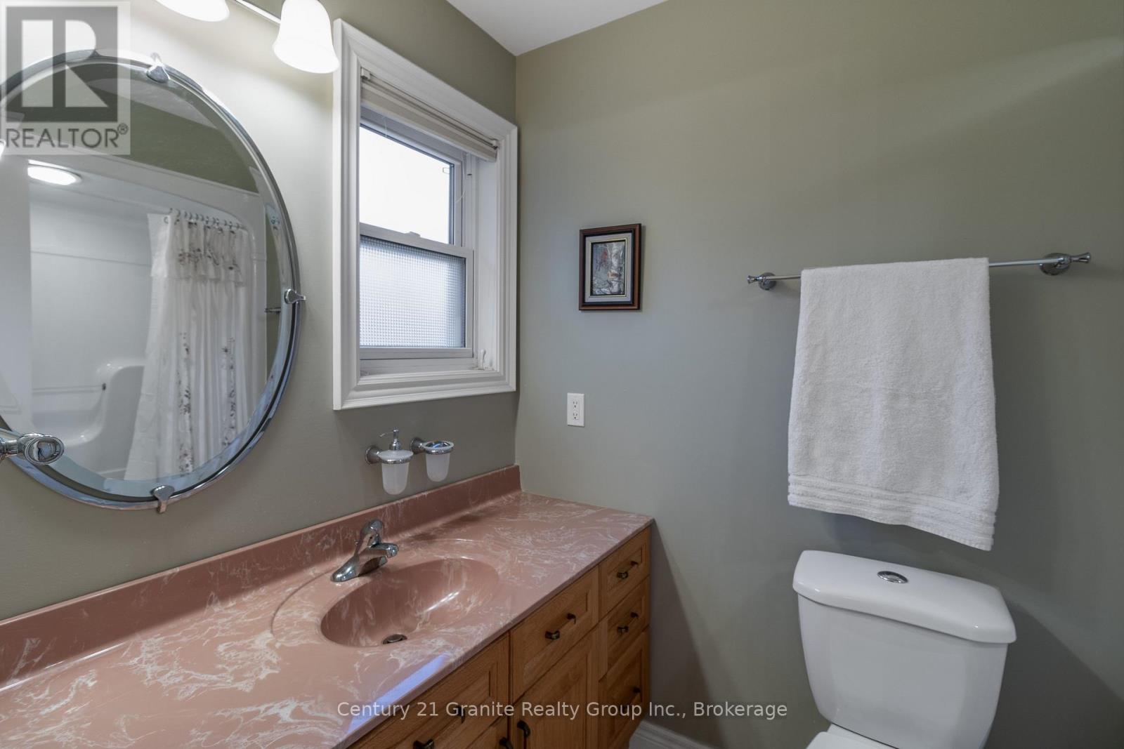 Welcome to this beautifully maintained brick bungalow located in the Haliburton By The Lake subdivision. Built in 2005, this thoughtfully designed home offers comfortable, low-maintenance living with an ideal balance of natural surroundings & in-town convenience. Step inside to a bright, open-concept living & dining area, perfect for both everyday living & entertaining. The adjoining family room features a cozy propane fireplace & flows seamlessly into the kitchen, complete with a sunny breakfast nook & walkout to the updated back deck with a hot tub-an ideal space for morning coffee or evening relaxation. The main level offers true one-floor living with 3 generous bedrooms, including a spacious primary suite with a walk-in closet & 4-pc ensuite. A guest bathroom & main-floor laundry add to the home's practicality & ease of living. The partially finished lower level provides excellent flexibility, featuring a recreation room & an additional bedroom, with plenty of unfinished space ready for your personal vision, including a workshop area & wine storage. Additional highlights include an attached 1.5-car garage that is insulated & drywalled, complete with its own sound system. The level, low-maintenance lot features a paved driveway, an in-ground zoned sprinkler system, & an updated rear deck. Major systems such as Eco-Flow septic, forced-air propane heating, a Generac generator, & a new 200-amp electrical panel offer peace of mind year-round. The property includes an exclusive boat slip on Head Lake, connecting you to Haliburton's desirable 5-lake chain-perfect for boating, fishing, water sports, & more. The property backs onto the Glebe Park trail system & includes private access to a lakefront park, boat launch, & swimming area. All of this is just minutes from schools, the hospital, playgrounds, the dog park, & the shops & restaurants of downtown Haliburton. A wonderful opportunity to enjoy comfort, community, & an active lifestyle in the heart of the Highlands. (id:64974)