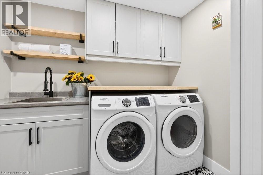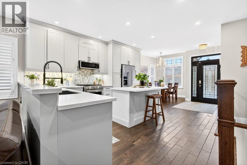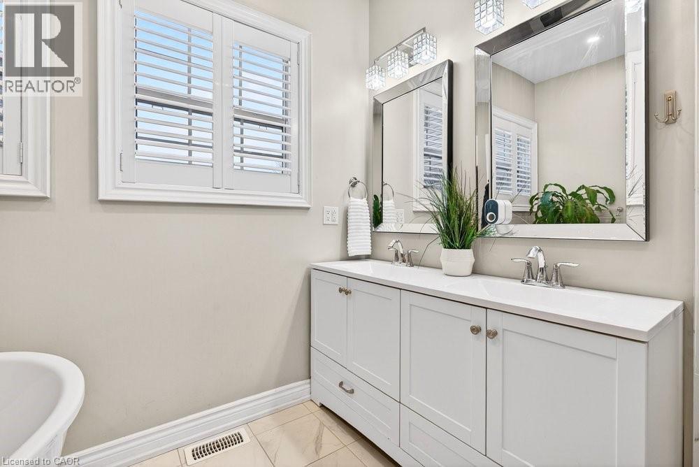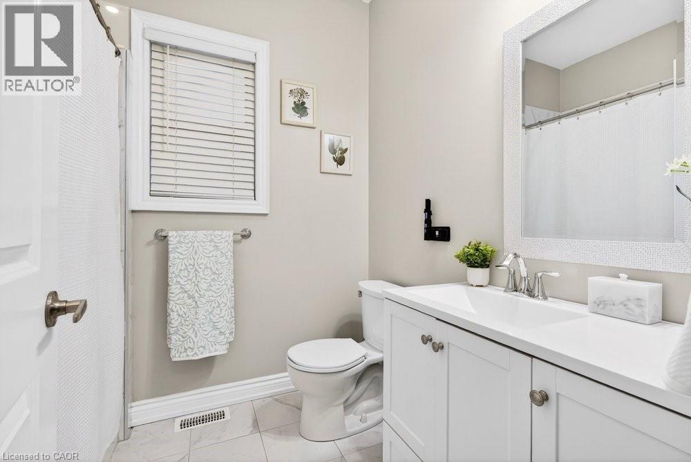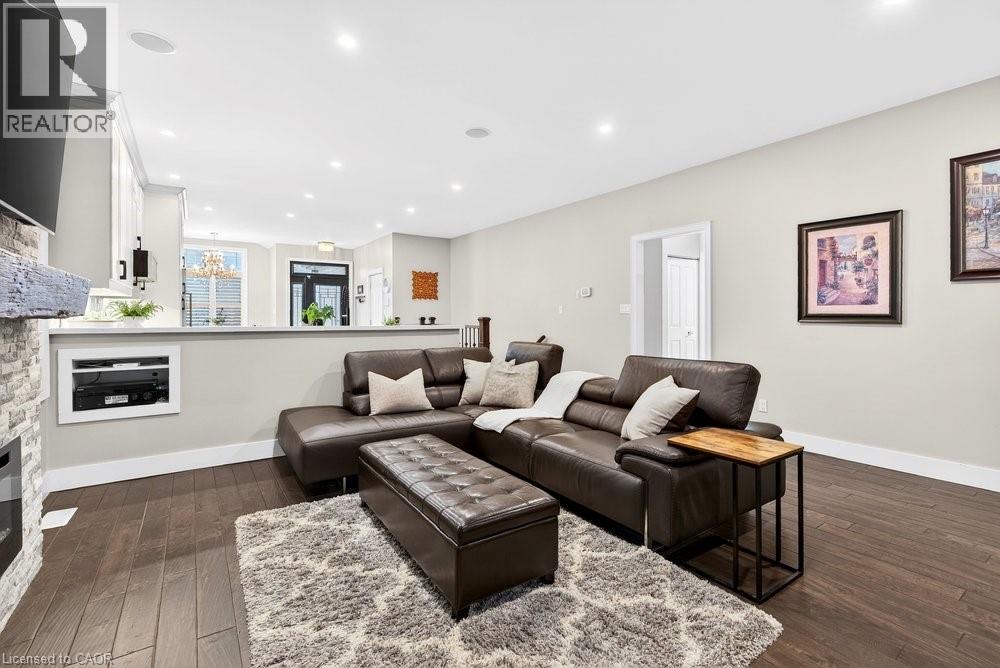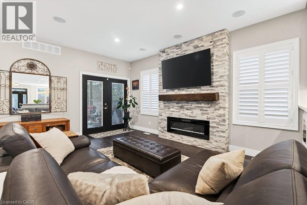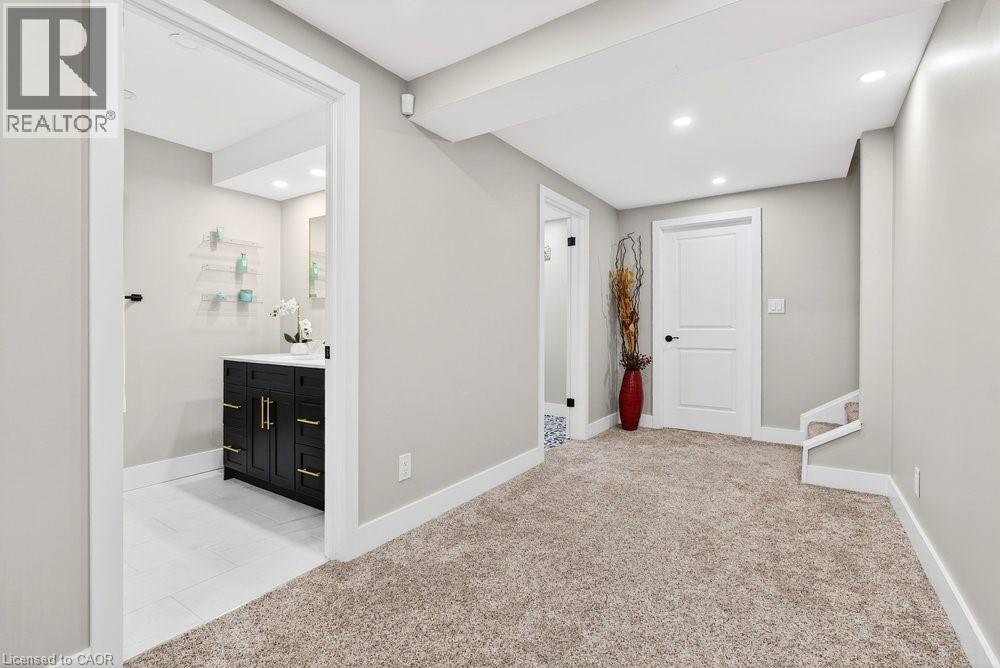 Impeccable 3+1 BR, 3 bath bungalow offering over 1400 sq ft plus a fully finished basement this 8 year old Mountainview built home located on the west side of Welland with easy access to Webber Rd for the commuter, is not to be missed! Gorgeous finishes throughout including the custom kitchen with extended height & pantry cabinets, quartz counters, & island with breakfast bar; engineered hardwood floors throughout the main level; 9' main floor ceilings; primary with a beautiful ensuite that features a stand alone soaker tub, separate shower & double sinks; the primary also hosts a walk out to a private deck that's perfect for your morning coffee or nightcap. The lower level rivals the main floor finishings with recent carpet; wet bar/kitchenette; large bedroom; family room built-ins flanking the shiplap surround for the electric fireplace; built in speakers; tons of pot lights and a laundry room that might let you actually enjoy doing laundry! The exterior does not disappoint with the brick and stone façade, concrete double drive, inground sprinklers, the back offers a tiered deck that leads to the hot tub and lower stamped concrete patio in the fully fenced backyard. This is one to truly experience live! (id:64974)
