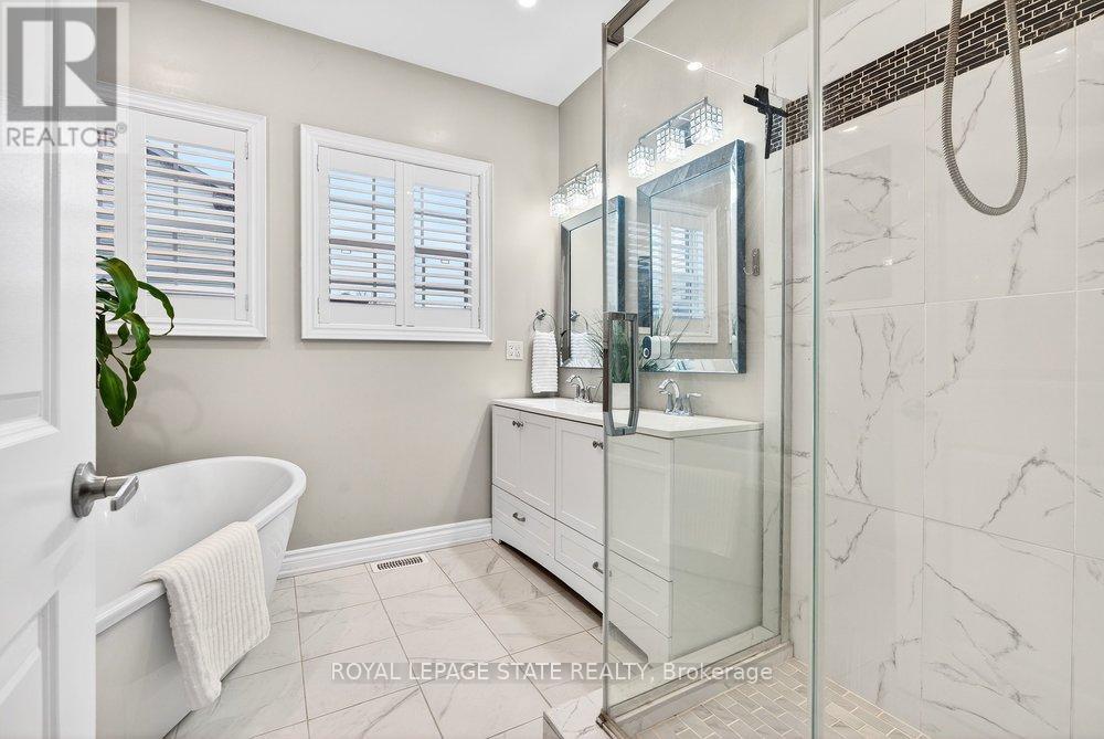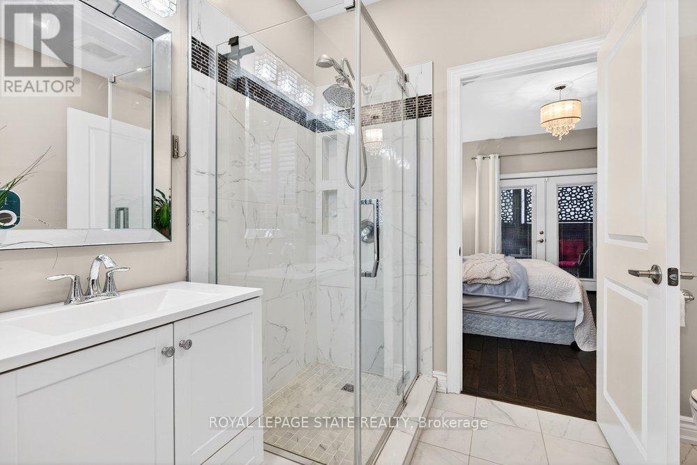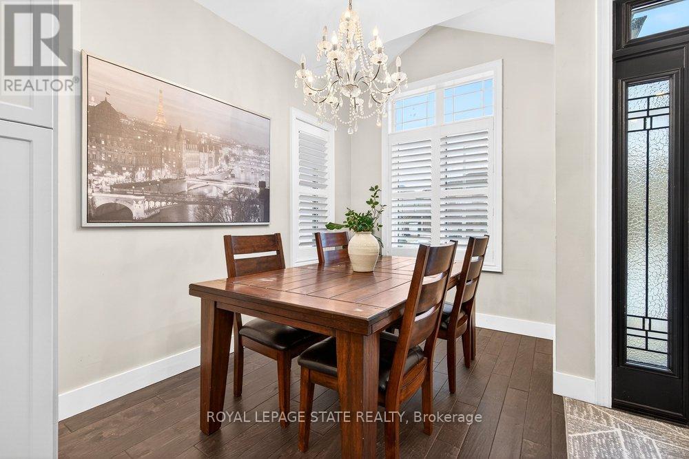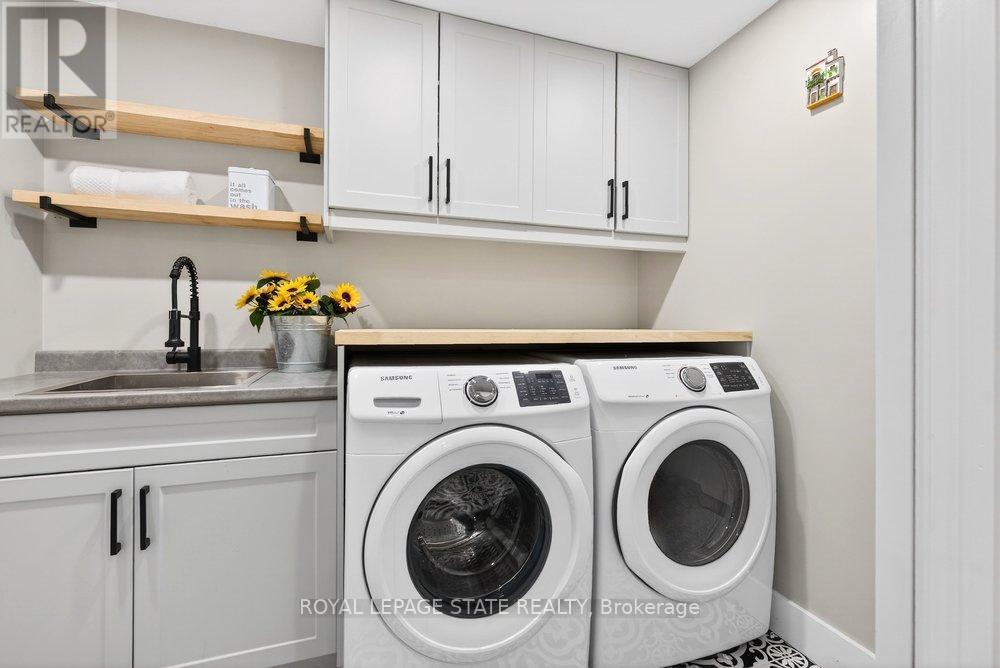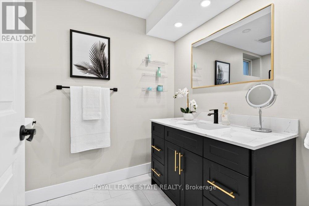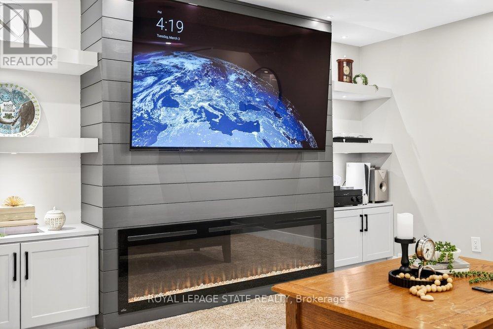 Impeccable 3+1 BR, 3 bath bungalow offering over 1400 sq ft plus a fully finished basement this 8 year old Mountainview built home located on the west side of Welland with easy access to Webber Rd for the commuter, is not to be missed! Gorgeous finishes throughout including the custom kitchen with extended height & pantry cabinets, quartz counters, & island with breakfast bar; engineered hardwood floors throughout the main level; 9' main floor ceilings; primary with a beautiful ensuite that features a stand alone soaker tub, separate shower & double sinks; the primary also hosts a walk out to a private deck that's perfect for your morning coffee or nightcap. The lower level rivals the main floor finishings with recent carpet; wet bar/kitchenette; large bedroom; family room built-ins flanking the shiplap surround for the electric fireplace; built in speakers; tons of pot lights and a laundry room that might let you actually enjoy doing laundry! The exterior does not disappoint with the brick and stone façade, concrete double drive, inground sprinklers, the back offers a tiered deck that leads to the hot tub and lower stamped concrete patio in the fully fenced backyard. This is one to truly experience live! (id:64974)