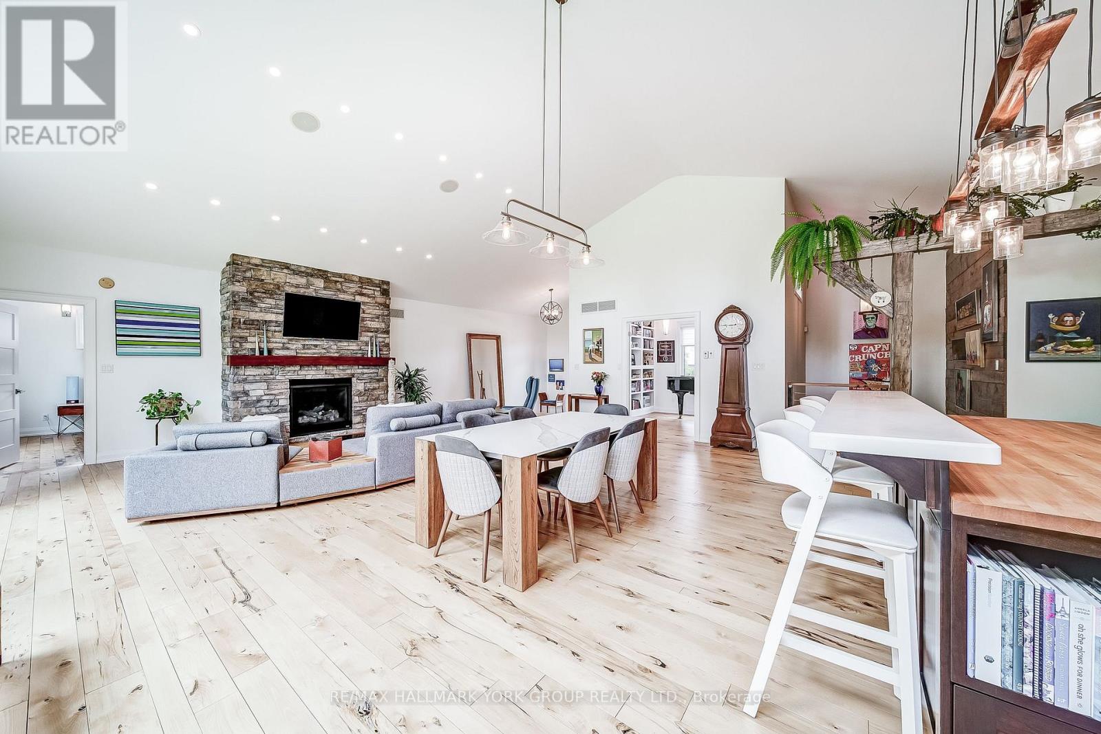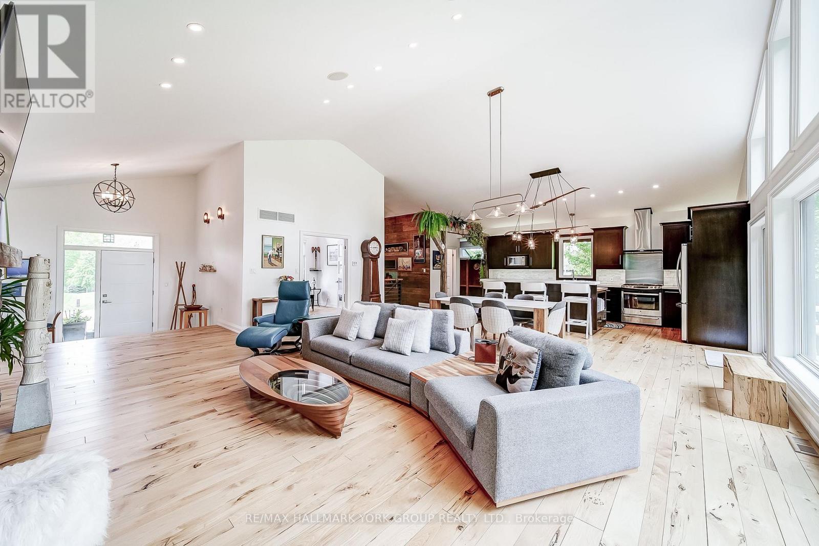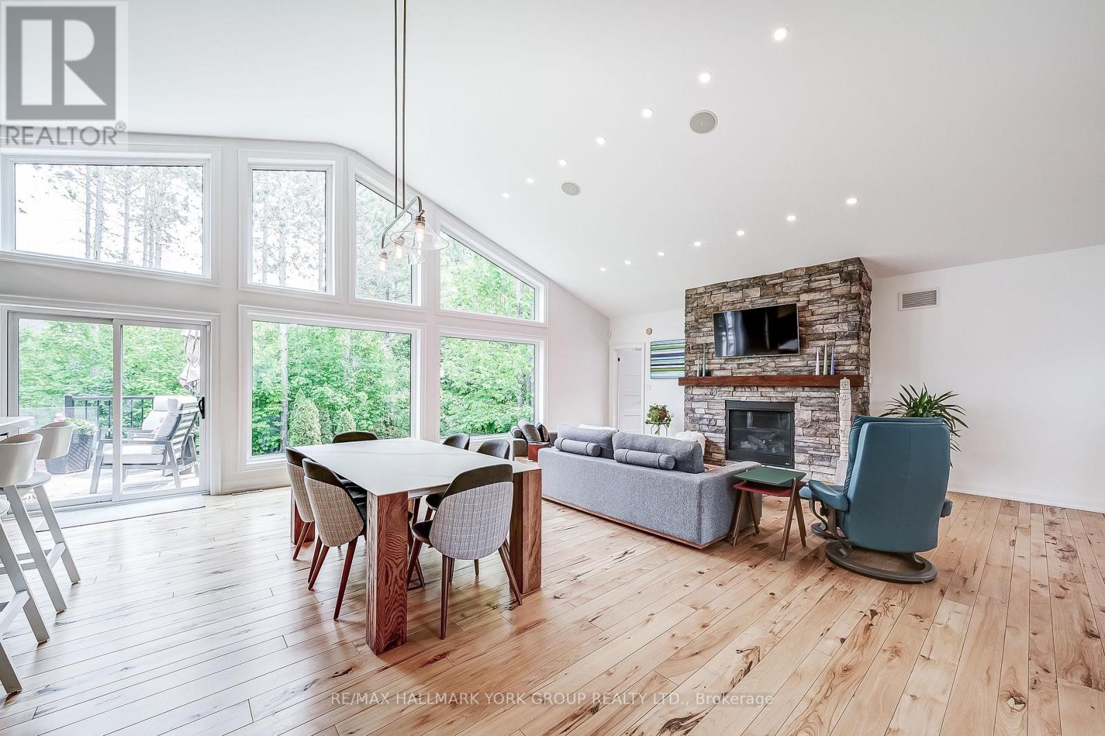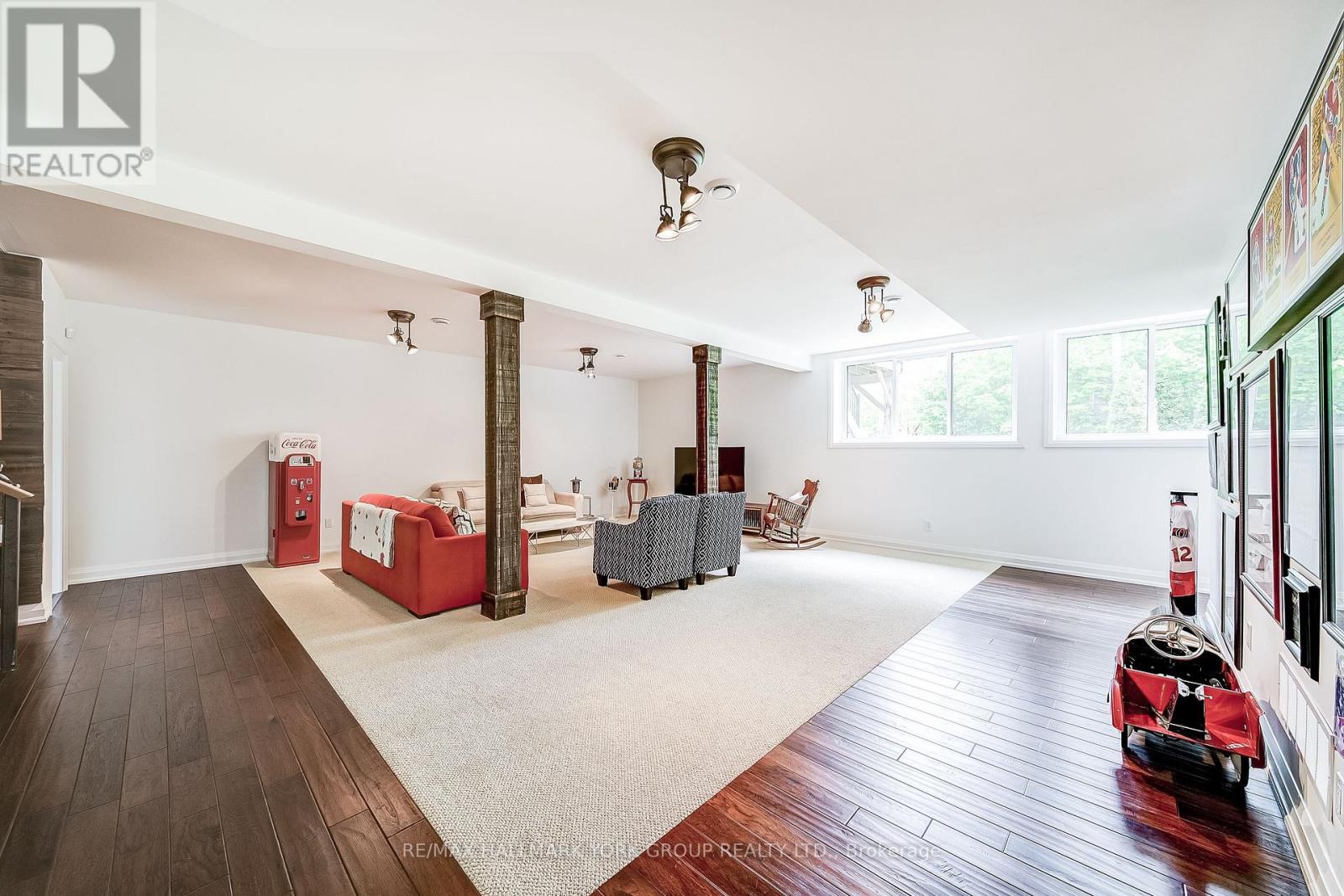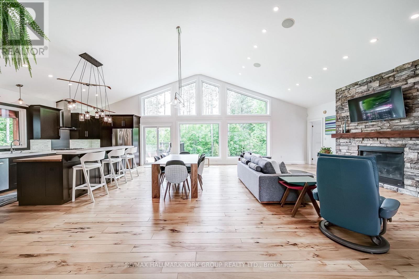 Custom-built raised bungalow showpiece set on a private half-acre lot in the desirable Snow Valley area of Springwater, offering more than 3,600 sq ft of finished living space just minutes from the City of Barrie. The open-concept main level features soaring cathedral ceilings, a wall of windows, and 3/4' hickory flooring throughout. The thoughtfully designed kitchen includes custom cherry cabinetry, a large centre island, and generous counter space-ideal for everyday living and entertaining. The primary bedroom offers a private 5-piece ensuite and walk-in closet. A versatile additional main-level room with custom built-in shelving provides flexible space for a home office, music room, or playroom. The bright lower level includes three bedrooms and a spacious open living area, all with extra-large windows creating an above-grade feel. An oversized two-car garage provides excellent storage and workspace. Enjoy a wraparound deck with covered and open sections, extending main-floor living outdoors, surrounded by a treed and private yard. Ideal for four-season recreation with Snow Valley Ski Resort nearby, walking trails steps from the door, Simcoe County Forest trails minutes away, a golf course two minutes away, and easy access to biking, hiking, snowshoeing, and cross-country skiing. A wonderful opportunity to enjoy peace of mind, comfort, and community in an inviting home! (id:64974)