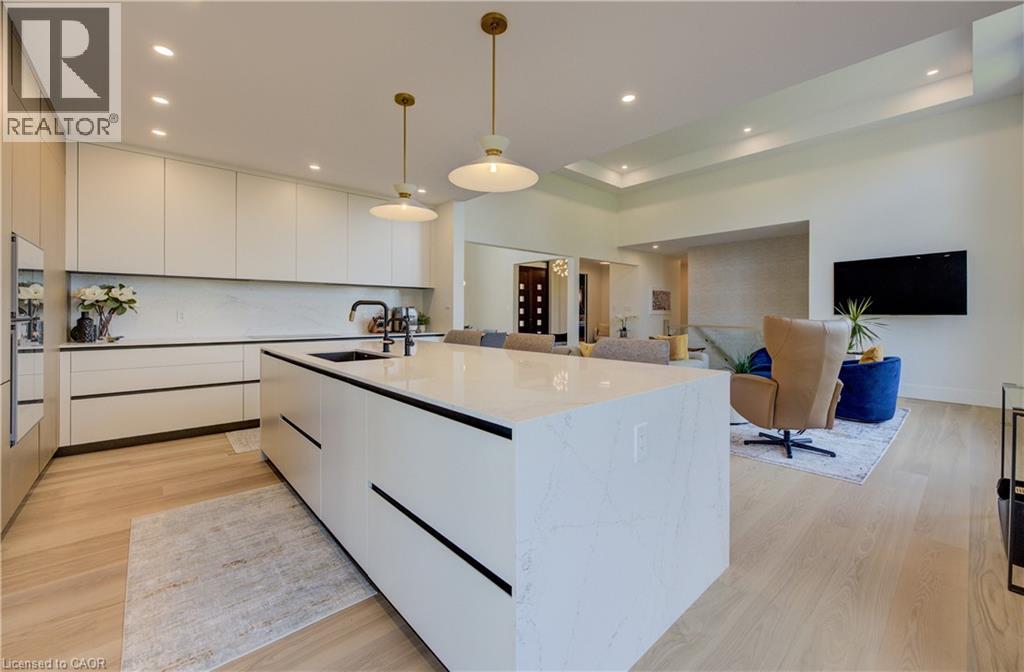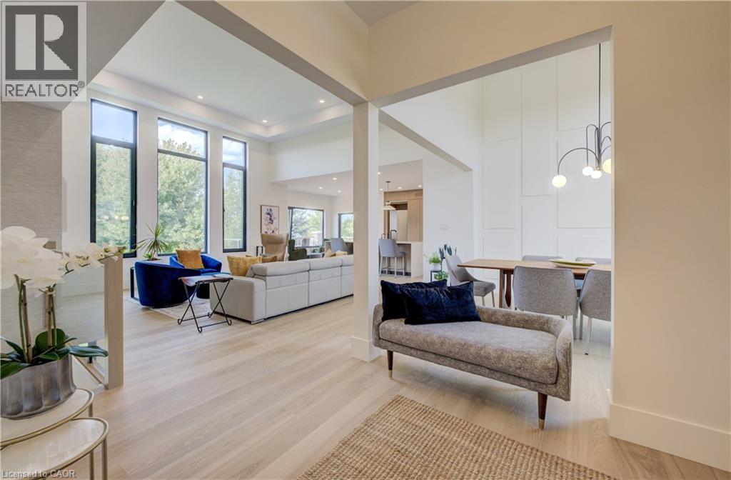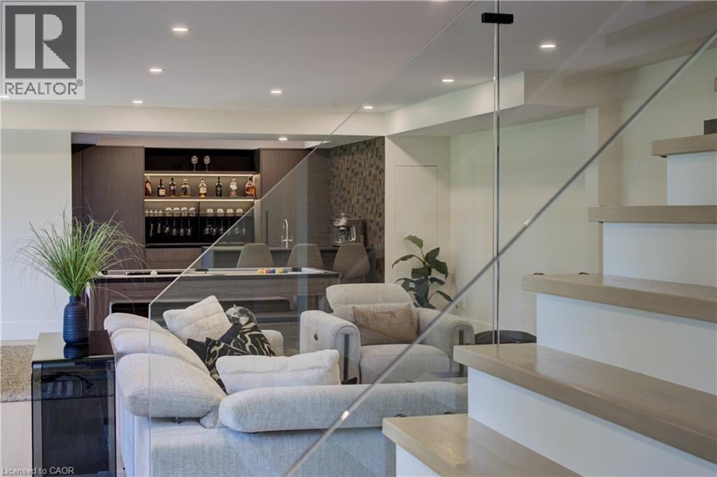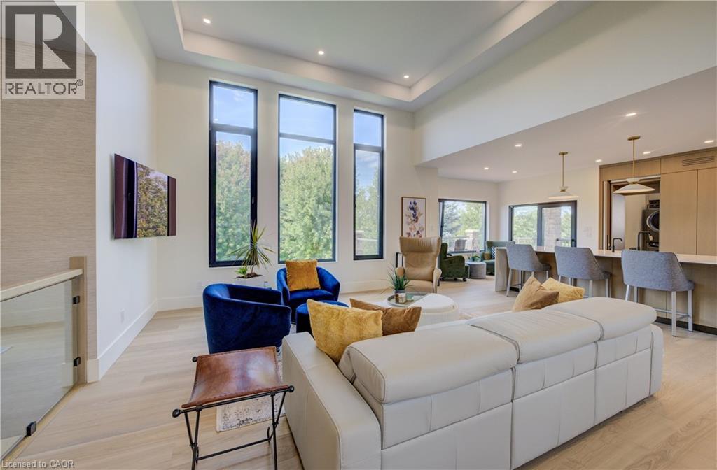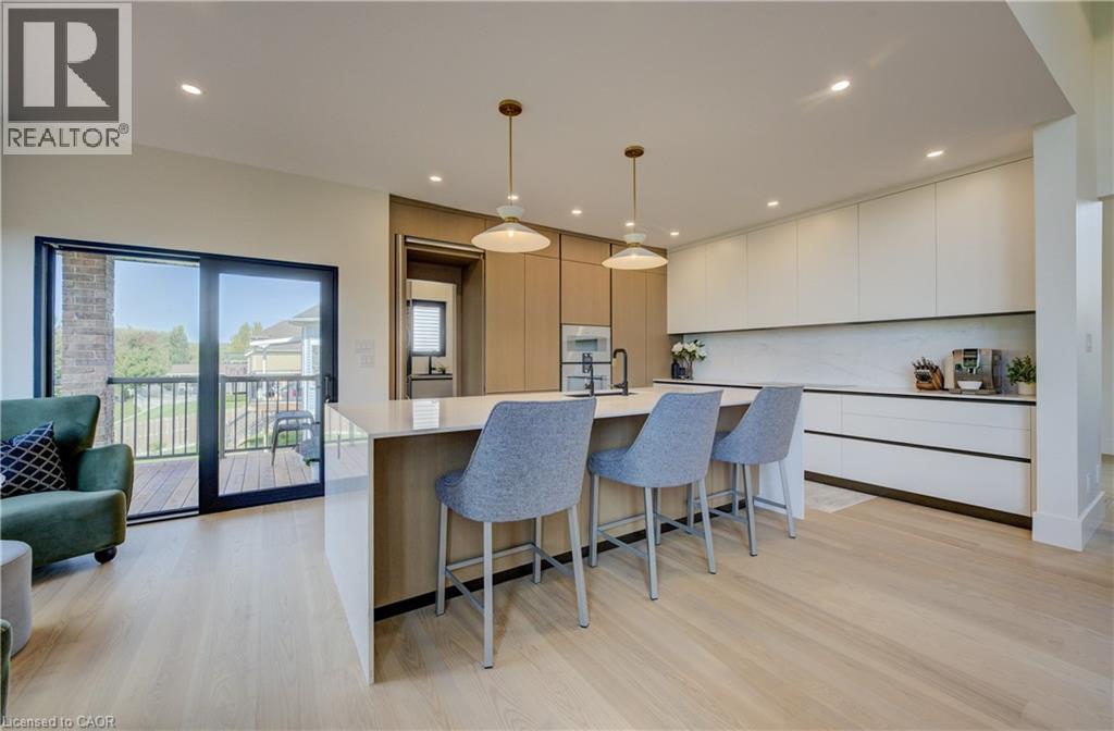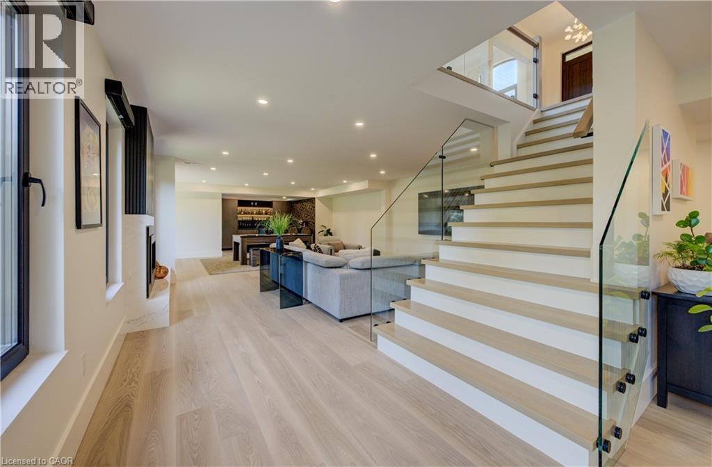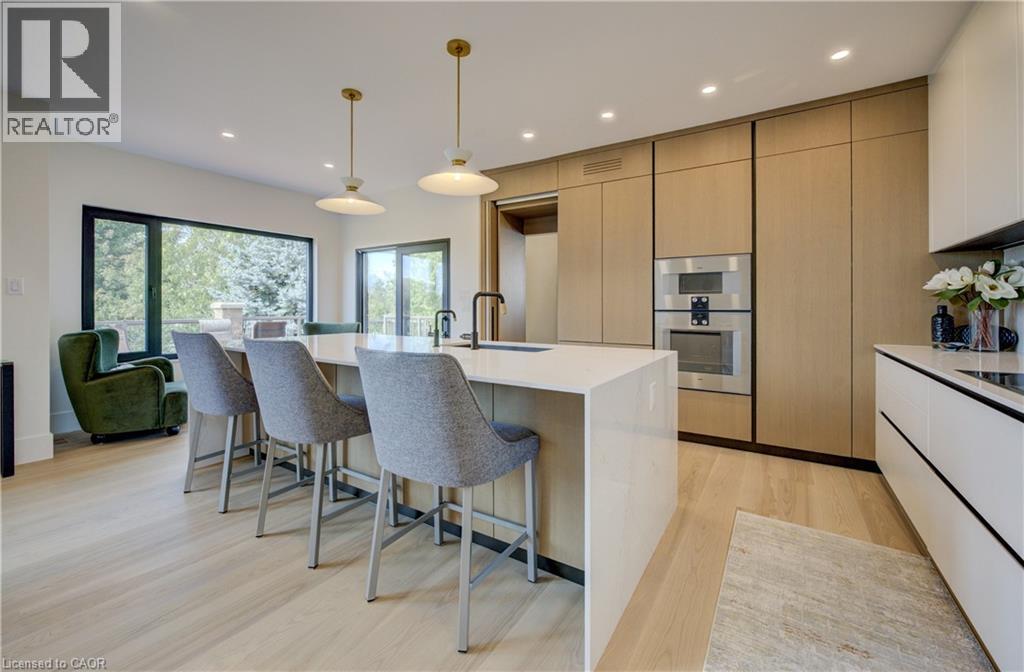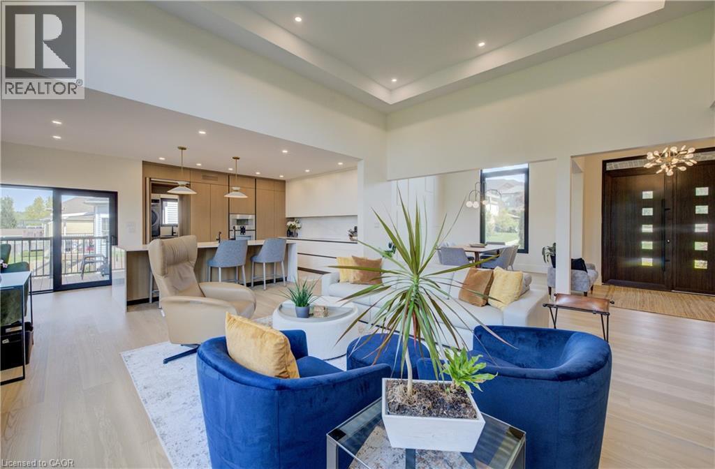 Experience the height of refined living at 118 River Run Road in Drayton—an extraordinary residence where modern European design, premium craftsmanship, and serene natural surroundings come together in perfect harmony. Backing directly onto lush green space with no rear neighbours, this luxurious home offers the ultimate private retreat, complete with a professionally landscaped backyard oasis and a stunning custom pond that invites peaceful mornings and elegant outdoor entertaining. Inside, every detail has been meticulously curated—from the hand-stained white oak staircase and glass railings to the rich European White Ash flooring and soaring 9’ interior doors. The designer kitchen is a true centerpiece, featuring Italian-made Scavolini cabinetry, waterfall-edge Silestone quartz, and a full suite of seamlessly integrated Gaggenau appliances. Light-filled living spaces are accented by contemporary lighting, smooth ceilings, and satin brass Emtek hardware throughout. Retreat to the spa-inspired bathrooms with heated floors, wall-mounted Duravit toilets, and ultra-luxurious finishes from Brizo, Graff, and Laminam. The lower level walk-out basement is equally impressive, with triple-pane tilt-and-turn windows, a radiant gas fireplace, built-in designer bar, and custom closets ideal for guests or extended stays. This is a home where comfort meets convenience—complete with new HVAC systems 2024, integrated smart features, motorized Hunter Douglas blinds, and interior access stairs from the garage to basement. Whether you're hosting, relaxing, or simply enjoying the view, this property offers an elevated lifestyle defined by beauty, comfort, and lasting quality. A rare offering for those who seek more than just a home—this is luxury living, reimagined. (id:64974)